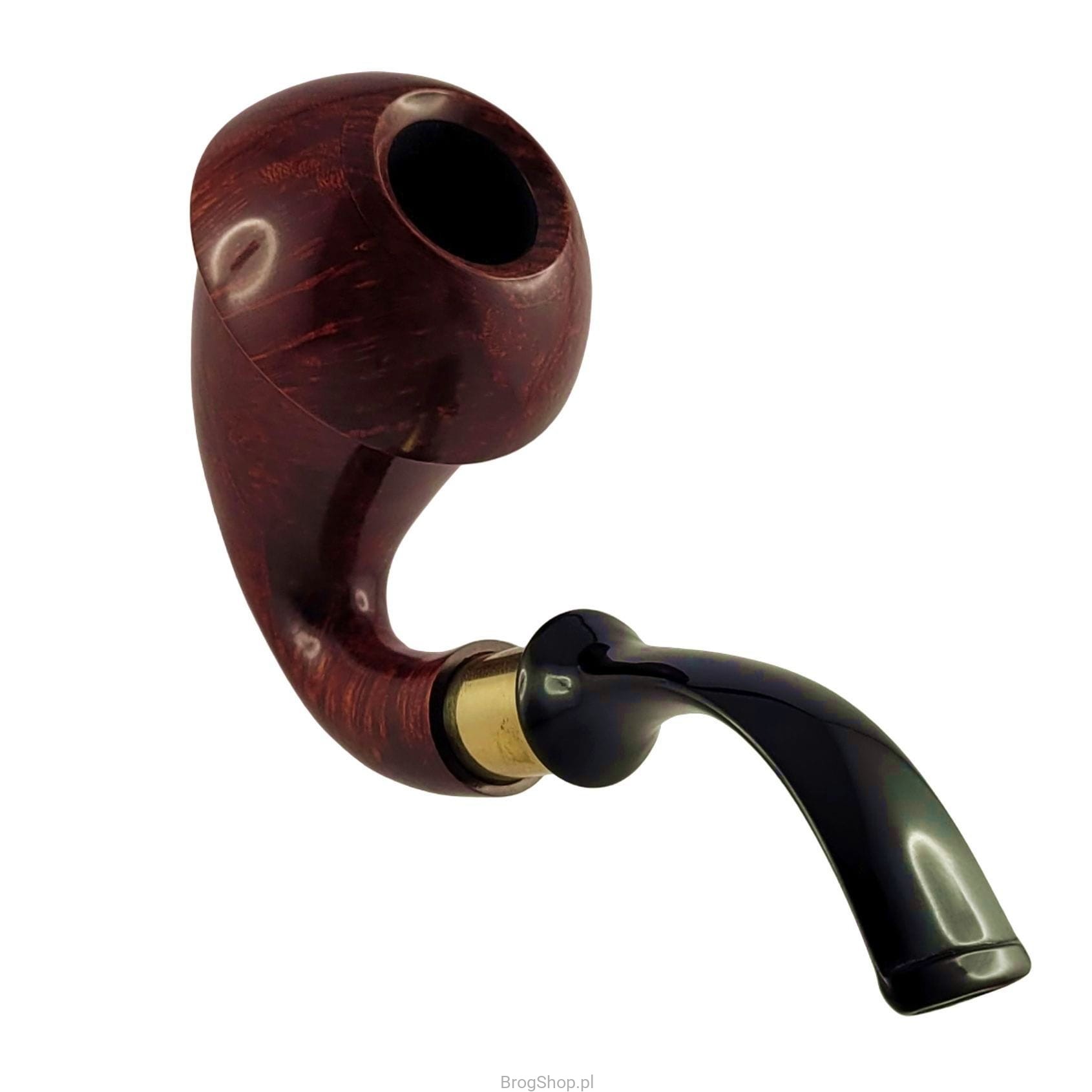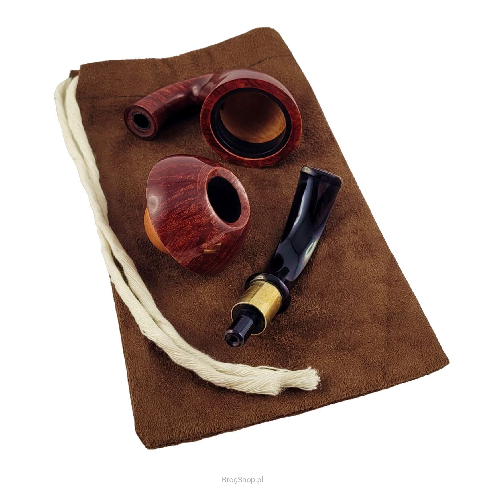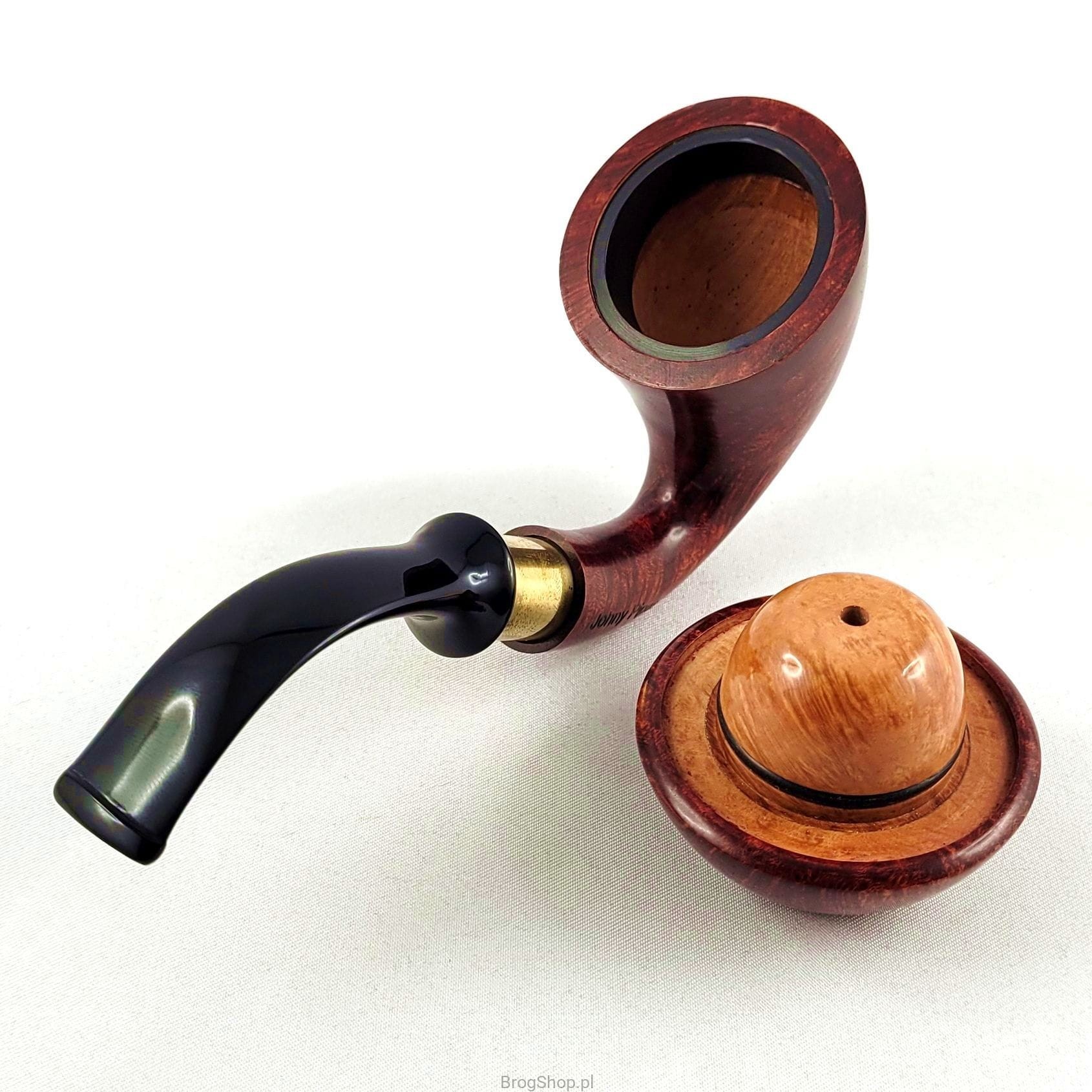 An exceptional, entirely handmade Calabash, straight from the workshop of Johny Pipes of Iran. Undoubtedly beautiful, but also very demanding for the pipe-maker, the shape of the pipe was obtained as a result of careful, painstaking work with high-quality briar, which, as we know, can be capricious. The precision-fitted furnace, seated on a gasket, will ensure proper and tasty burning of tobacco. The furnace walls are precarbinated. The surface of the briar is smooth with a distinct grain, stained and protected with Danish oil and wax. The acrylic stem without a filter, has a decorative metal ring. Pipes of this type are rarely found in traffics, at the time of publication only 1 piece visible in the photos is available. Pipe packed in a fabric pouch and manufacturer's box, it will work as a sophisticated gift or an exotic addition to your collection.