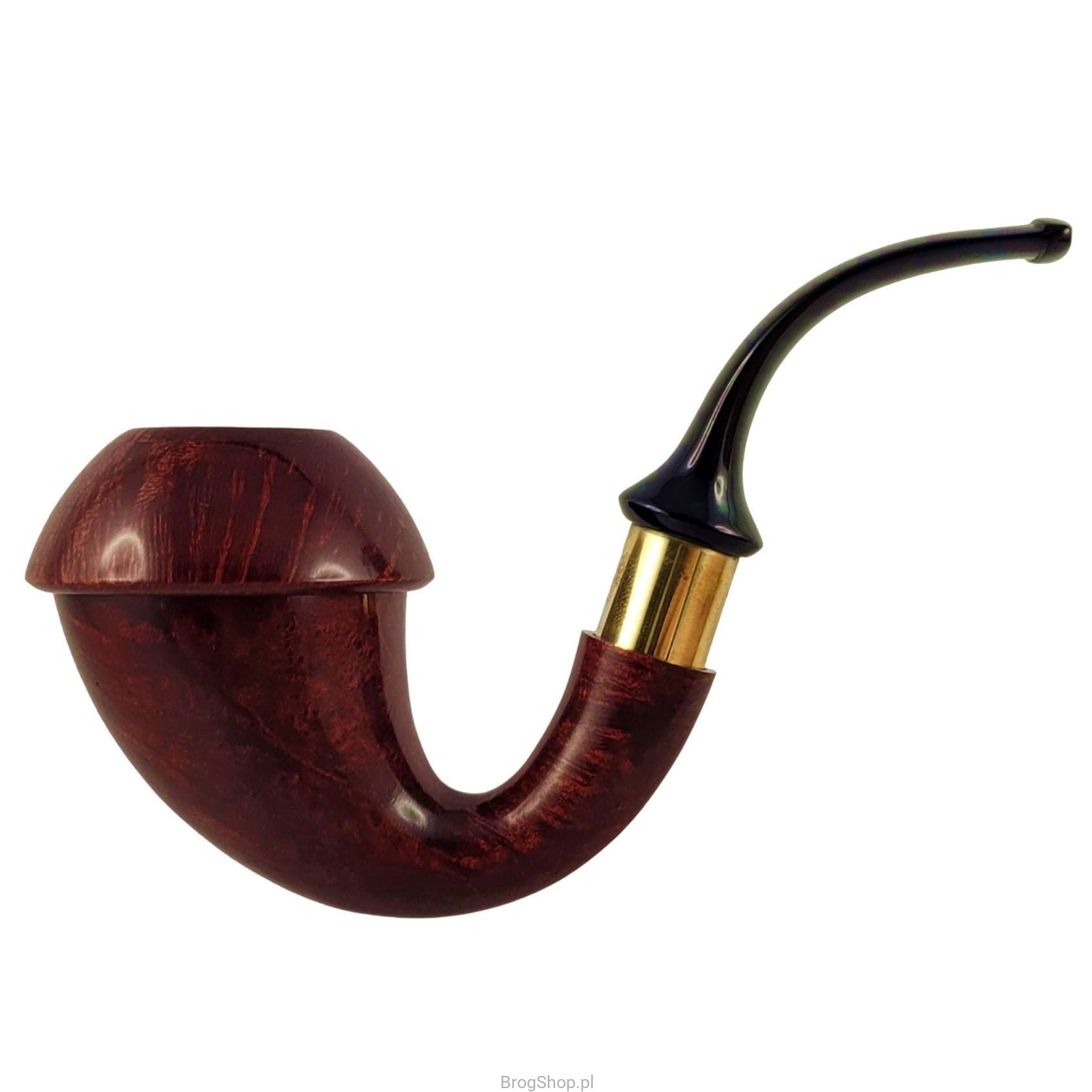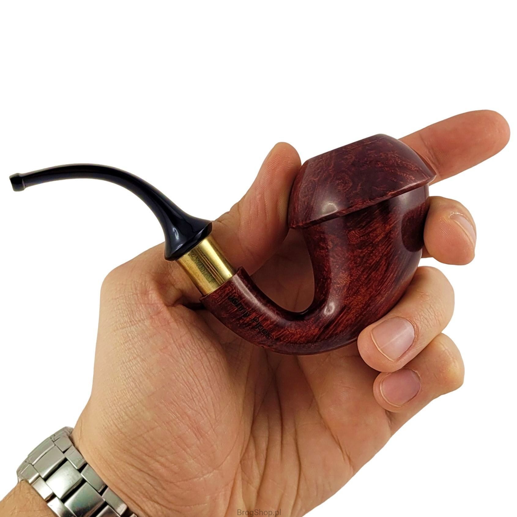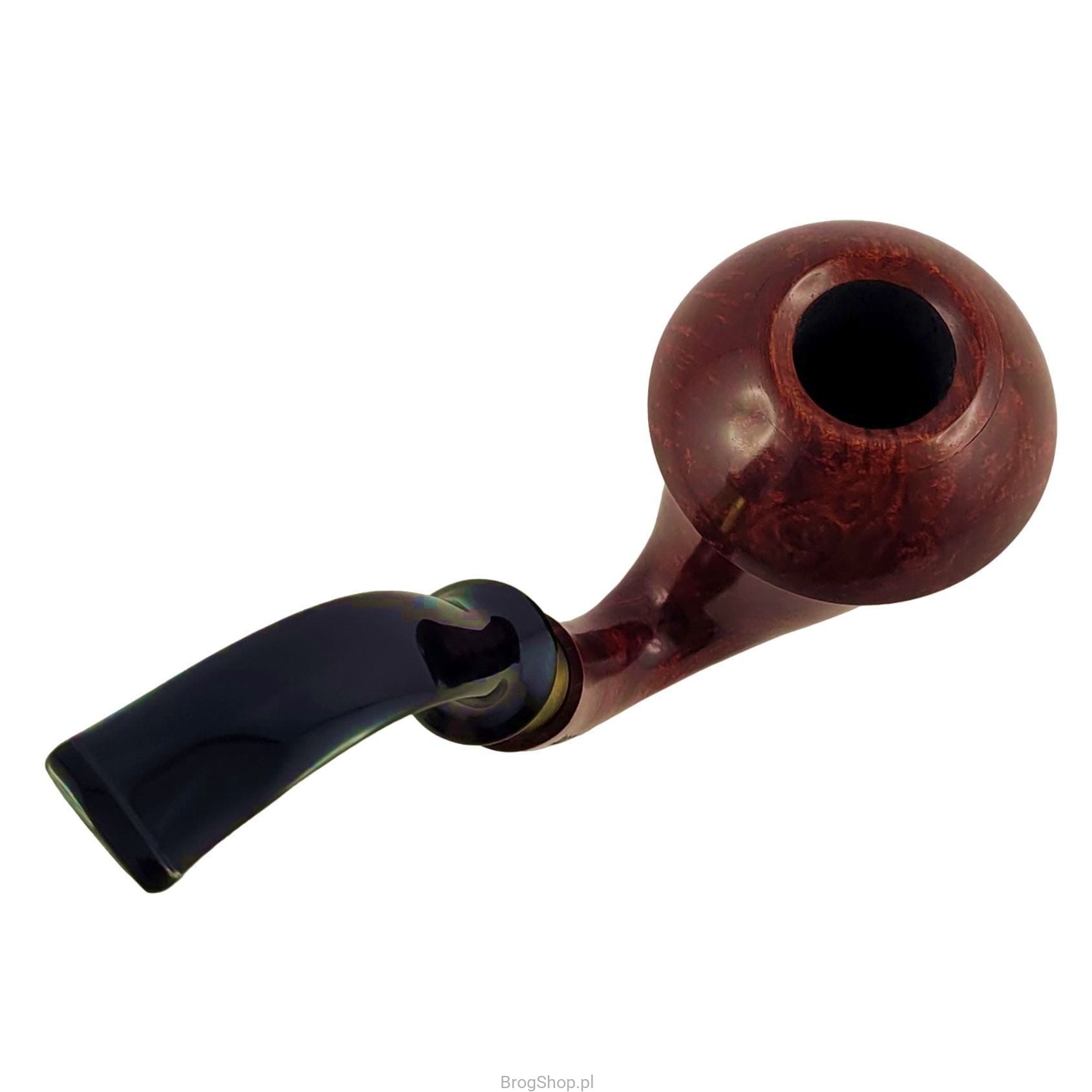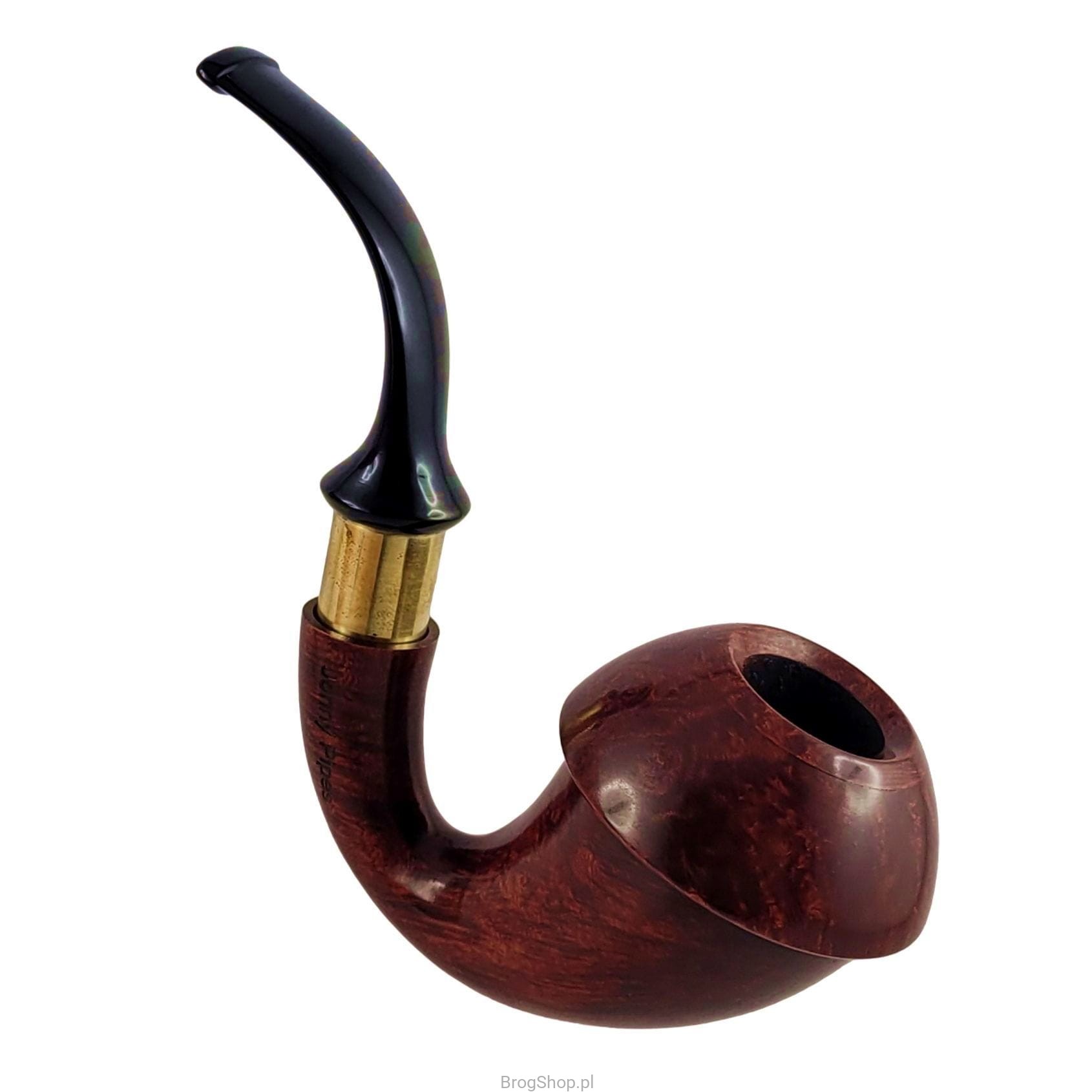 An exceptional, entirely handmade Calabash, straight from the workshop of Johny Pipes of Iran. Undoubtedly beautiful, but also very demanding for the pipe-maker, the shape of the pipe was obtained as a result of careful, painstaking work with high-quality briar, which, as we know, can be capricious. The precision-fitted furnace, seated on a gasket, will ensure proper and tasty burning of tobacco. The furnace walls are precarbinated. The surface of the briar is smooth with a distinct grain, stained and protected with Danish oil and wax. The acrylic stem without a filter, has a decorative metal ring. Pipes of this type are rarely found in traffics, at the time of publication only 1 piece visible in the photos is available. Pipe packed in a fabric pouch and manufacturer's box, it will work as a sophisticated gift or an exotic addition to your collection.