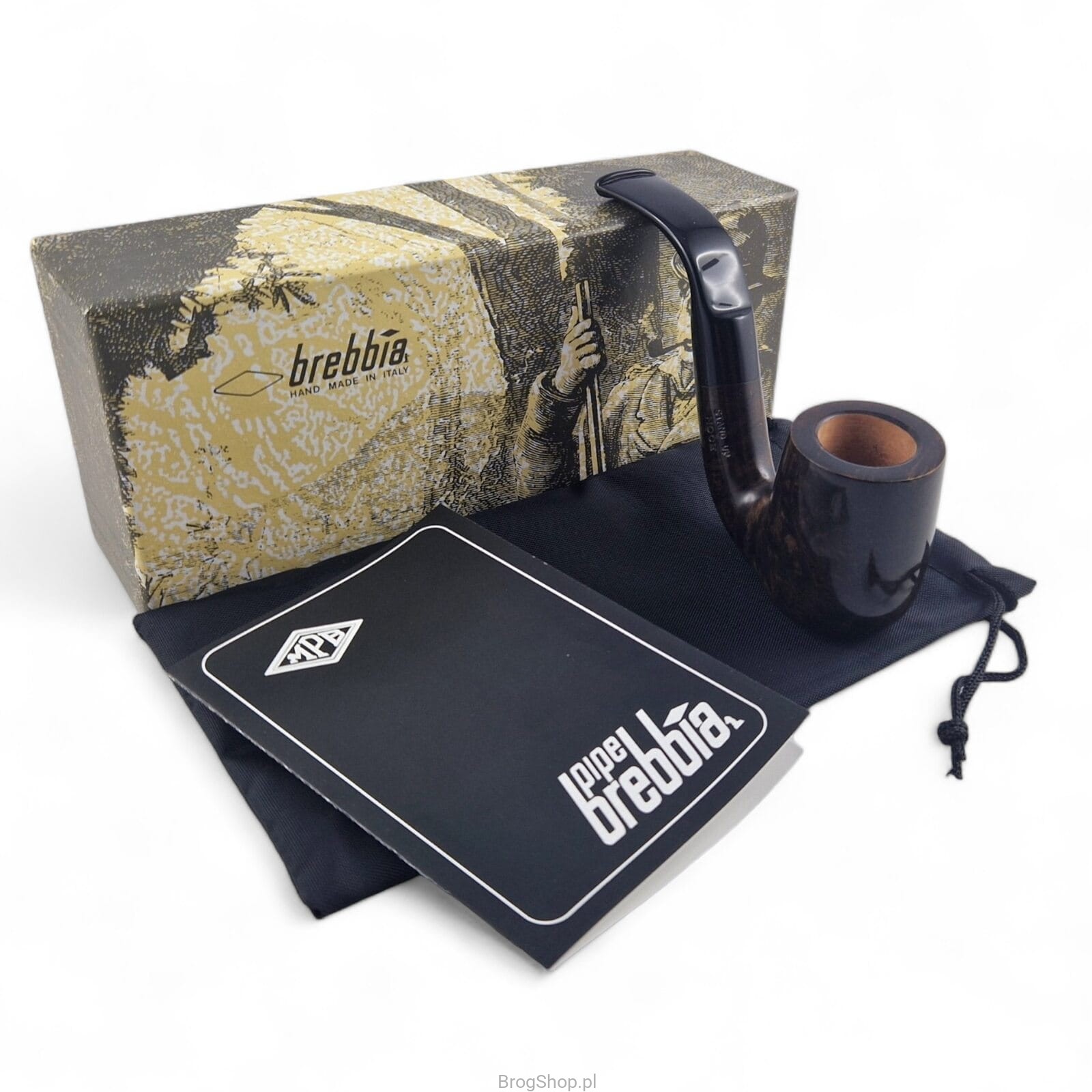 The Stand Up version of the Noce, is an interesting smoking pipe from the Italian Brebbia workshop. Handmade from solid briar, it stands out from other pipes in several details. First of all, the shape, Full Bent not only looks nice, due to its low center of gravity it is also very comfortable to use. The strong bend of the shank necessitated the use of a so-called curved drill bit to make the smoke duct. Among the qualities of use is also the beveled base of the pipe, thanks to which the pipe can be set down anywhere without the use of a stand - Sitter. Capacity, is another advantage of this model. The pipe is designed for longer sessions with your favorite tobacco. The furnace is natural, non-pre-carbonized - as in any new pipe, it will require a proper approach, especially in the initial stage. The acrylic stem with a place for replaceable 9mm filters, has an inlaid brand logo. The pipe is unusual, well finished and nicely packaged - case and dedicated box included.