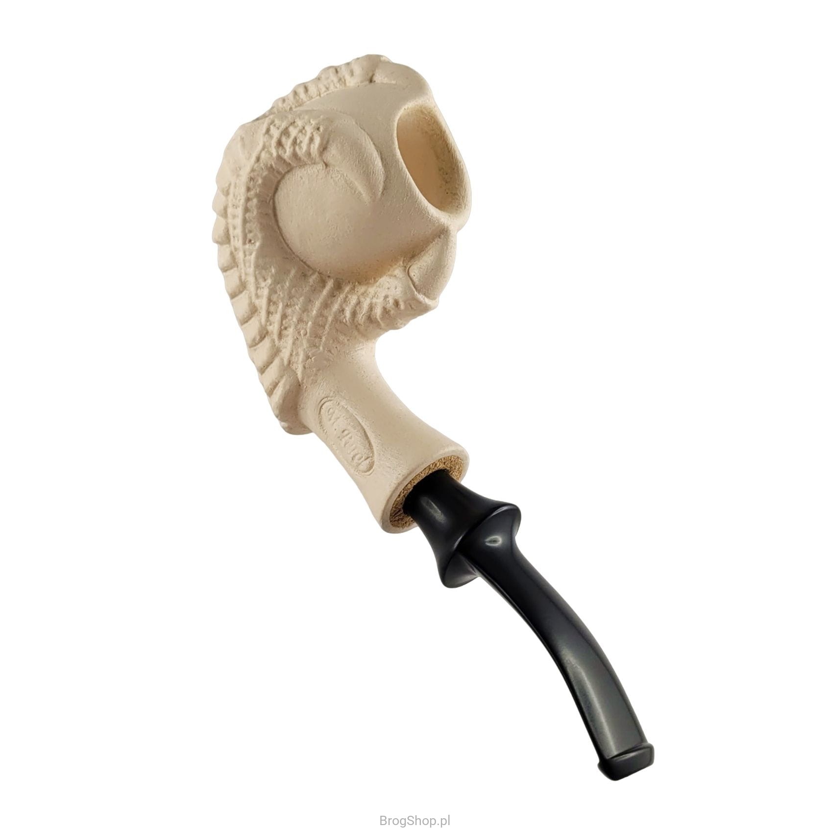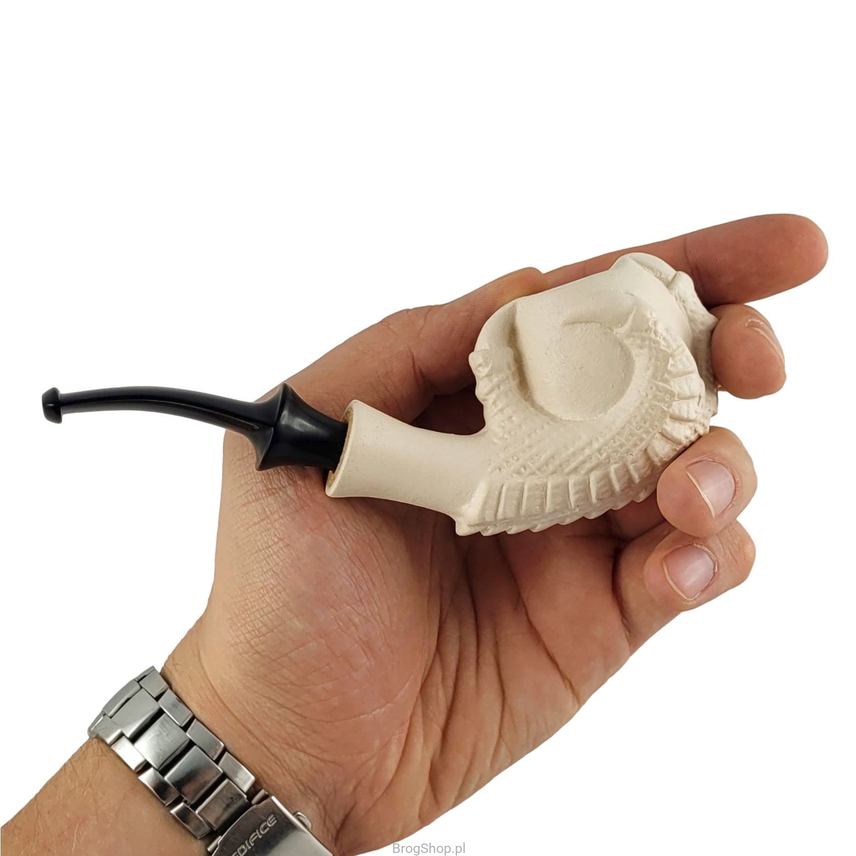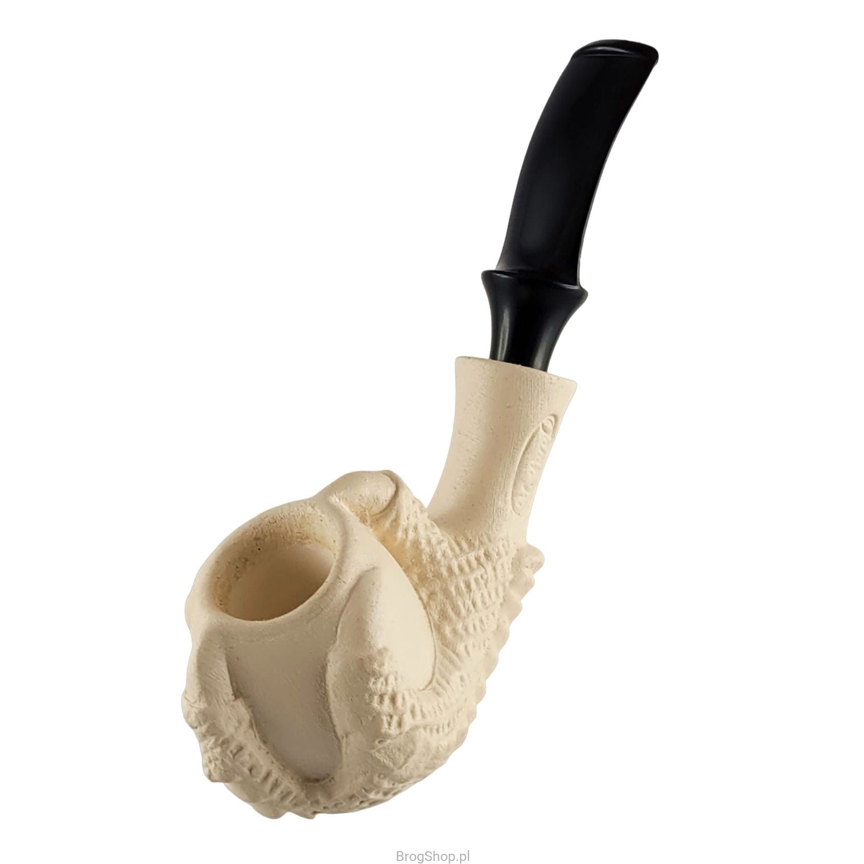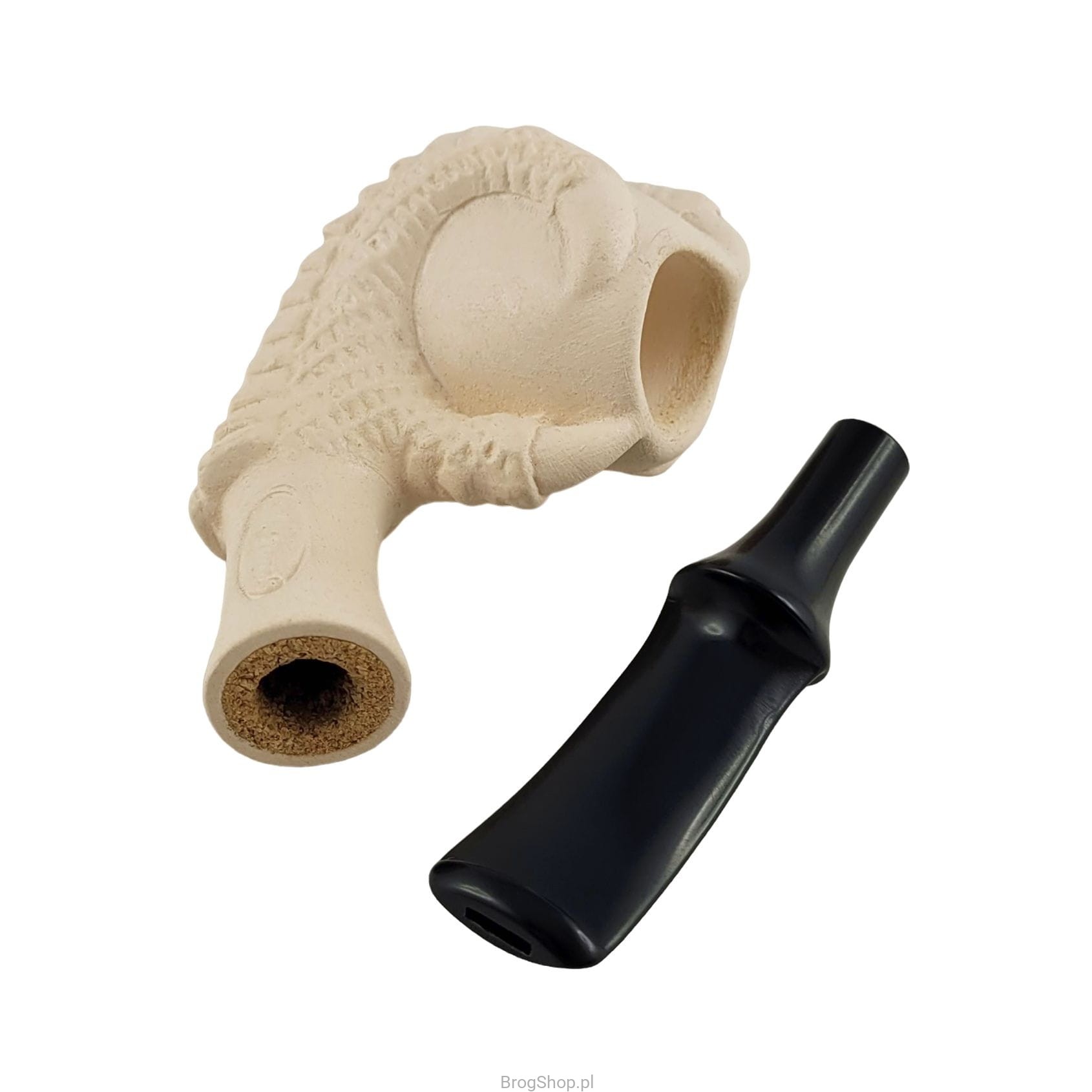 An exceptional clay pipe designed for smoking tobacco, crafted by Marek Parol using his signature double-walled construction. The bowl is set between four sculpted claws, a fascinating and original design that appears in pipe-making workshops around the world. The stem features a locking mechanism that holds the filter securely in place.