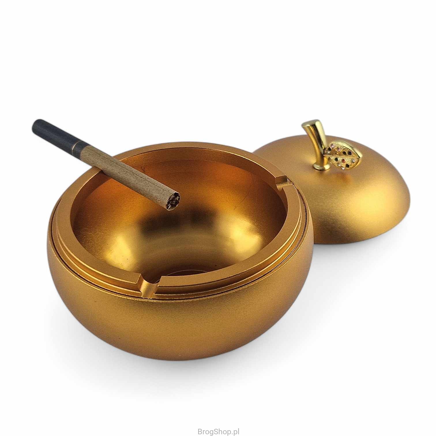 A uniquely elegant and stylish ashtray made from high-quality aluminum, perfect for those who value both functionality and aesthetics. Its distinctive apple shape and vibrant metallic color catch the eye, adding character to any space. It seamlessly fits into modern and classic interiors alike, serving as a charming decorative element.