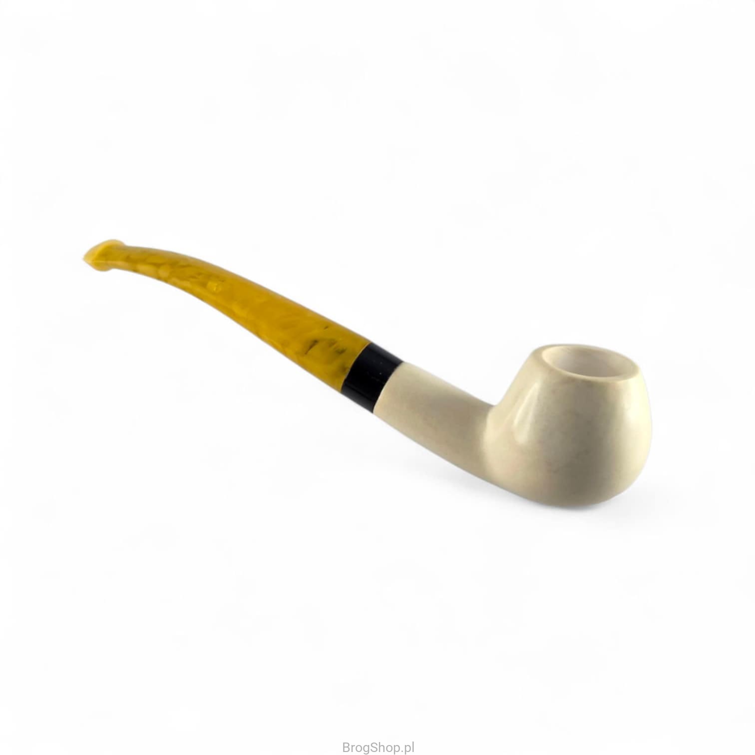A Turkish pipe in the classic bent apple shape, handcrafted from a solid block of meerschaum and finished with an acrylic stem. It was made in the family-owned Dulger Meerschaum workshop, renowned worldwide for its extensive experience and craftsmanship. The DM82 model stands out with its practical size and distinctive, contrasting appearance. The bowl has a standard capacity, and when smoked properly, it delivers a dry, cool smoke that ensures deep and satisfying flavor experiences. This pipe is perfect for daily use, while also making an elegant gift for any pipe enthusiast. The yellow mosaic-patterned stem does not accommodate a filter.