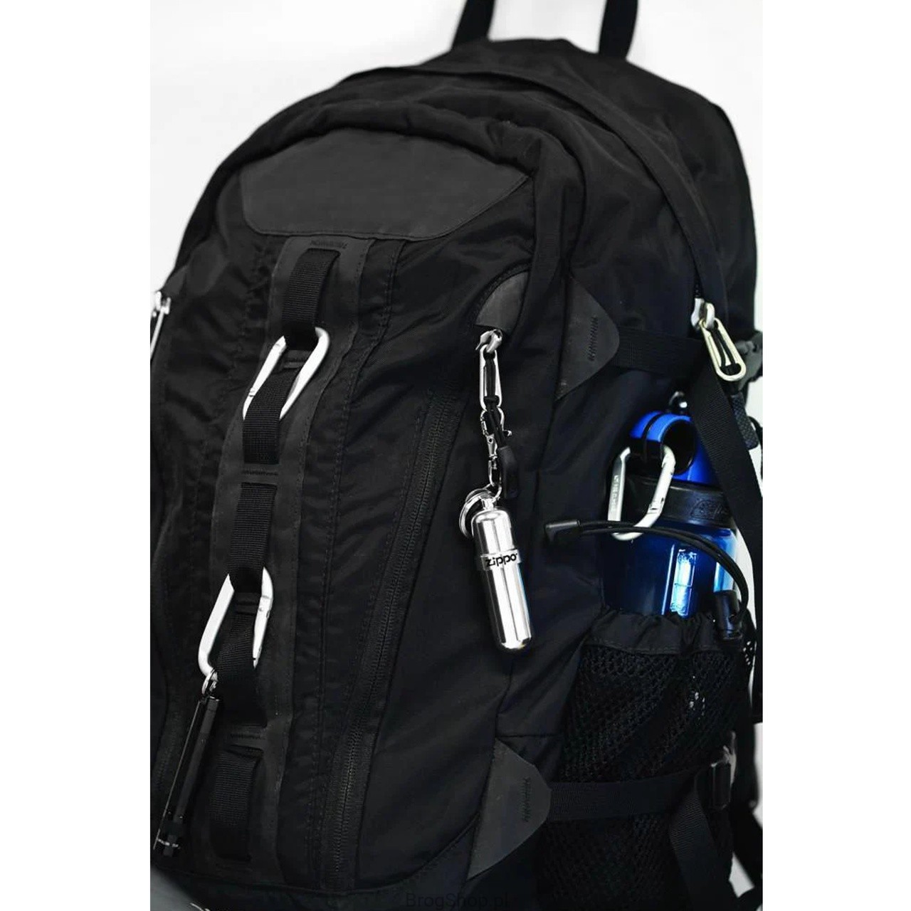 Take along an extra refill of Zippo lighter fuel with the Zippo Fuel Canister. The reusable, personal-sized aluminum canister holds enough fuel to fill one Zippo windproof lighter or a 6-hour refillable Hand Warmer. Includes swivel clasp, key ring, disk to tighten and loosen flint screw and a rubber storage sleeve for two extra Zippo flints.