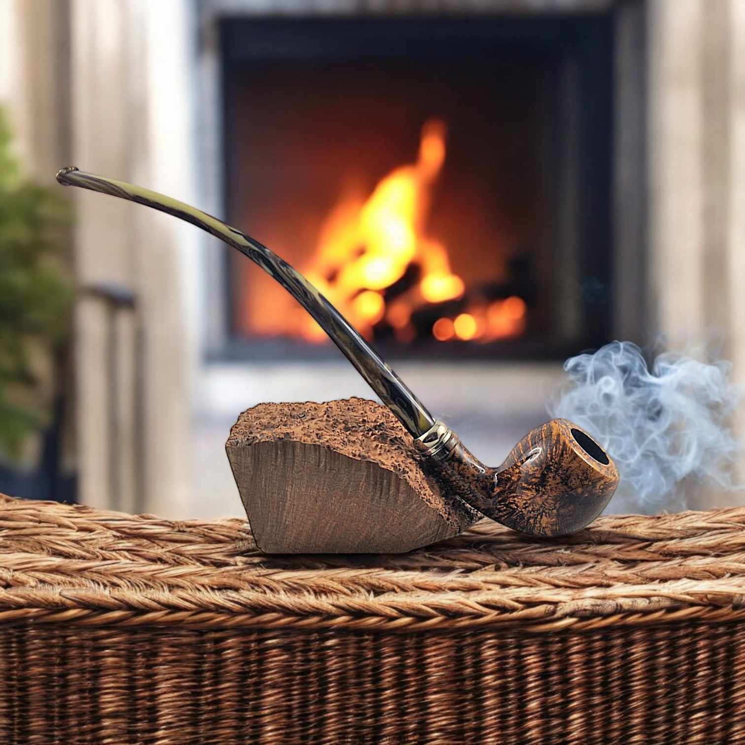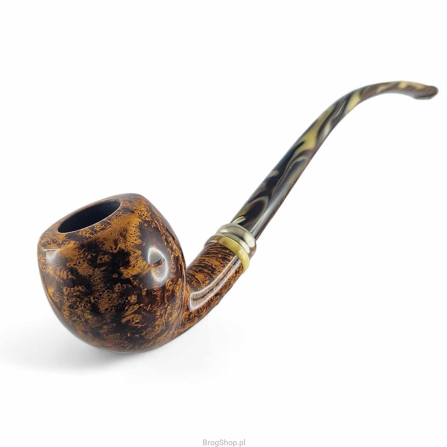 Classic Series GR 2.1 is an interesting and unique pipe in Poland, created by the Danish artisan of the Neerup brand. Made from briar wood in the Churchwarden style, it has a smooth surface protected with Danish oil and carnauba wax. Selective staining highlights the beautiful cross-grain pattern of the briar. The pipe was crafted by Peder Jeppesen, who personally handed it to us during the InterTabac 2024 meeting in Dortmund. The pipe features a robust bowl and a long, patterned acrylic stem. The spacious bowl is pre-carbonized. The patterned stem is acrylic and filterless. The pipe's shank is finished with two rings: one made from the same material as the stem and the other made of metal. The set includes an elegant cloth pouch. Only one piece is available, as shown in the photos. Highly recommended!