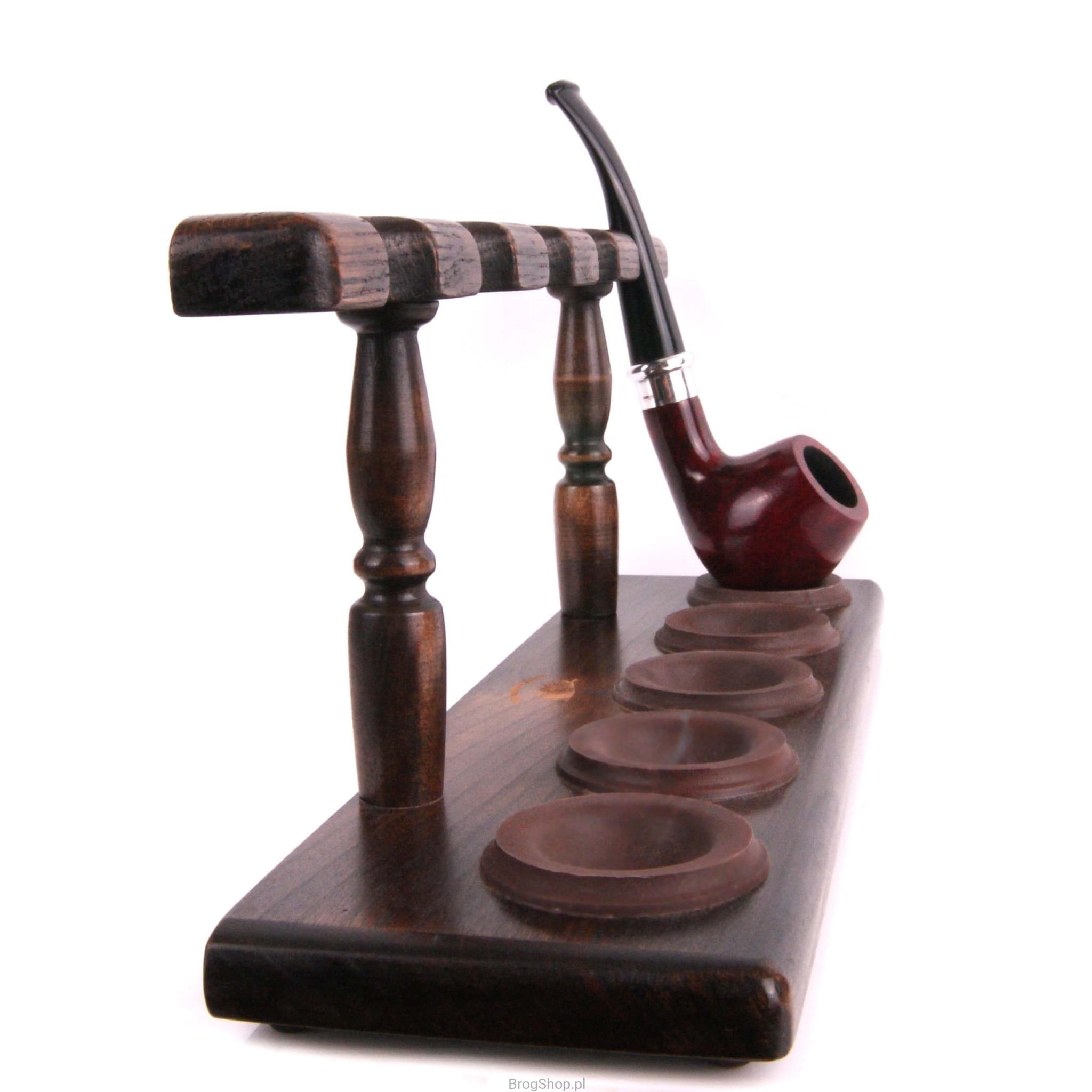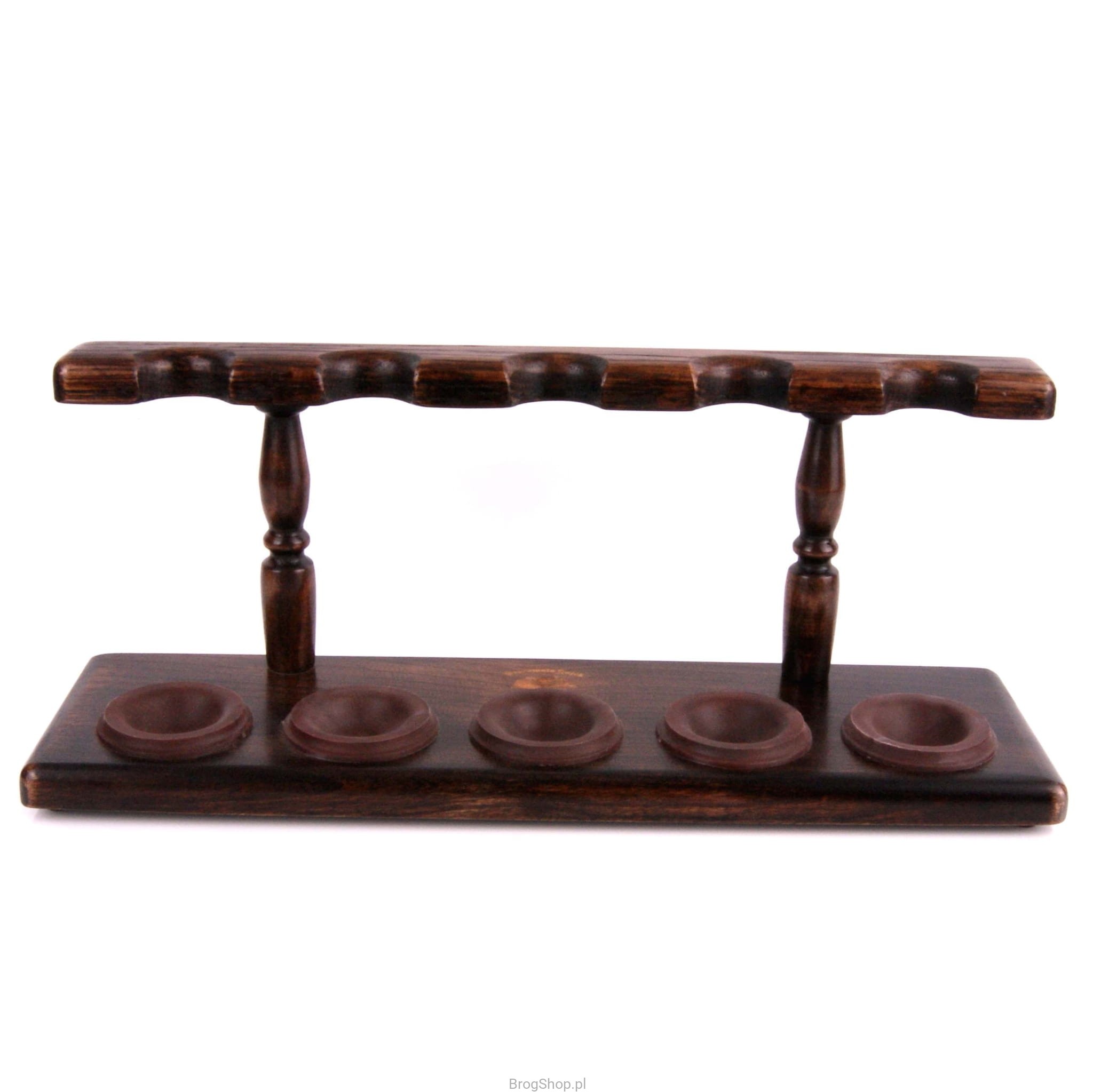 Stand made of oak wood.It will comfortably and aesthetically display five pipes from the collection.The price does not include the pipes visible in the photo.
