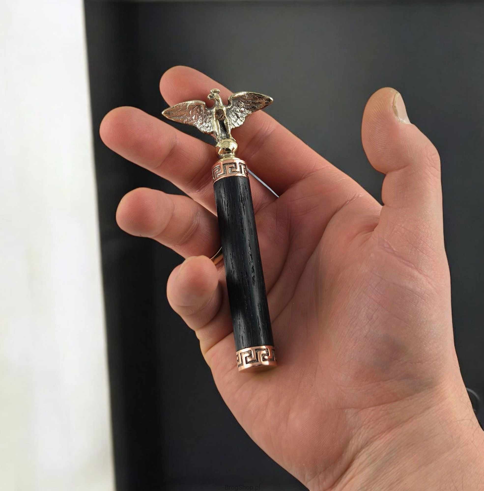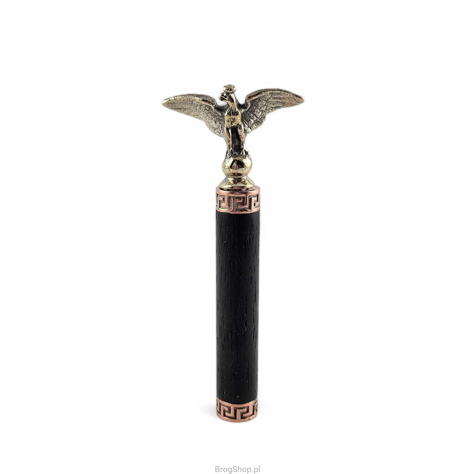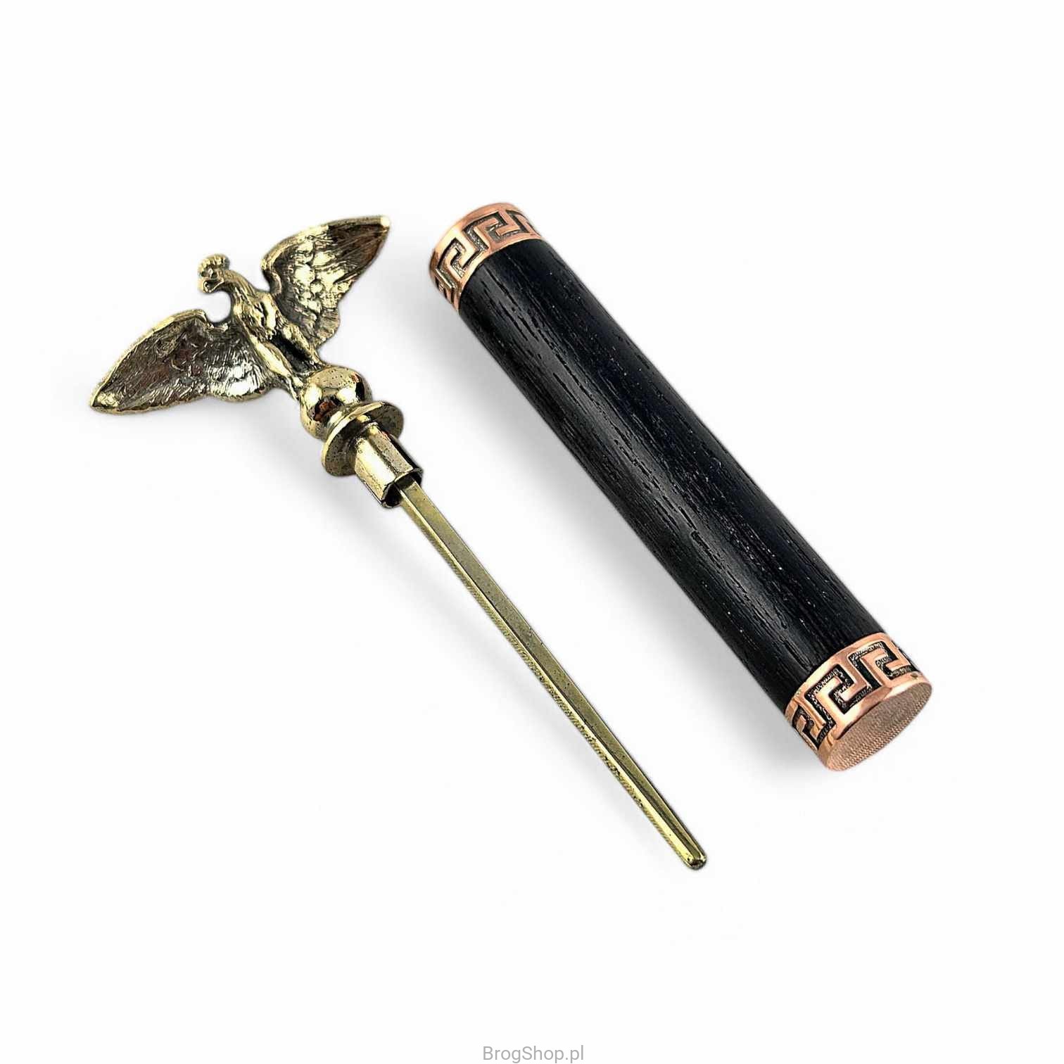 A unique pipe tamper made of black oak (body) and galvanized brass (decorations). An exclusive accessory for a demanding pipe smoker, a fabric cover included. Handmade in a jewelry workshop.