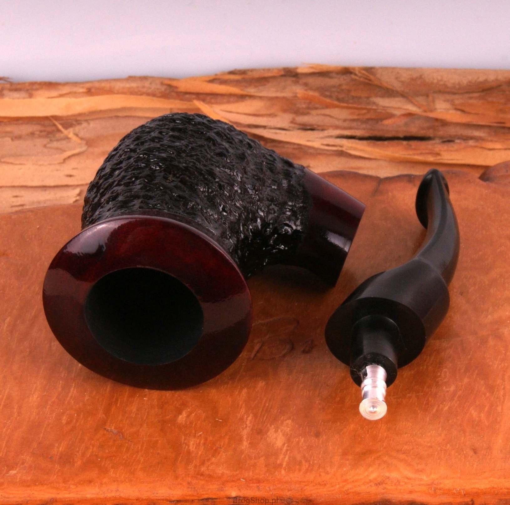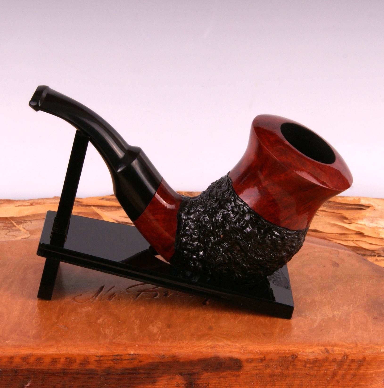Very comfortable, small pipe, handmade from wood briar. The mouthpiece has a filter duralumin and its construction allows you to set the mouthpiece in two positions.