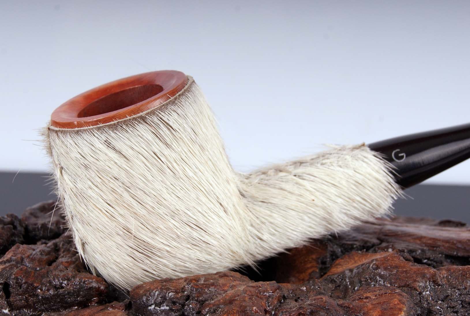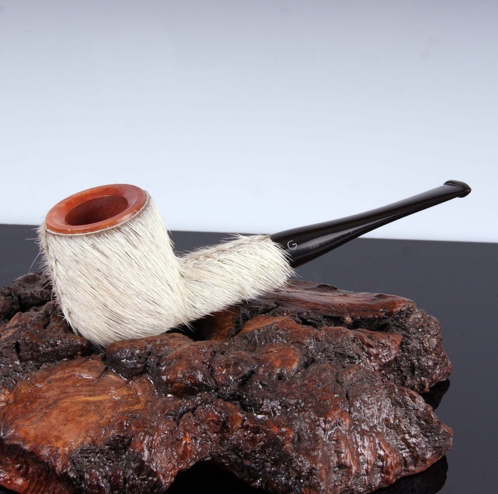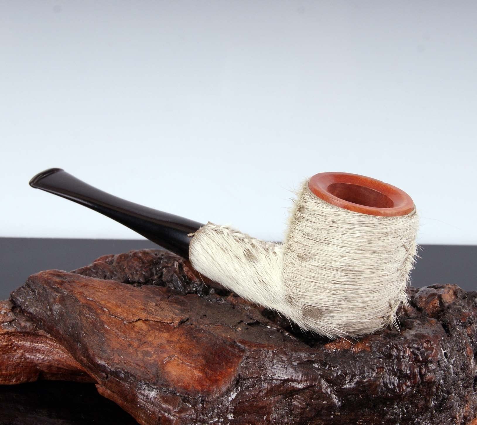 Unique Italian pipe, hand-made from briar. covered with real goat skin.