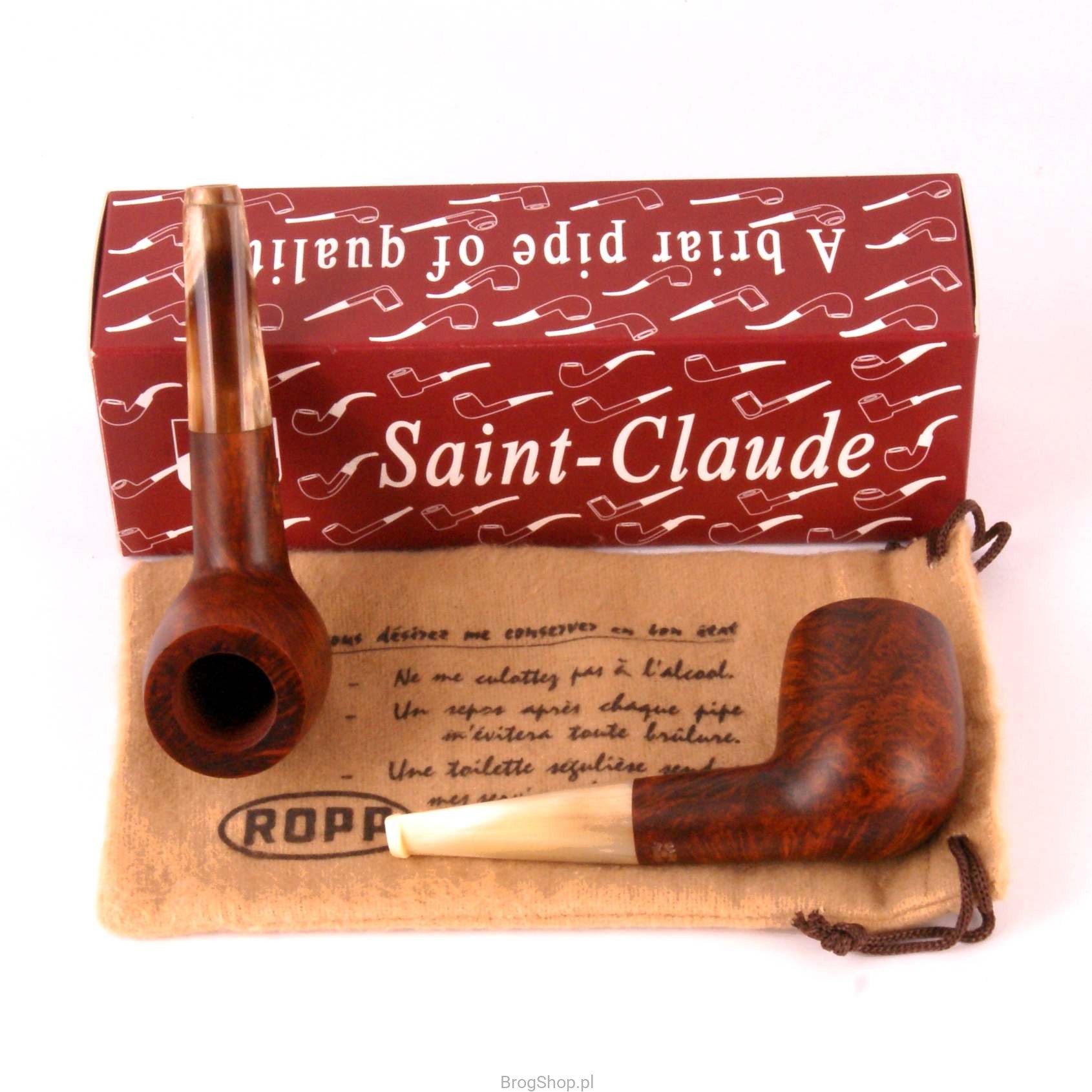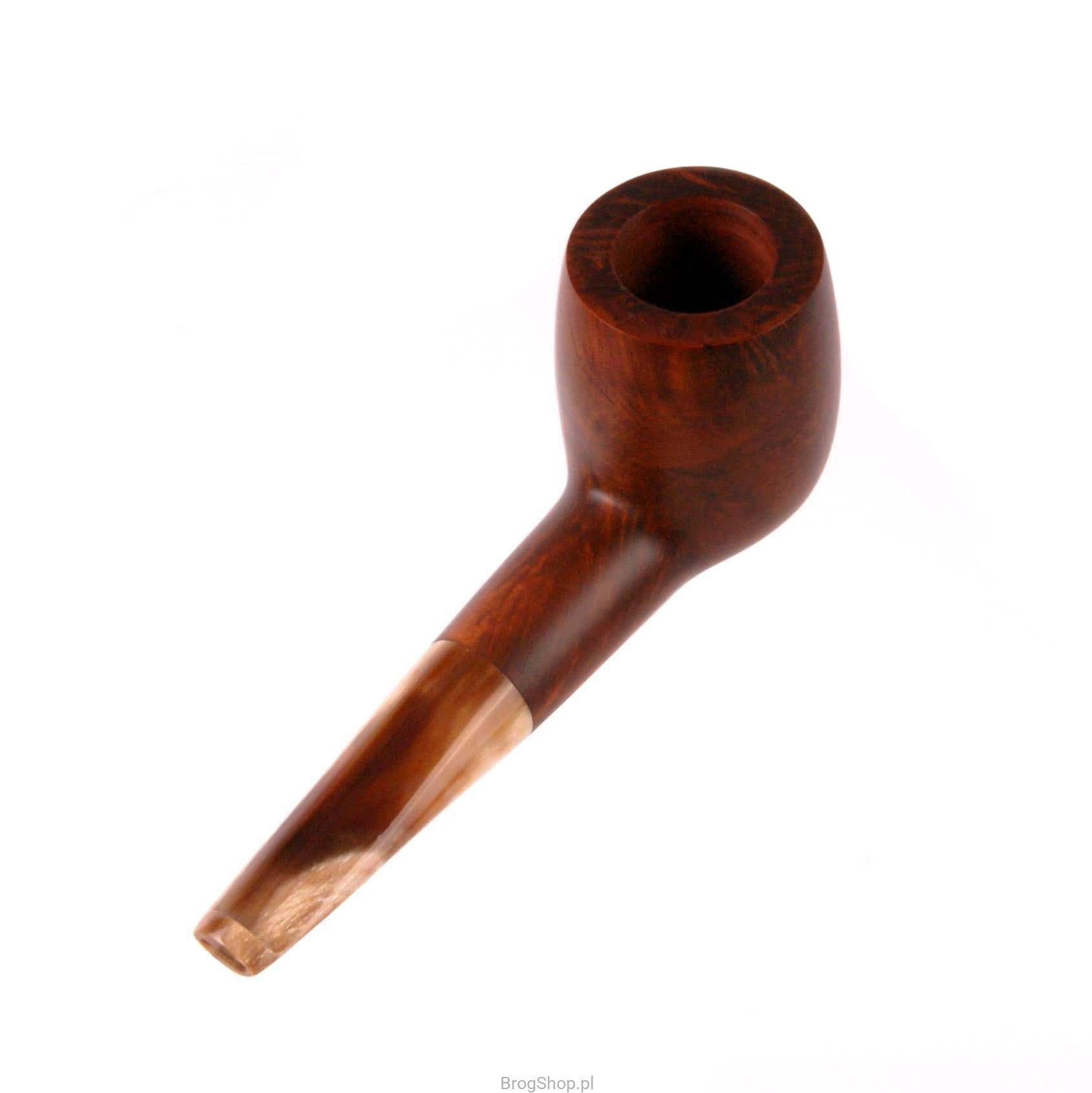 A classic and very characteristic of the Ropp brand, a briar tobacco pipe with a buffalo horn mouthpiece. The semi-matte, waxed finish gives the pipe a warm image. Small but roomy, packaged in a fabric case and box, it showcases the beauty of classic and natural bruisers. Furnace without precarbonization, case and box included.
