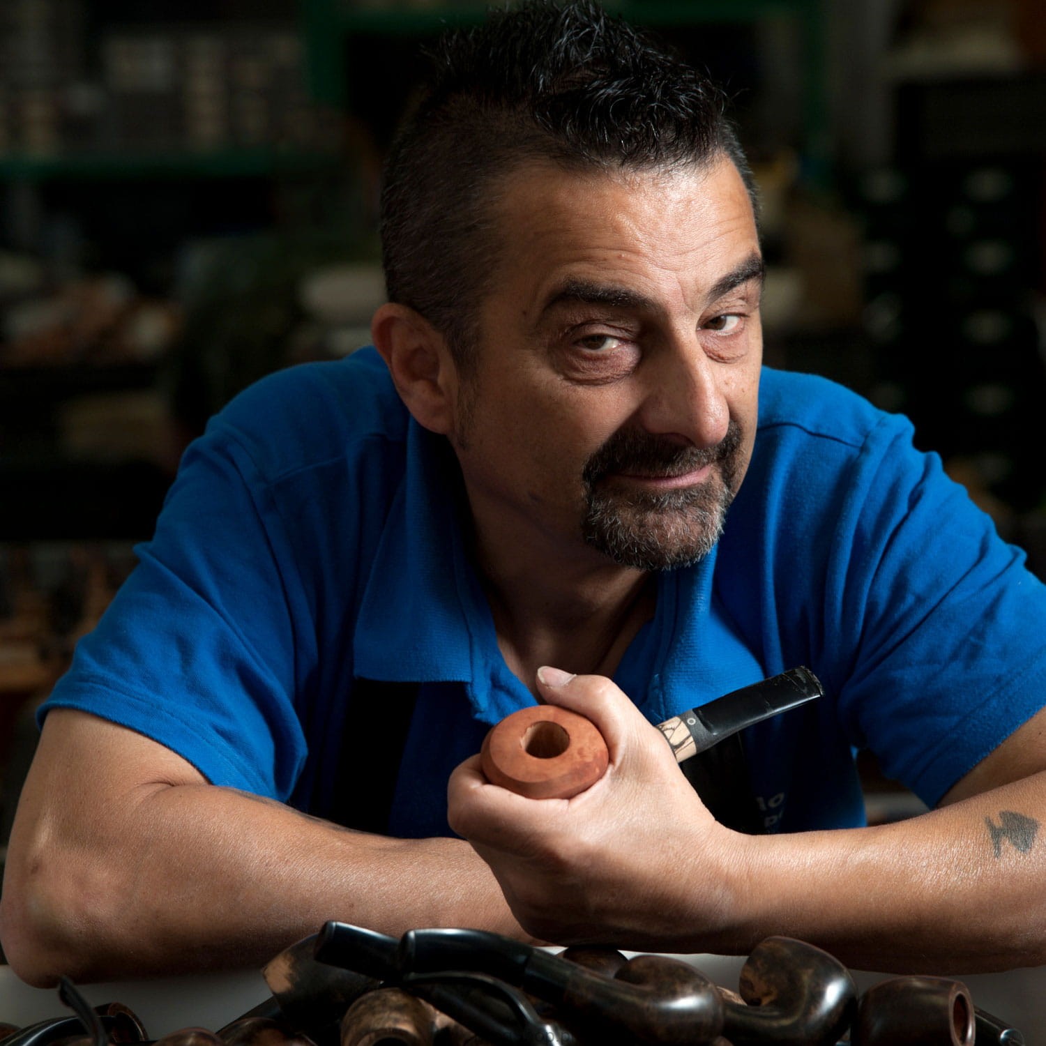 An Italian pipe with the Reverse Calabash system, made of briar by Paolo Croci.