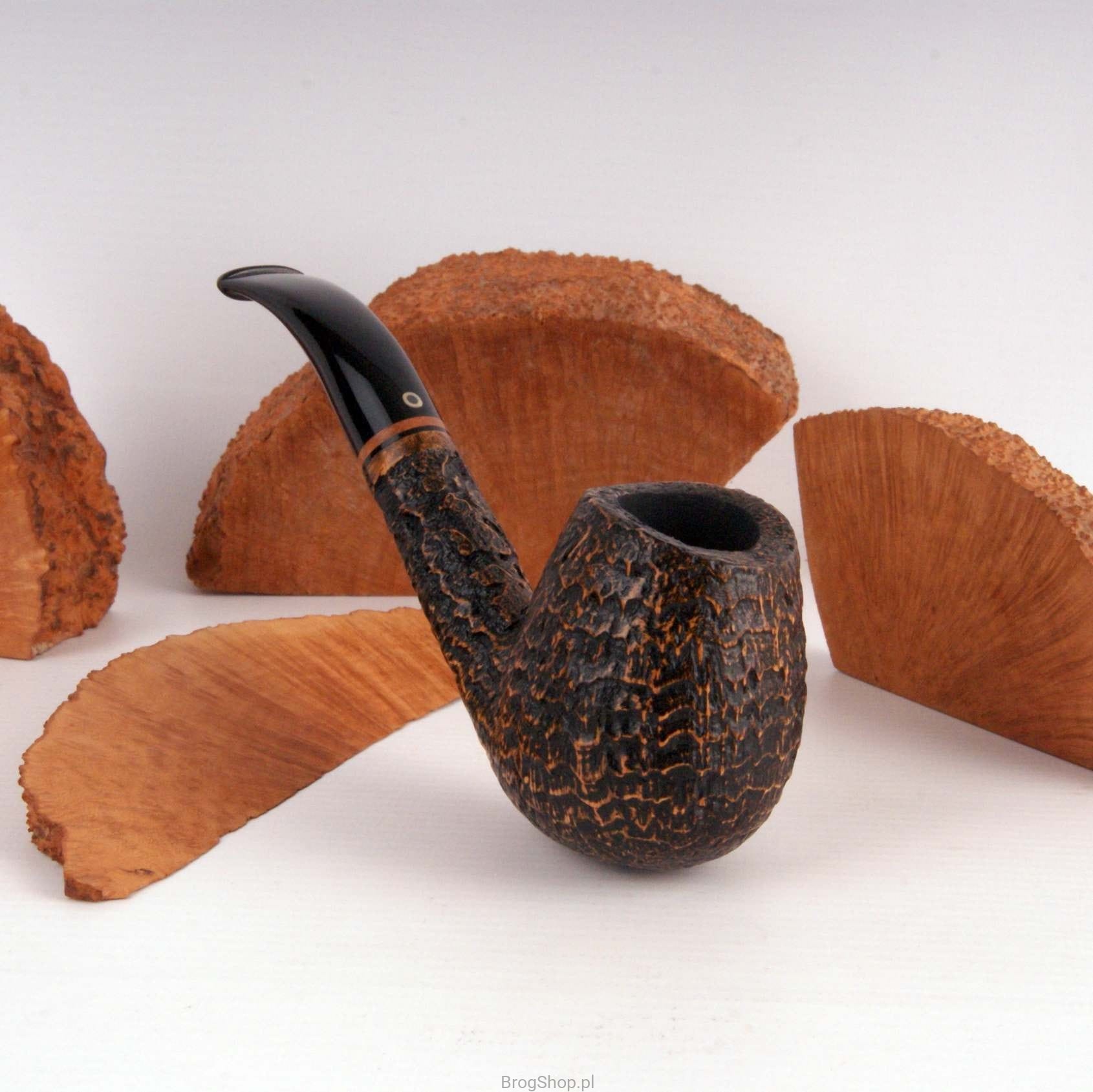Beautifully grained, deep sandblasted pipe in the style of Brandy bent, made of briar