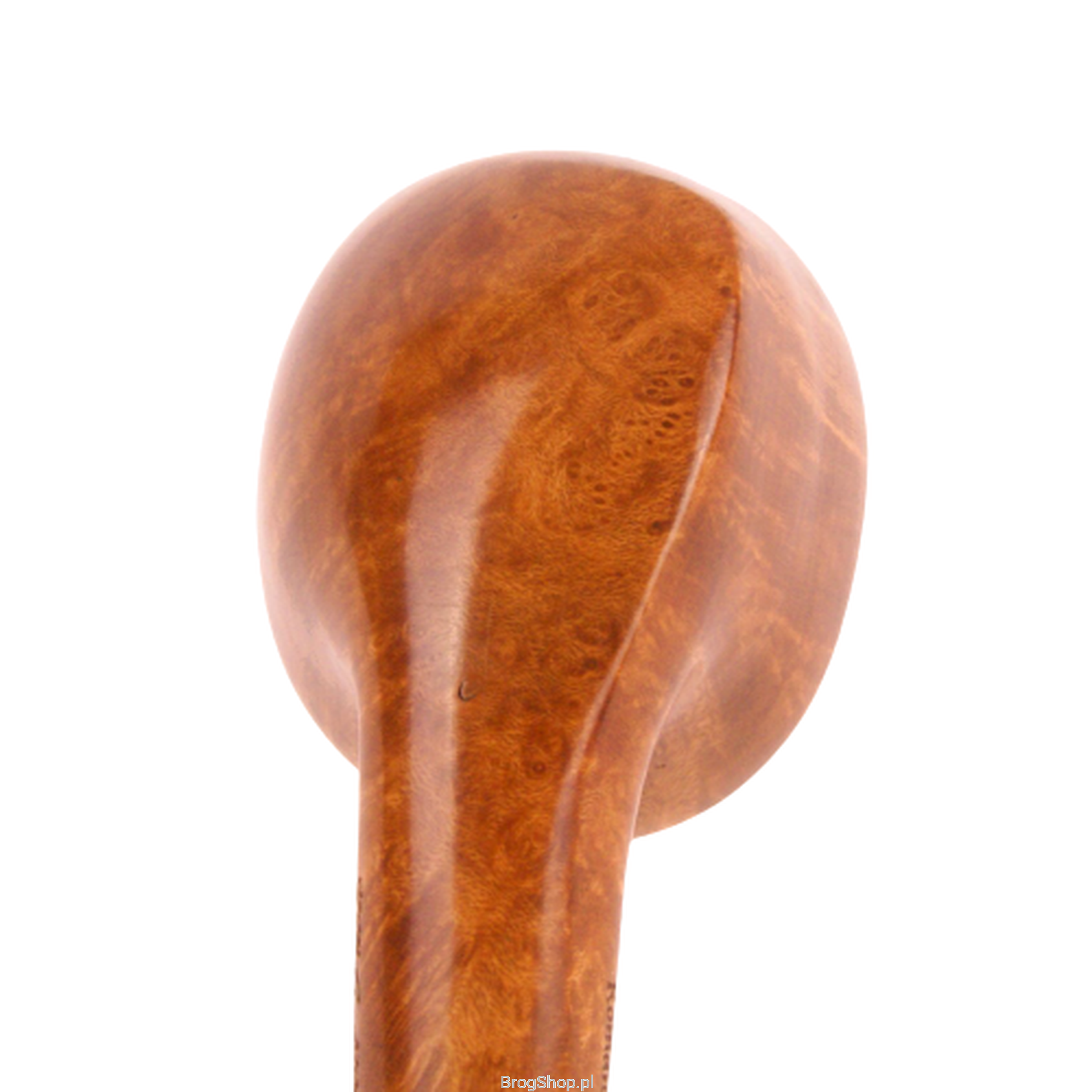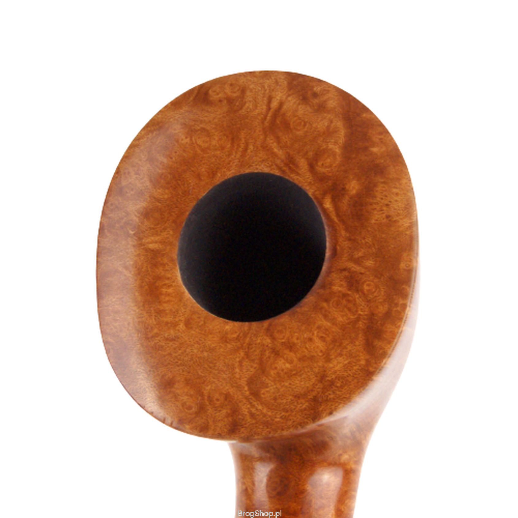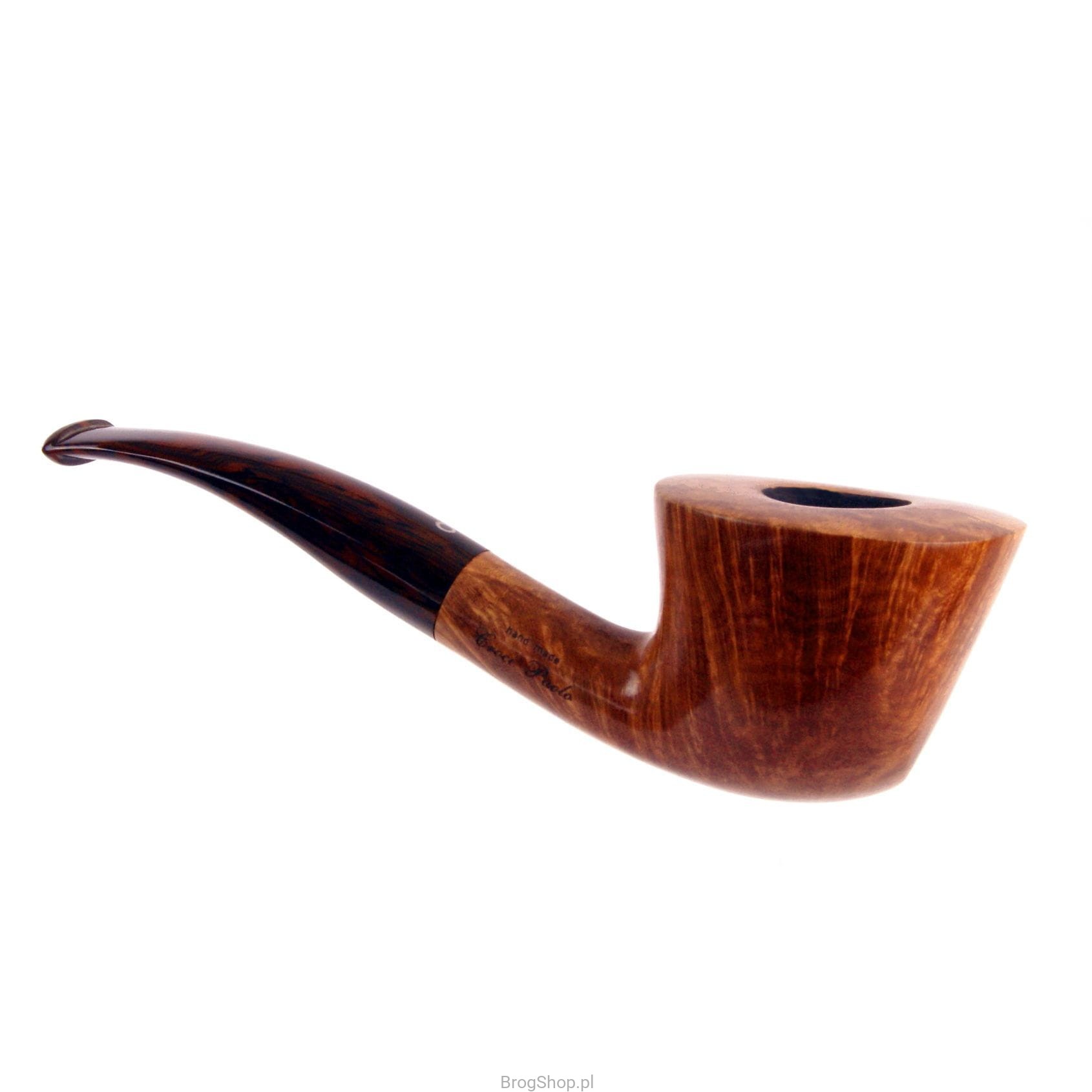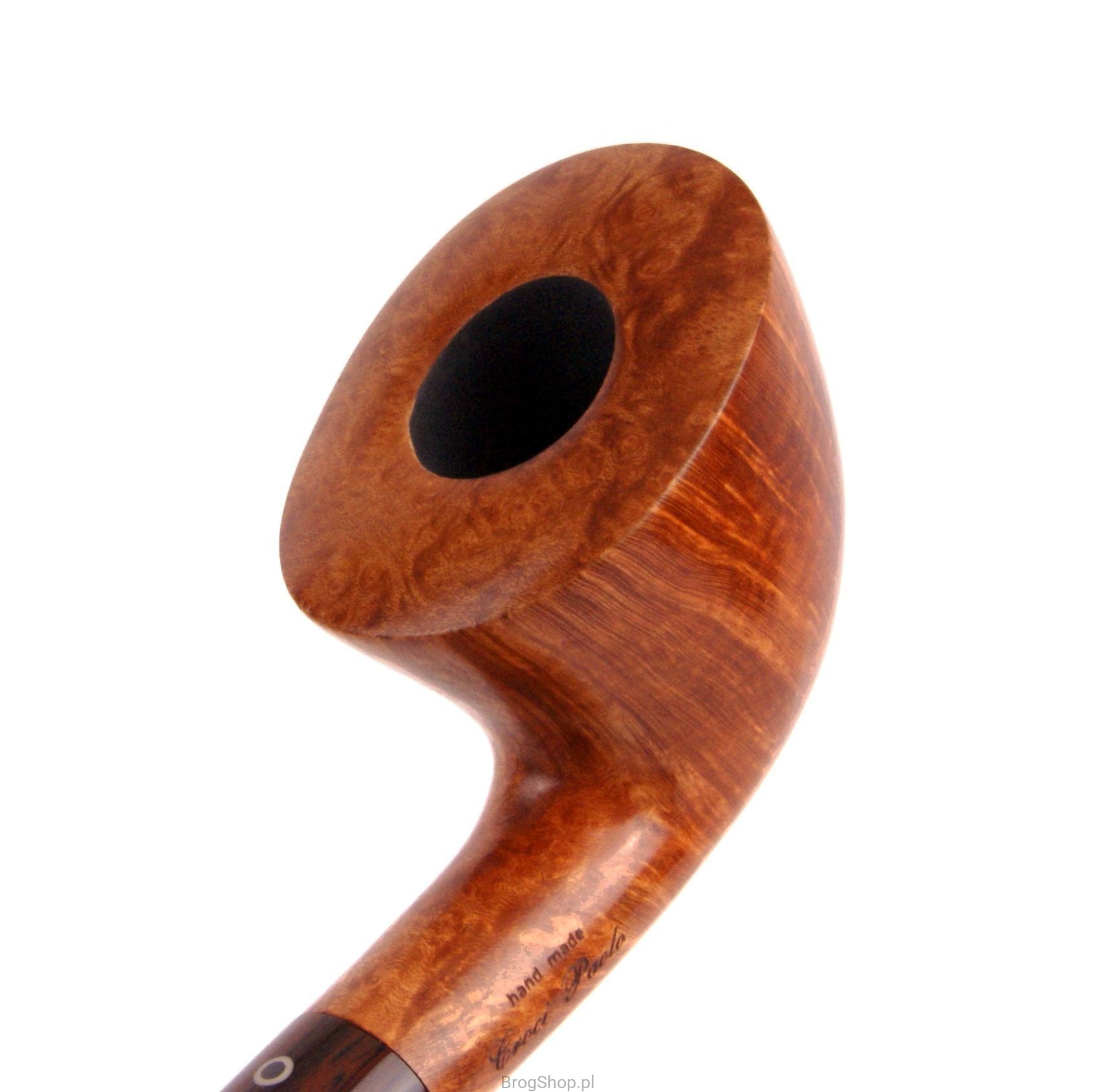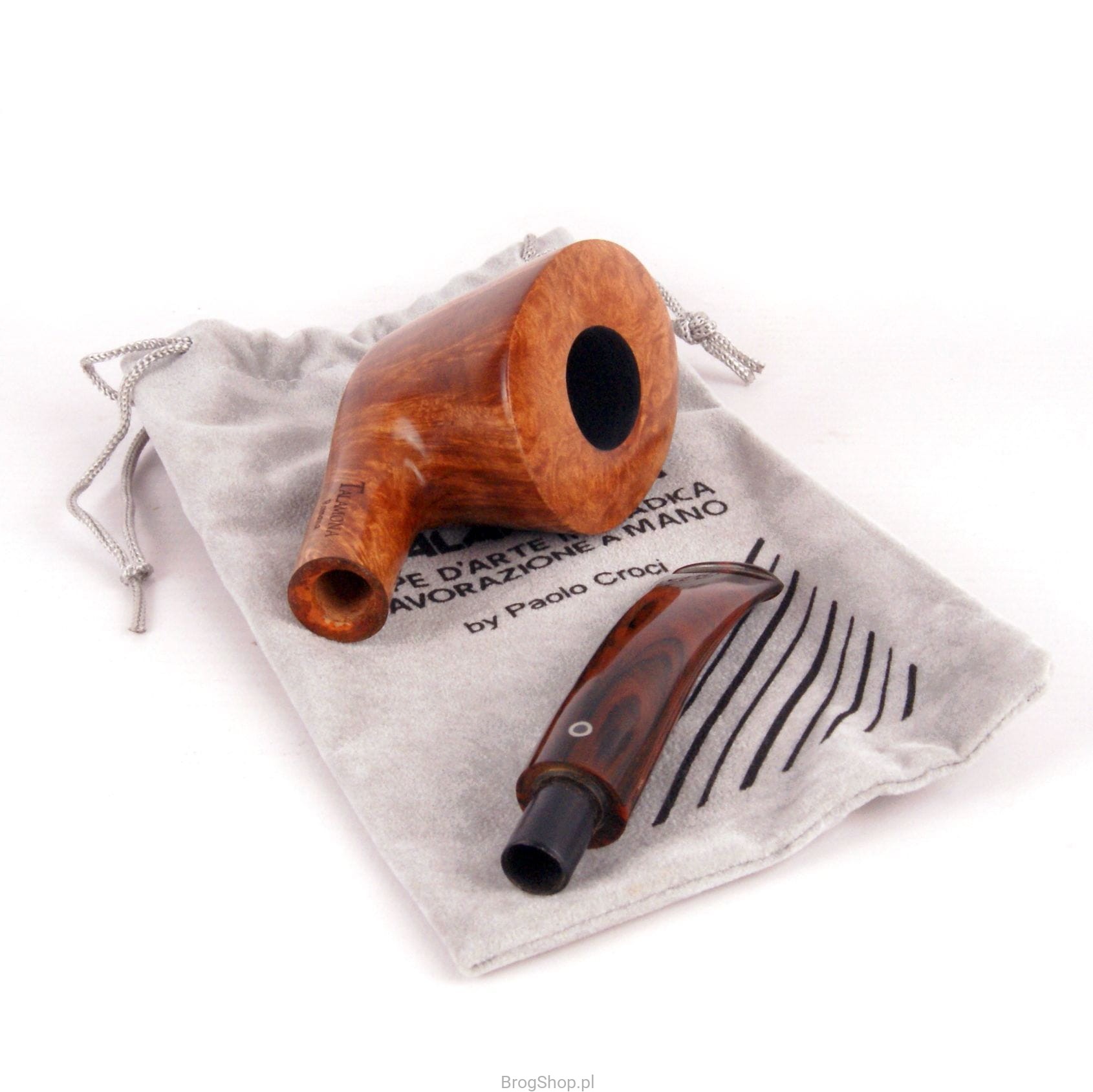 An interesting pipe handmade by the Italian master Paolo Croci. A pipe in the style of Freehand with an asymmetrical bowl, made of briar with a distinct Flame Grain grain. The briar contains three fine sandpits, no puttying. A wide, irregular rim with visible peacock eyes crowns a medium-capacity precarbonised furnace. Acrylic stem with a space for replaceable 9 mm filters, its color refers to the Cumberland stems. The set includes an elegant cover and a box with an insert from Paolo. Only one item shown in the photos is available.