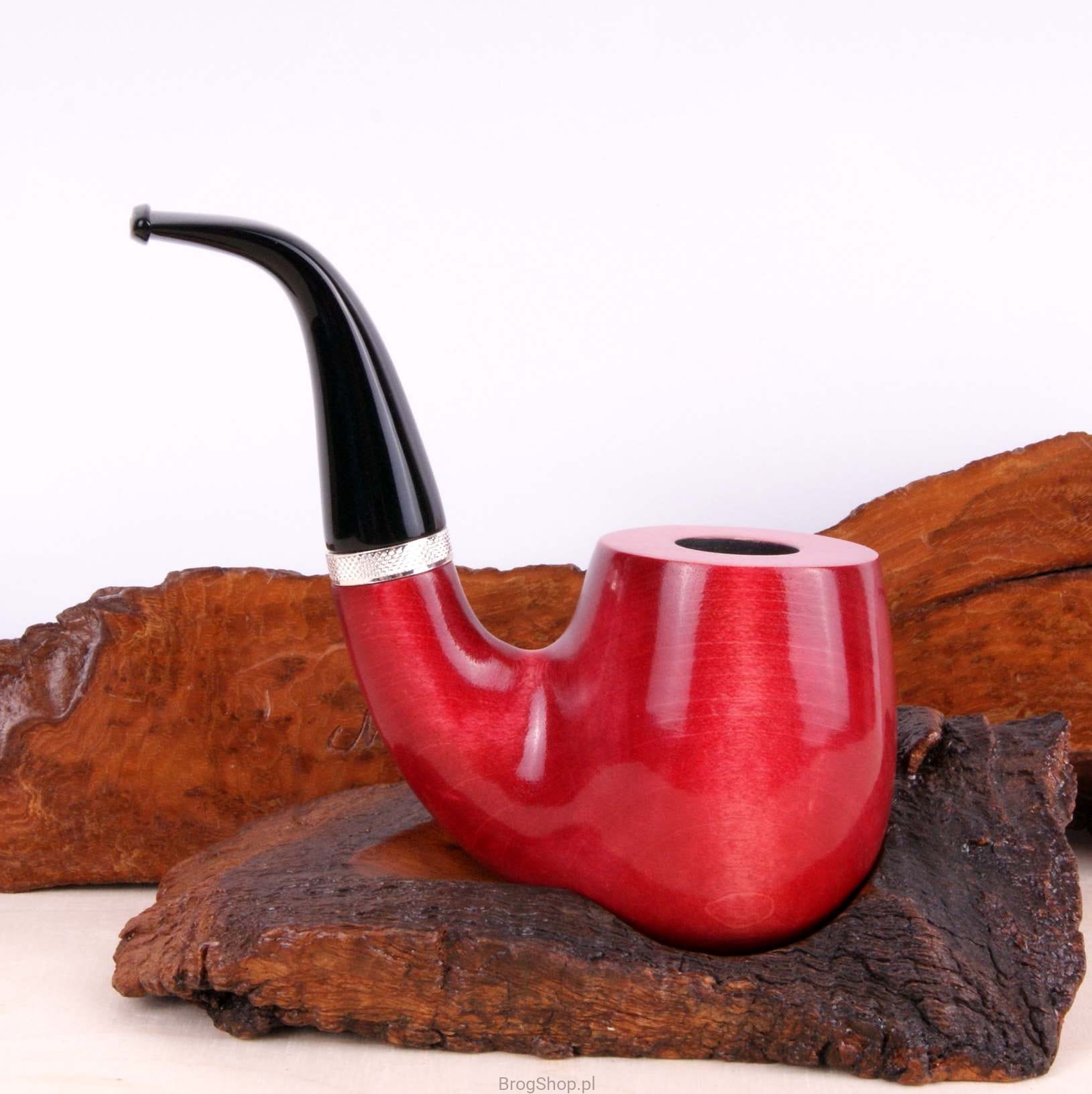 A very elegant pipe in the shape of OOM Paul was handmade from the wood of old pear tree. The pipe, massive and quite heavy with a characteristically curved shank, fits perfectly in the hand. Tightly fitted in the shank, the acrylic stem has a 9mm diameter filter while the shank itself is finished with a beautiful silver-plated ring. An interesting proposition for pipe lovers of this particular form. All packed in an original box with the logo of our studio.