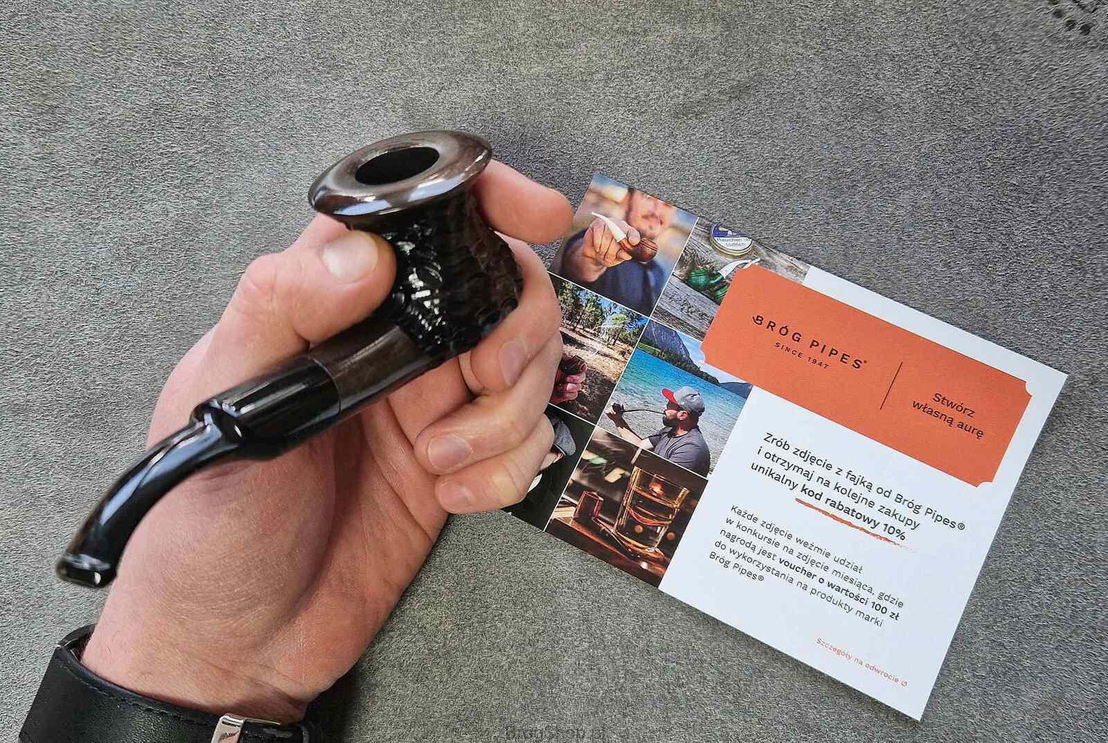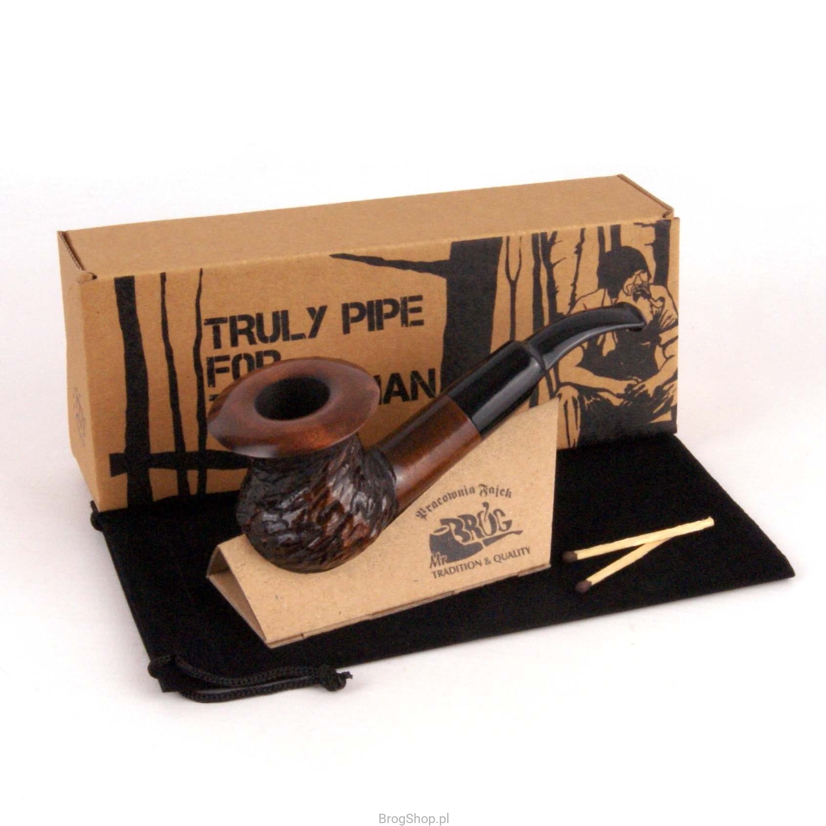 Interesting pipe with the shape reminiscent of "Calabash" made of pear wood. Handy and lightweight it fits comfortably in your hand, suitable for beginners. It has a pre-carbonized furnace that will accommodate a standard amount of tobacco. The stem with space for a 9 mm filter fits tightly with a slightly curved shank. A pipe in a set with a dedicated box.