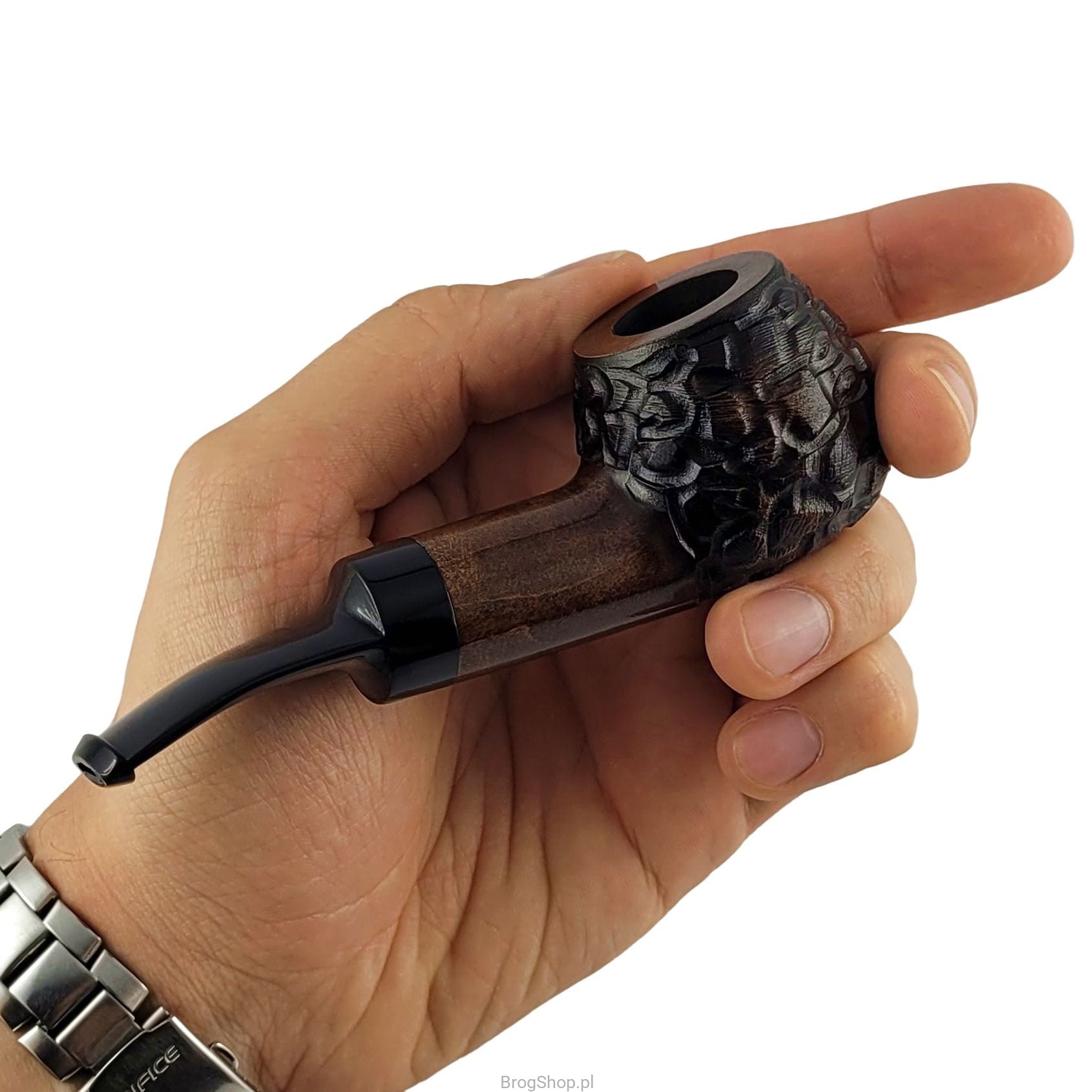 Very practical pipe for smoking tobacco, handmade from pear wood. Designed mainly for everyday use and for learning how to smoke pipe tobacco properly. Precarbonized furnace (requires proper tanning), saddle stem with space for replaceable 9 mm filters, six finish options to choose from, dedicated box included in the price.