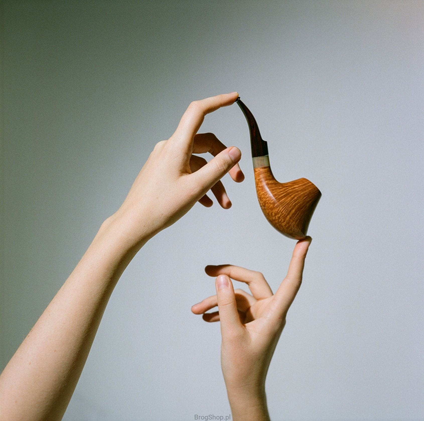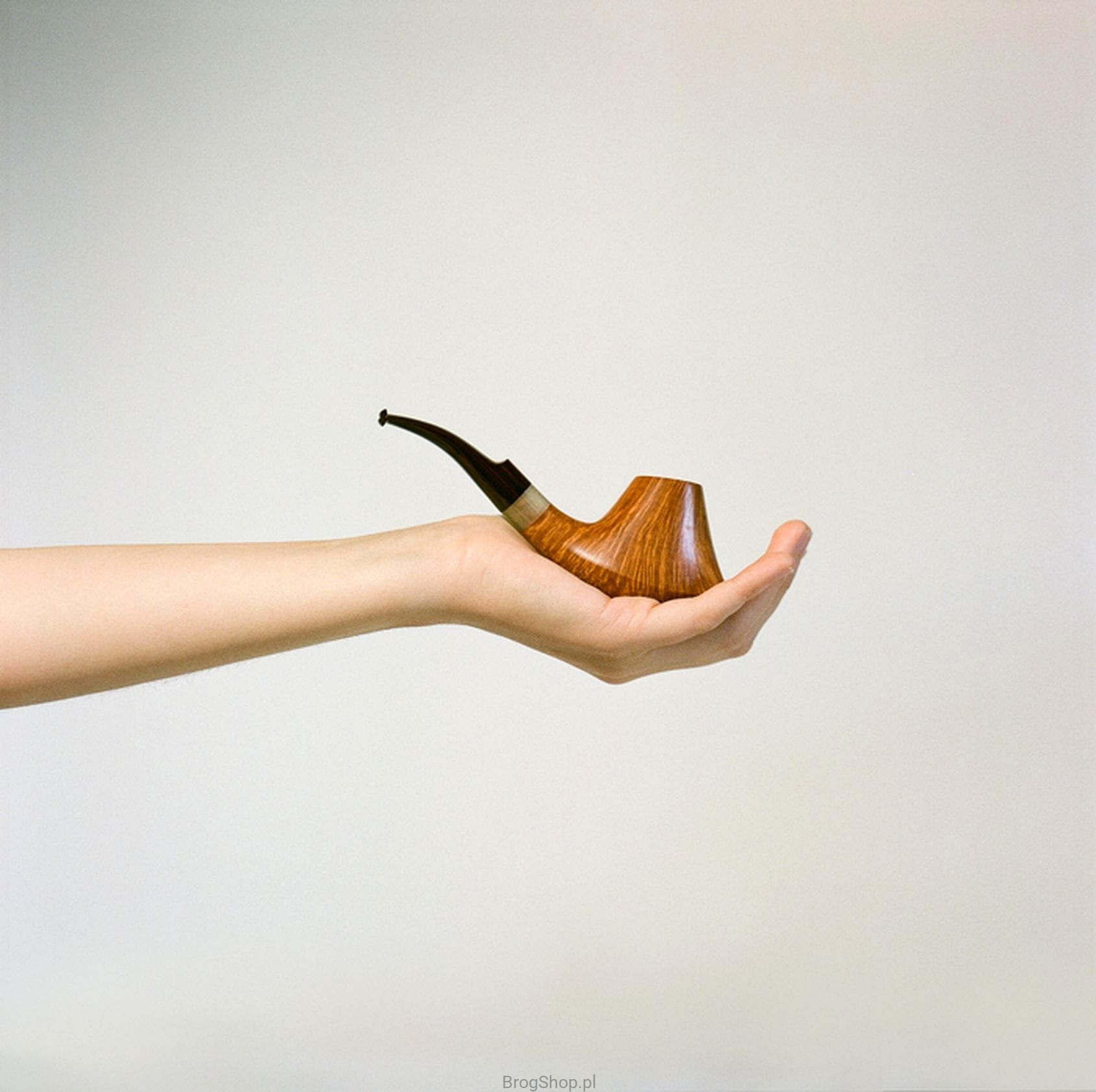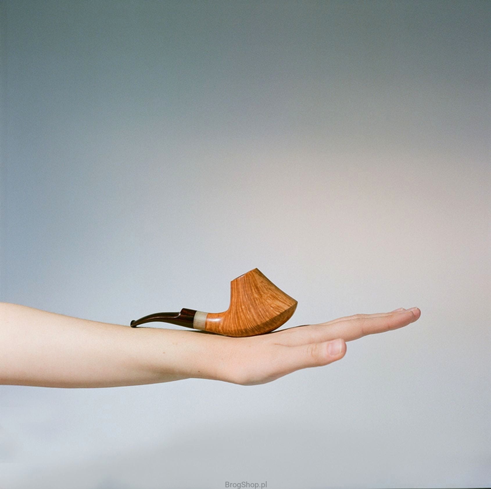 A unique briar pipe, handcrafted by the Italian Master Gioacchino Sauro. Volcano in this configuration was made in one copy and is available only in our store. Briar with book grain straight grain, natural color, with numerous peacock eyes at the base and a very clear grain arrangement throughout the volume. Oiled and waxed surface, three sandpits and no putties. The briar comes directly from Mimmo Romeo. A capacious furnace with a layer of precarbonate. The mouthpiece is a hand-shaped Cumberland with an elophoryne or synthetic ivory insert. The pipe is well thought out and made with great reverence that characterizes all of Sauro's works. It is intended for demanding and experienced pipe makers expecting top-class products. The pipe is packed in a leather, elegant cover. On request, we attach a wooden box.