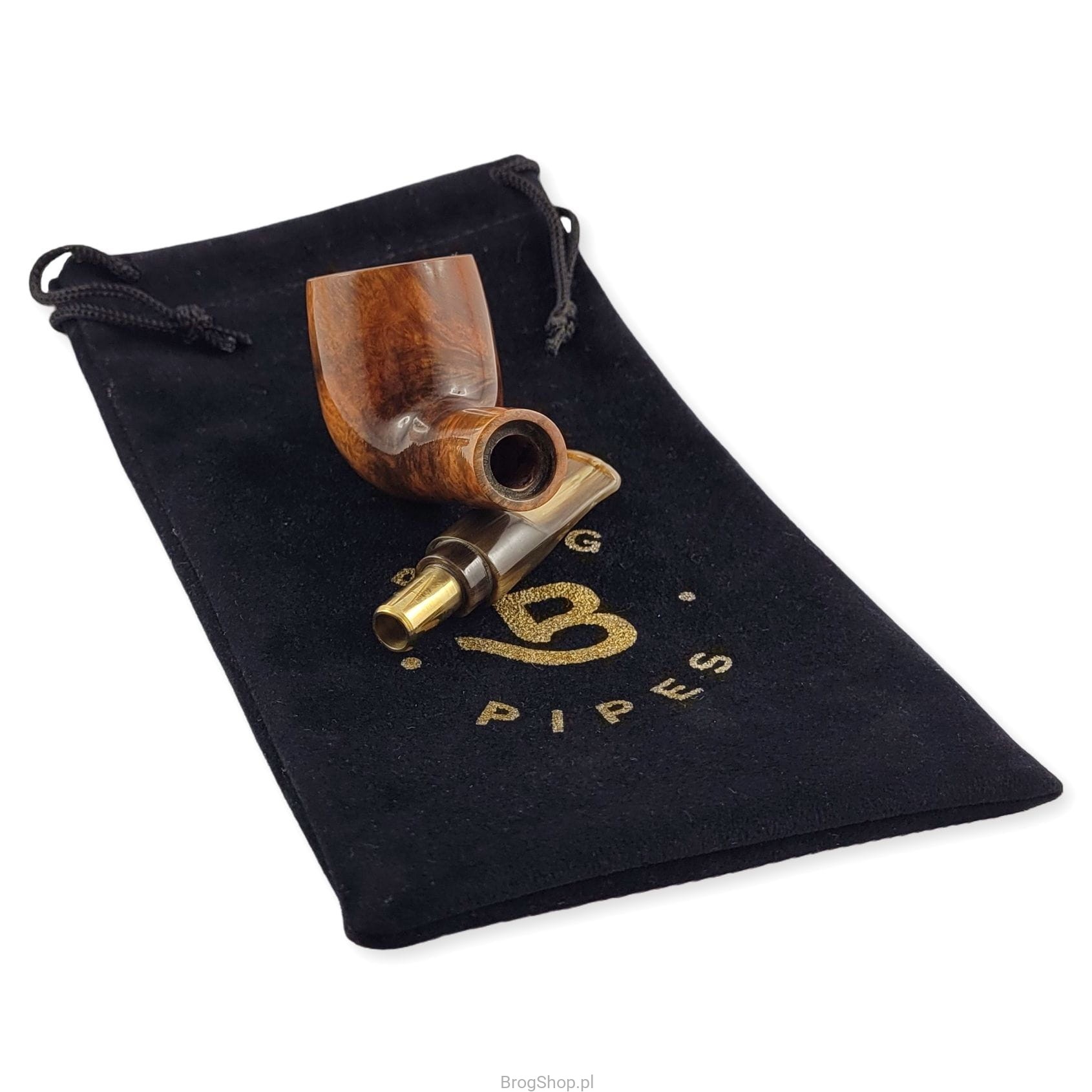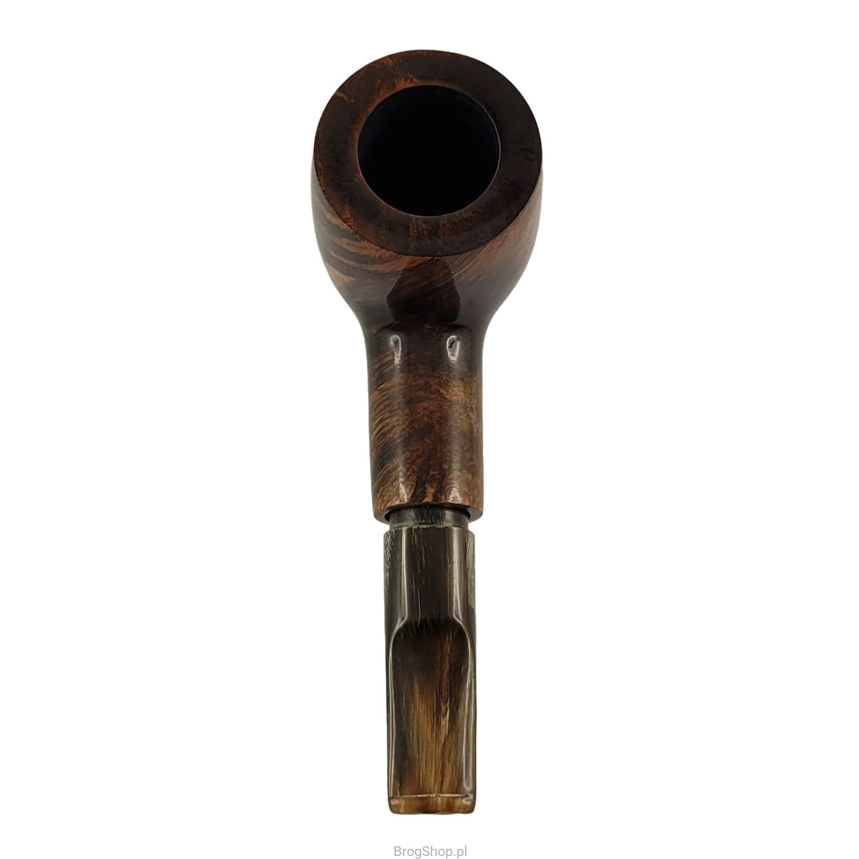 Another short pipe, colloquially called "nose warmer pipe", made of Italian briar for the convenience of use. Shorty is an interesting pipe due to its compact size, and a natural buffalo horn stem mounted on a metal spigot. Despite its small size, the pipe furnace is quite roomy (see dimensions below), the walls are covered with precarbonate. Model No. 93 is offered in a single, non-uniform finish, so each pipe is slightly different, you can see it in the collective photo. An elegant box and a fabric cover included in the price of the product. NOTE: each pipe has a slightly different color of the mouthpiece. It is a natural material characterized by both light and dark colors.