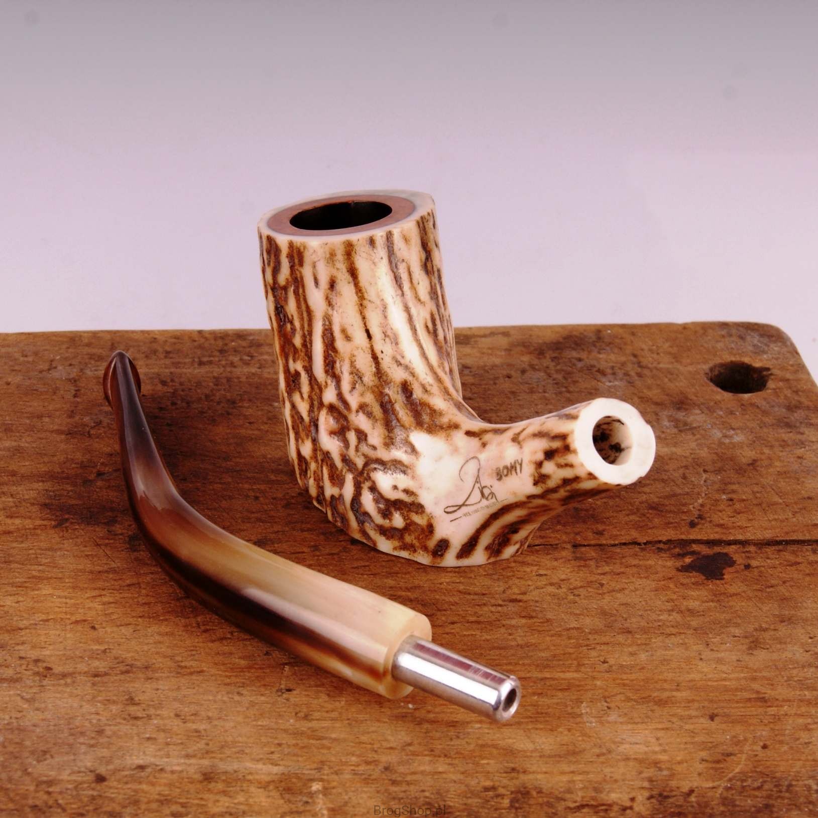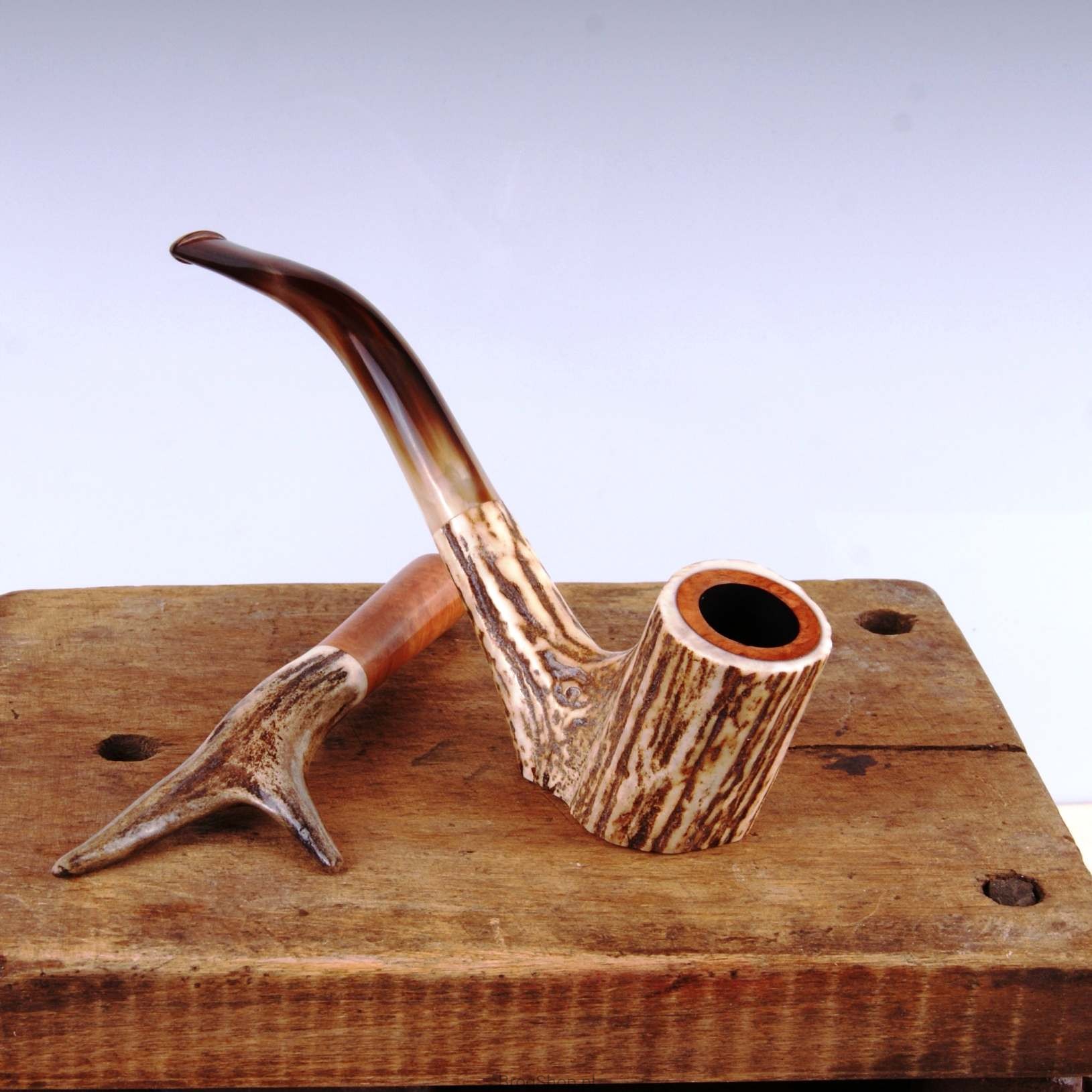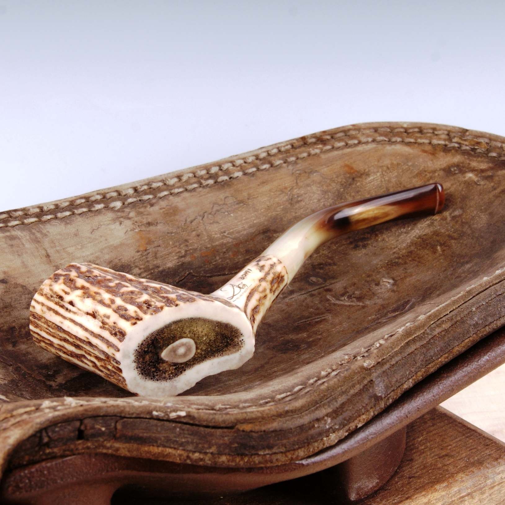 The pipe is made of natural staghorn with briar furnace.