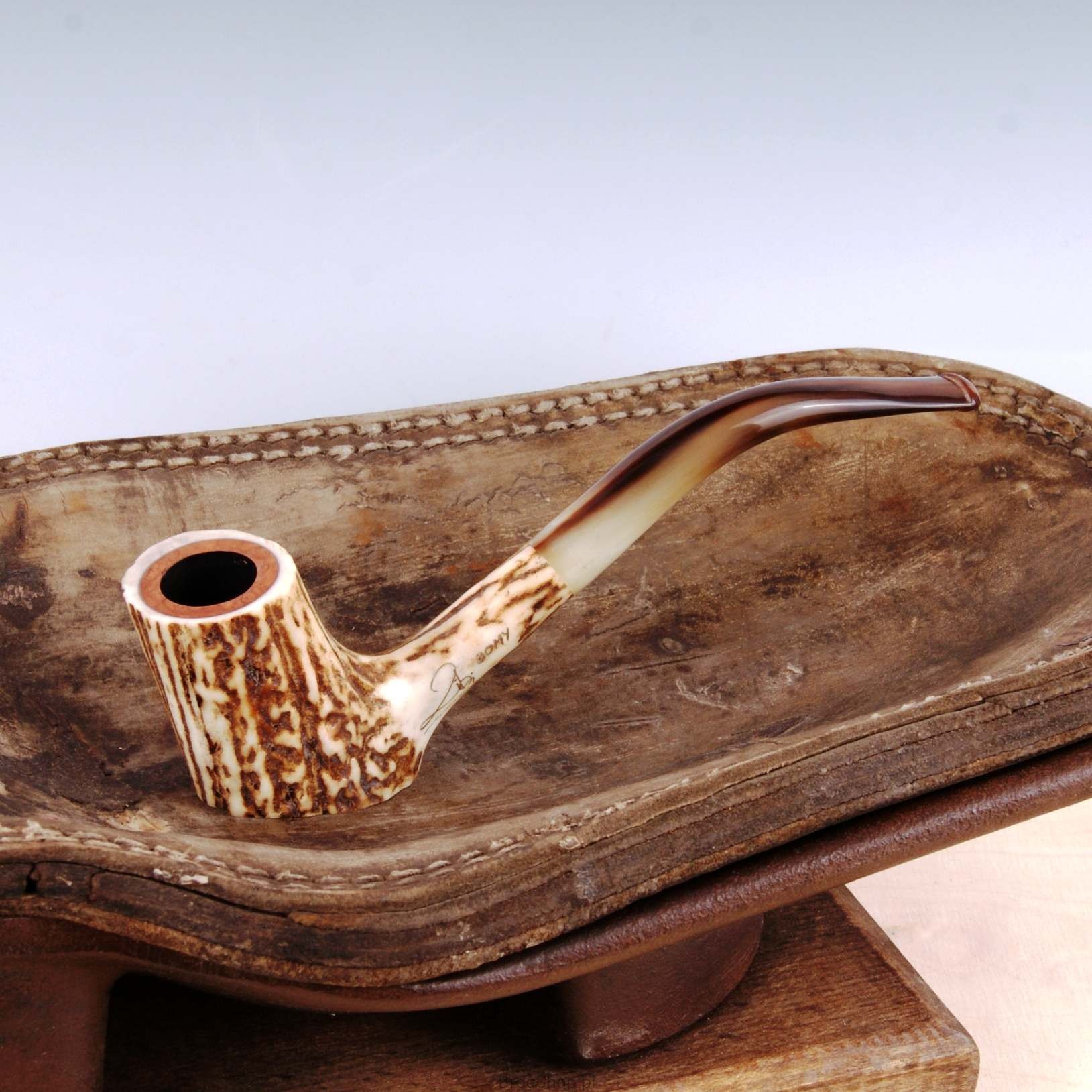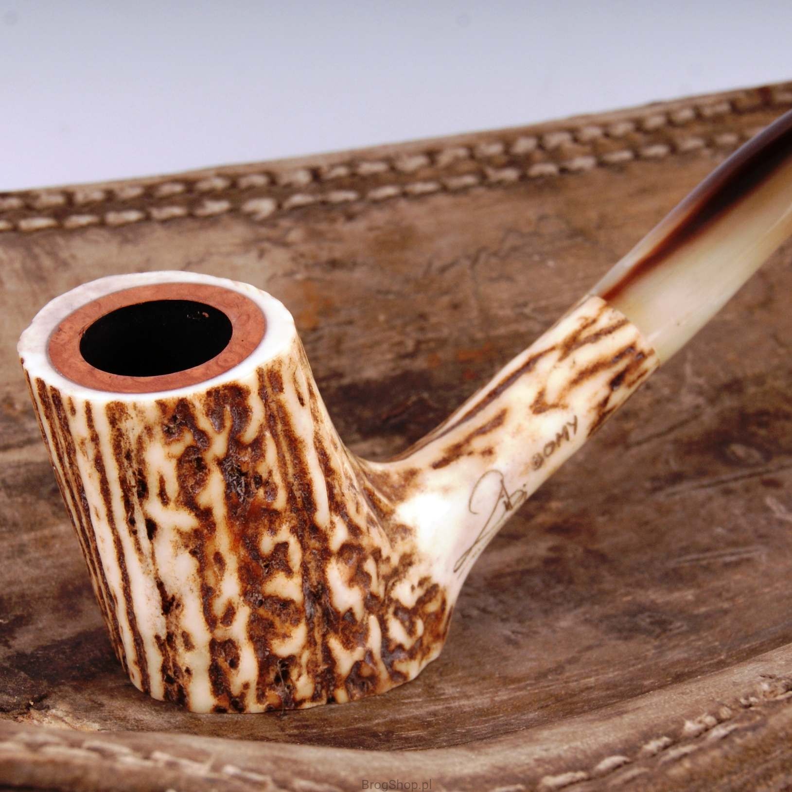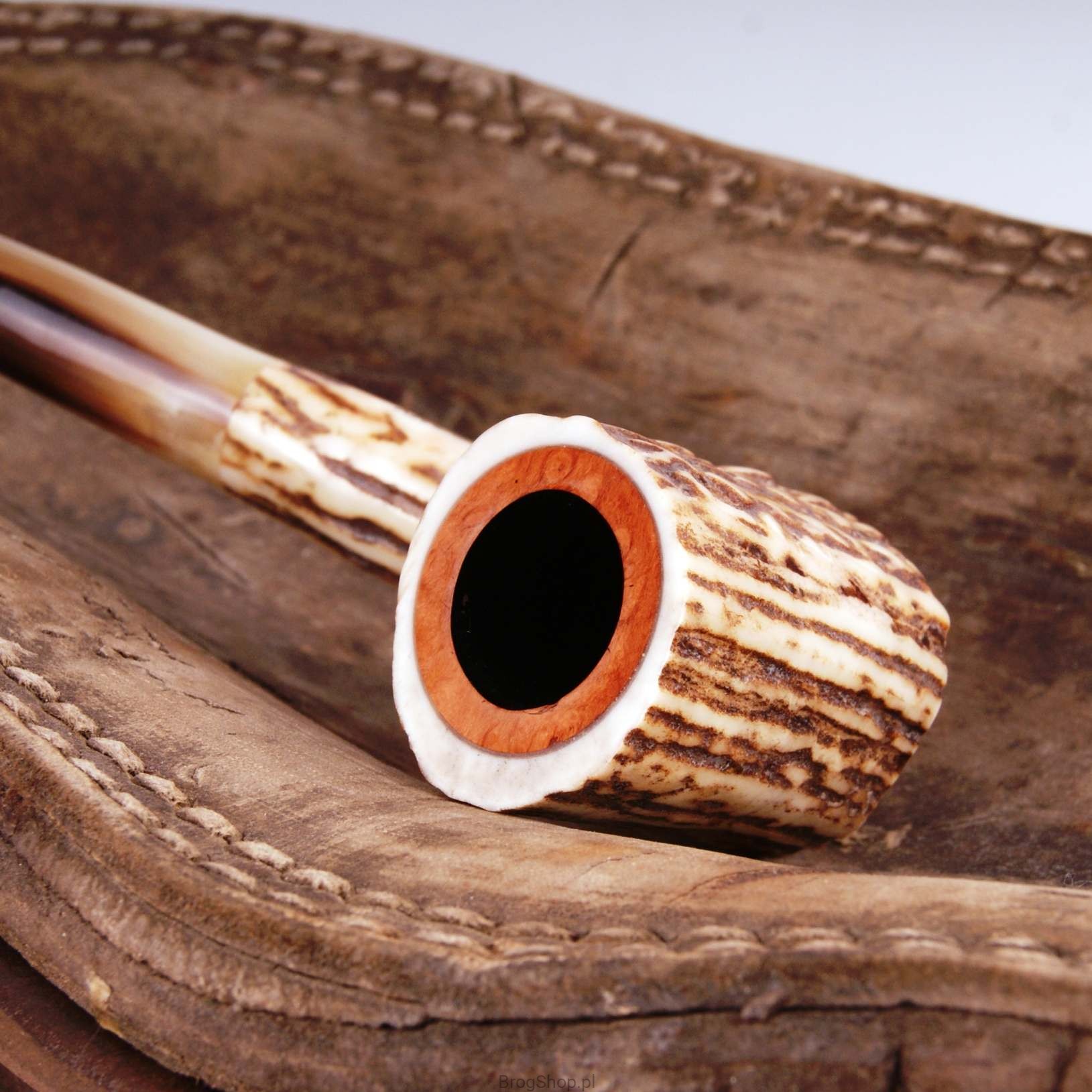 The pipe is made of natural staghorn with briar furnace.