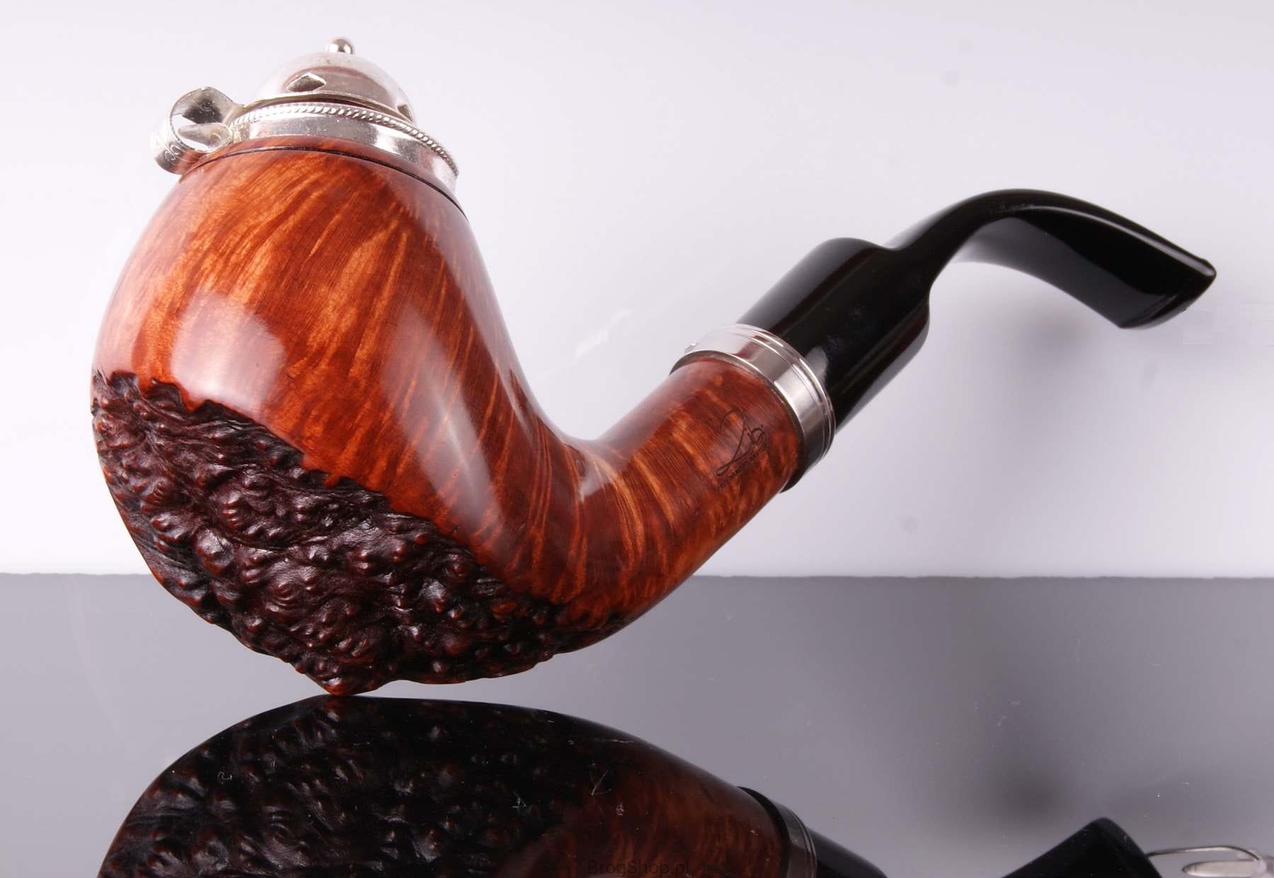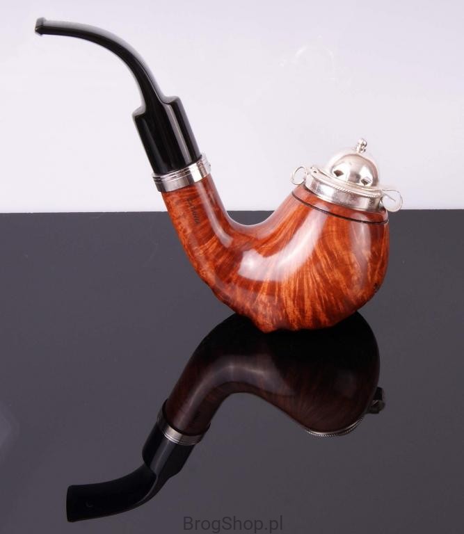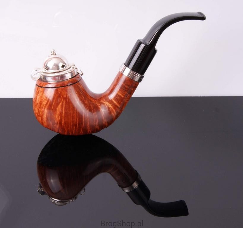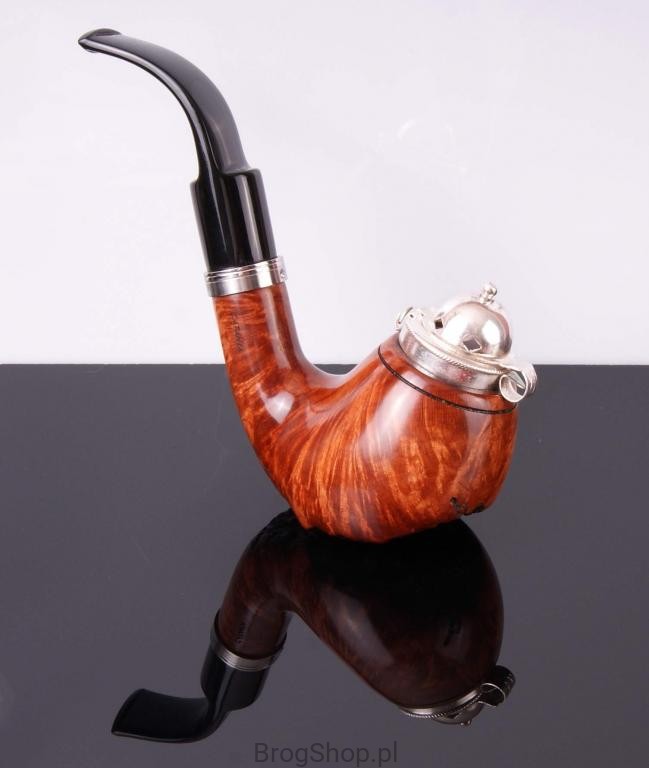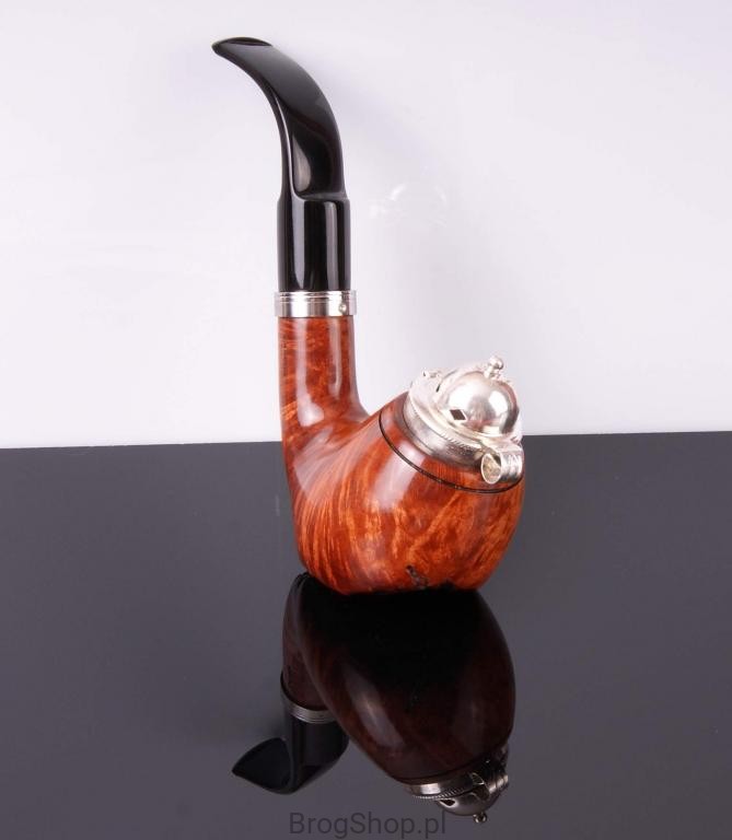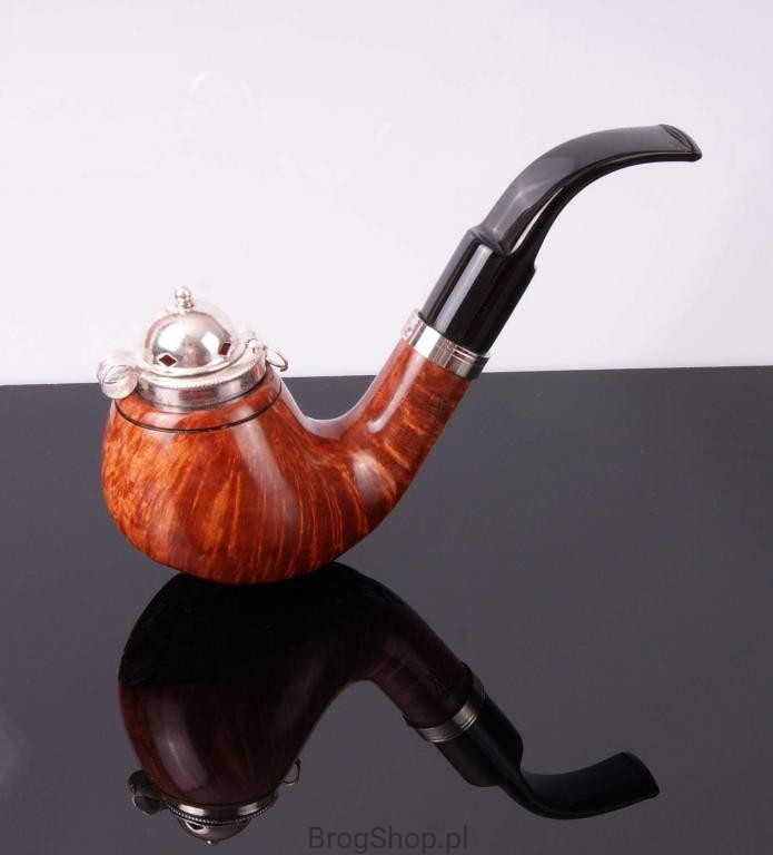 The pipe is made of Calabrese briar wood with silver-plated cap and a metal ring, with zircon.