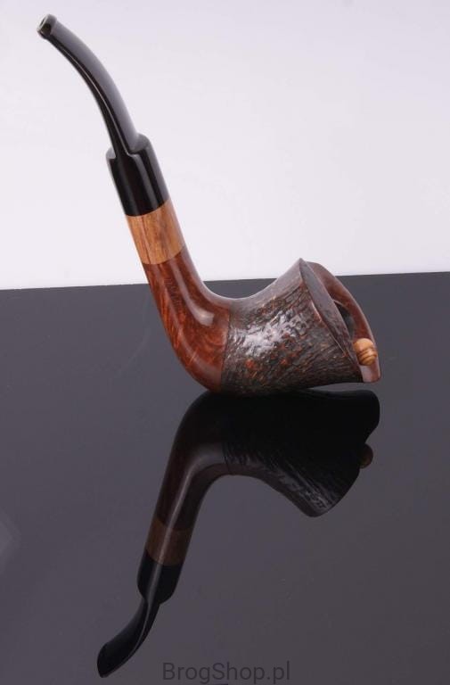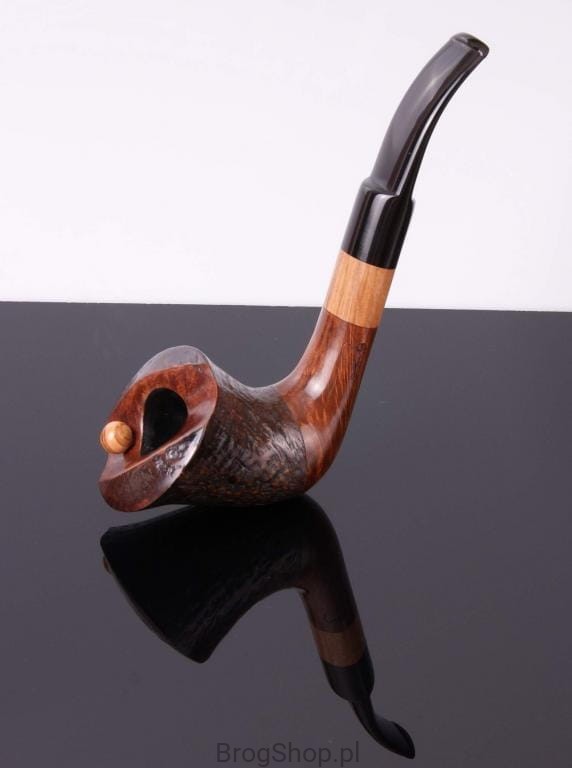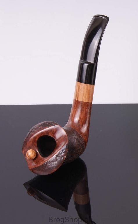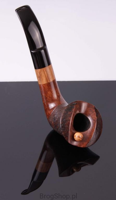 The pipe is made of Calabrese briar wood, inset with wood olives.