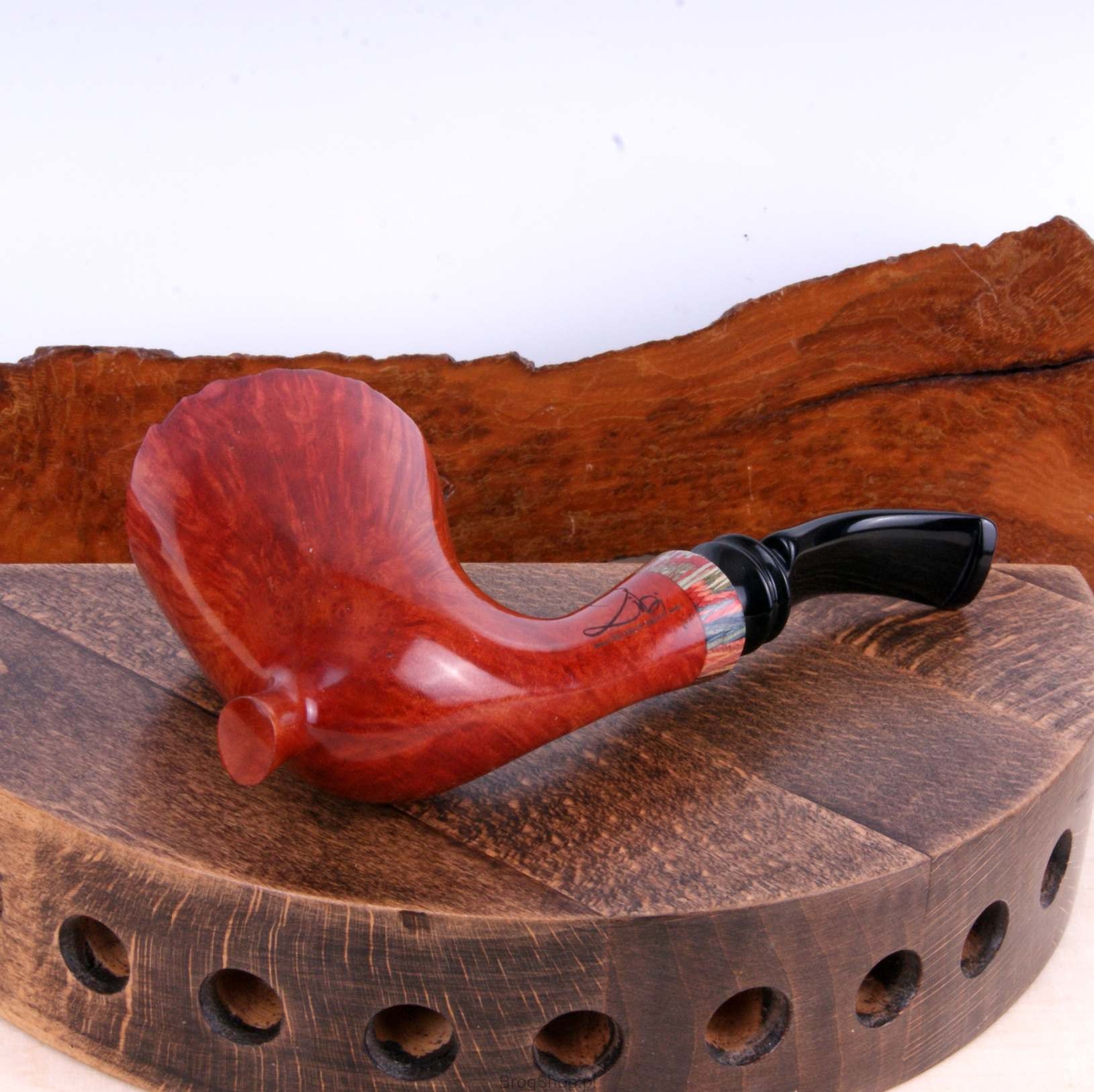 The pipe is made of Ligurian briar wood, Flame Grain.