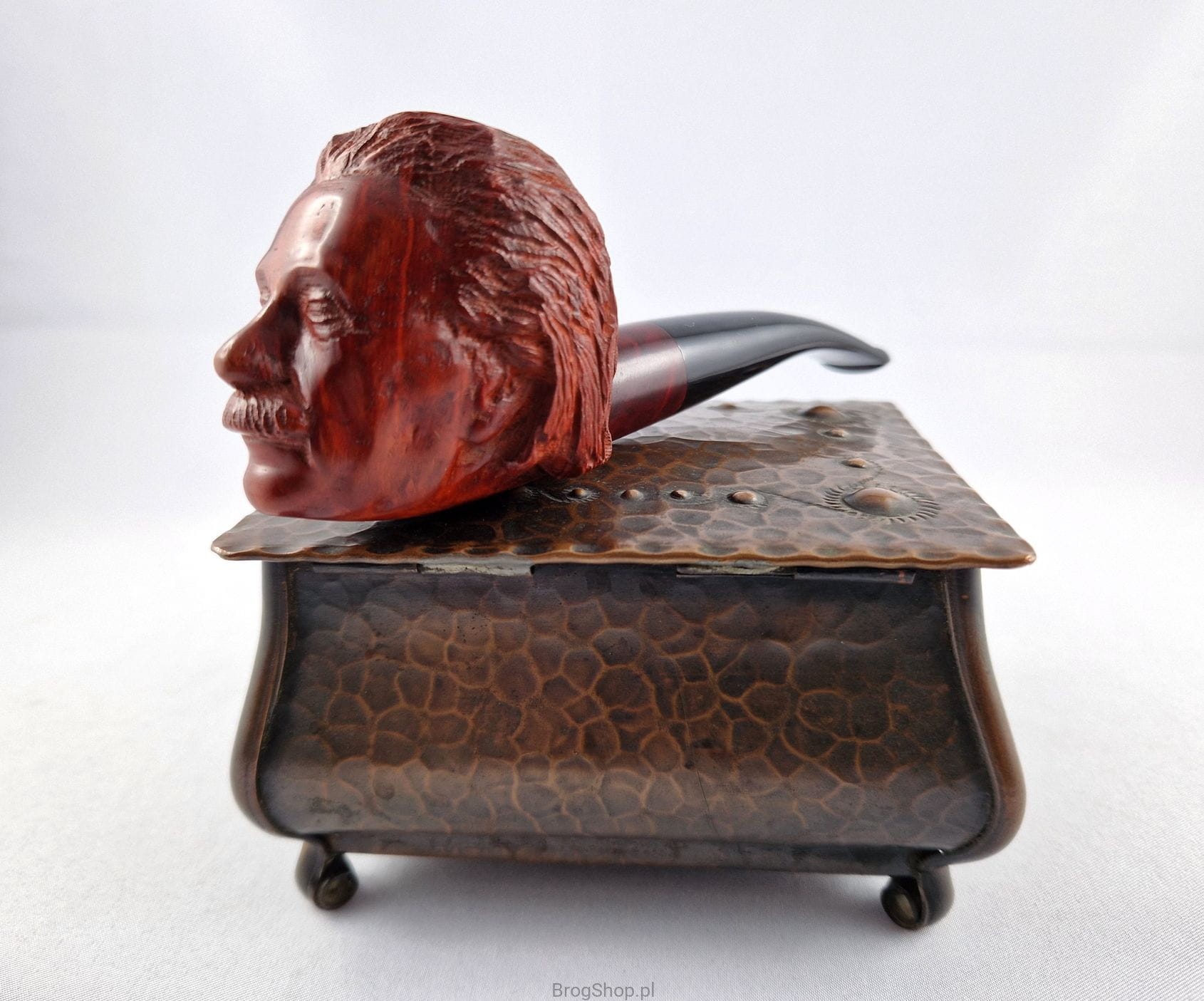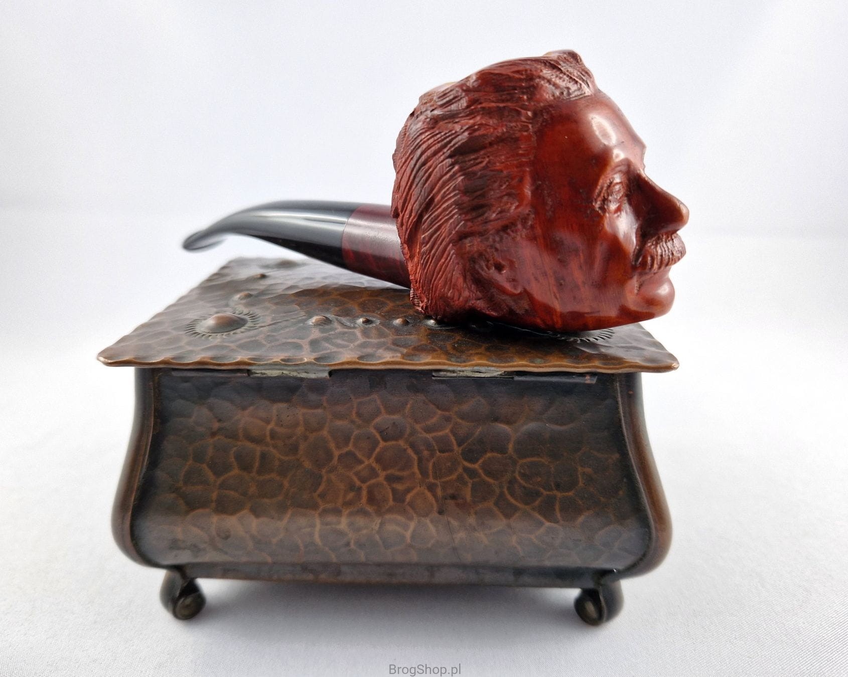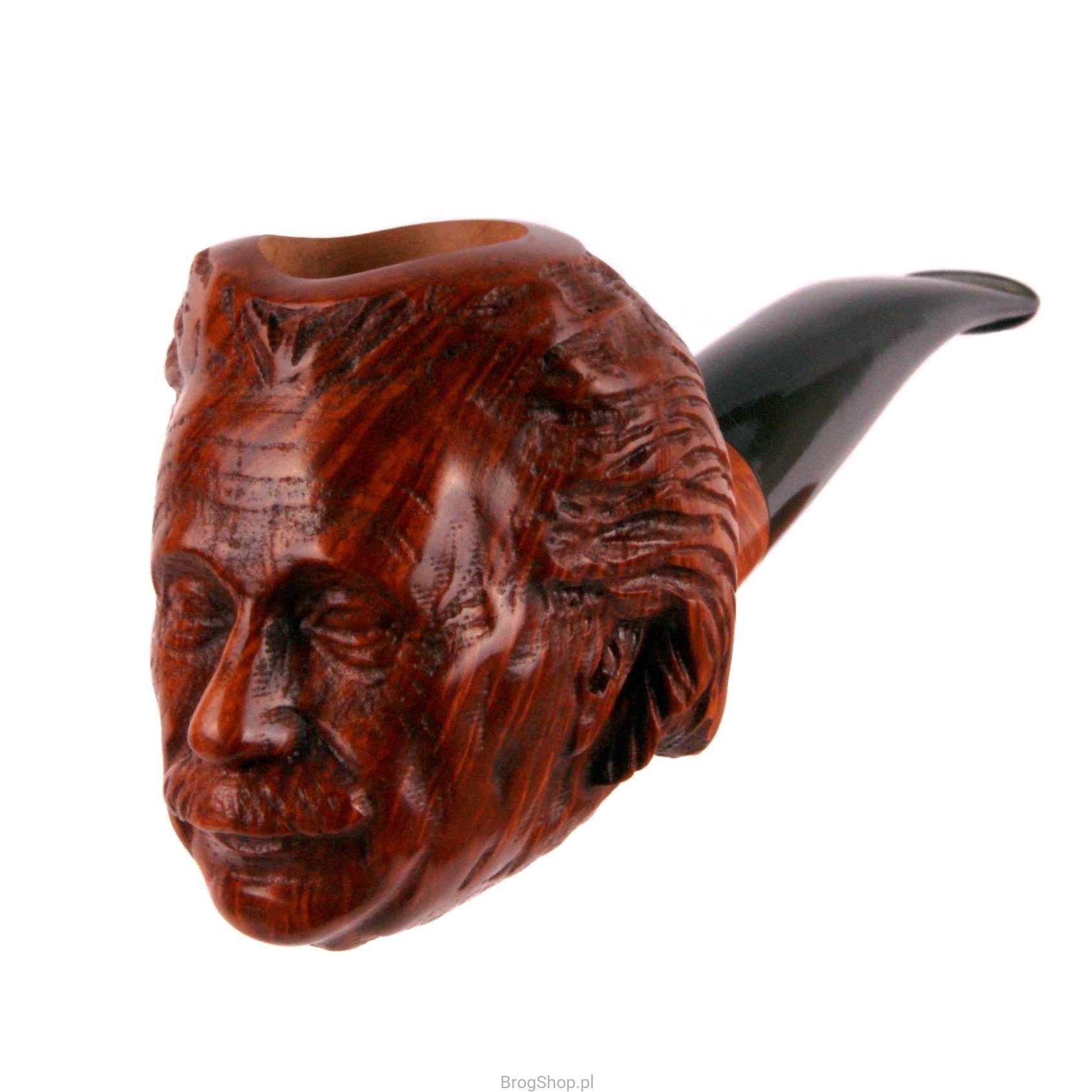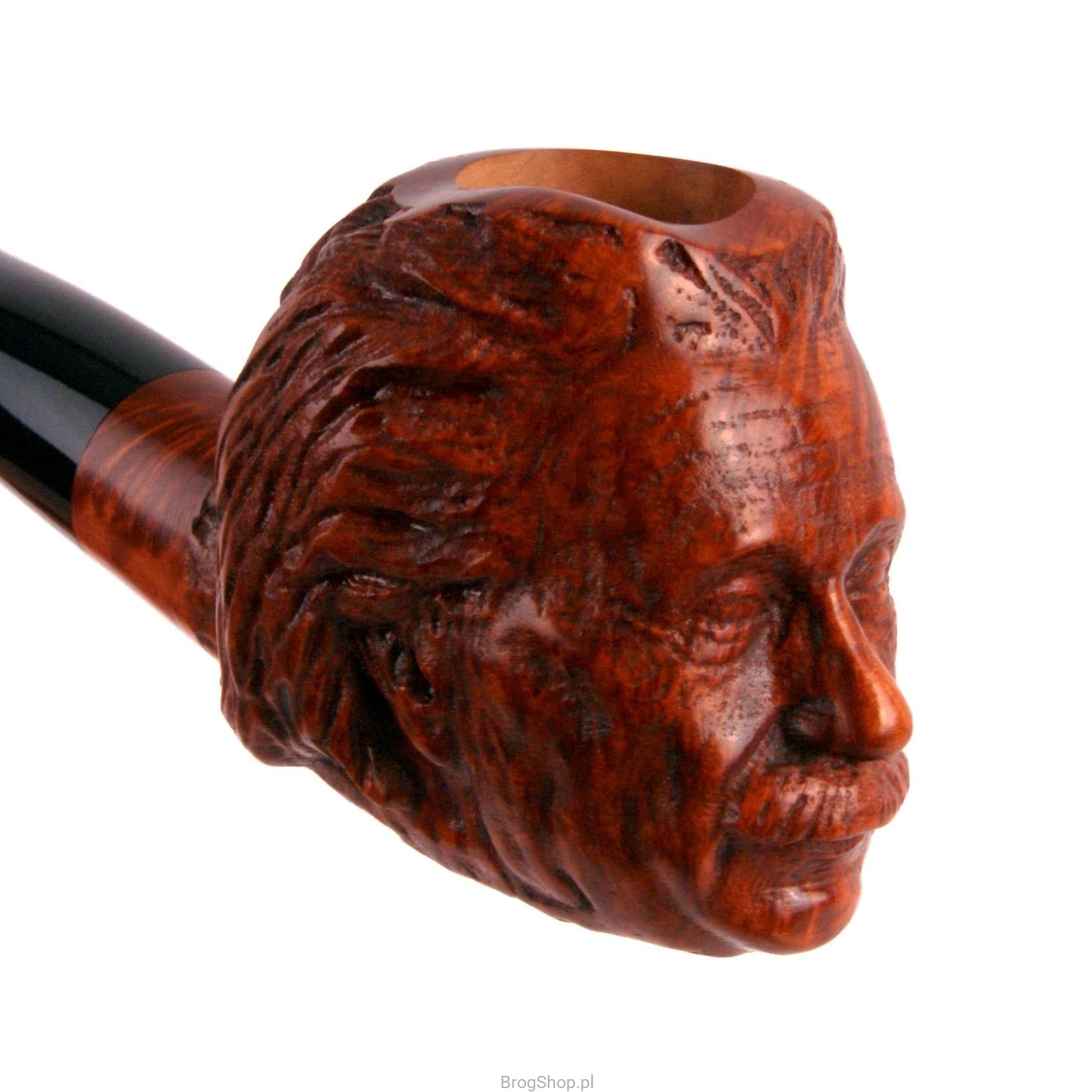 Fajka wrzoścowa z główką rzeźbioną na podobiznę słynnego fizyka i laureata Nagrody Nobla. Palenisko całkiem pojemne, naturalne bez prekarbonizatu, rim nieregularny niczym ruchy Browna. Ustnik akrylowy z miejscem na wymienne filtry 9 mm a w zestawie prócz fajki znajdziemy również materiałowy pokrowiec oraz pudełko.