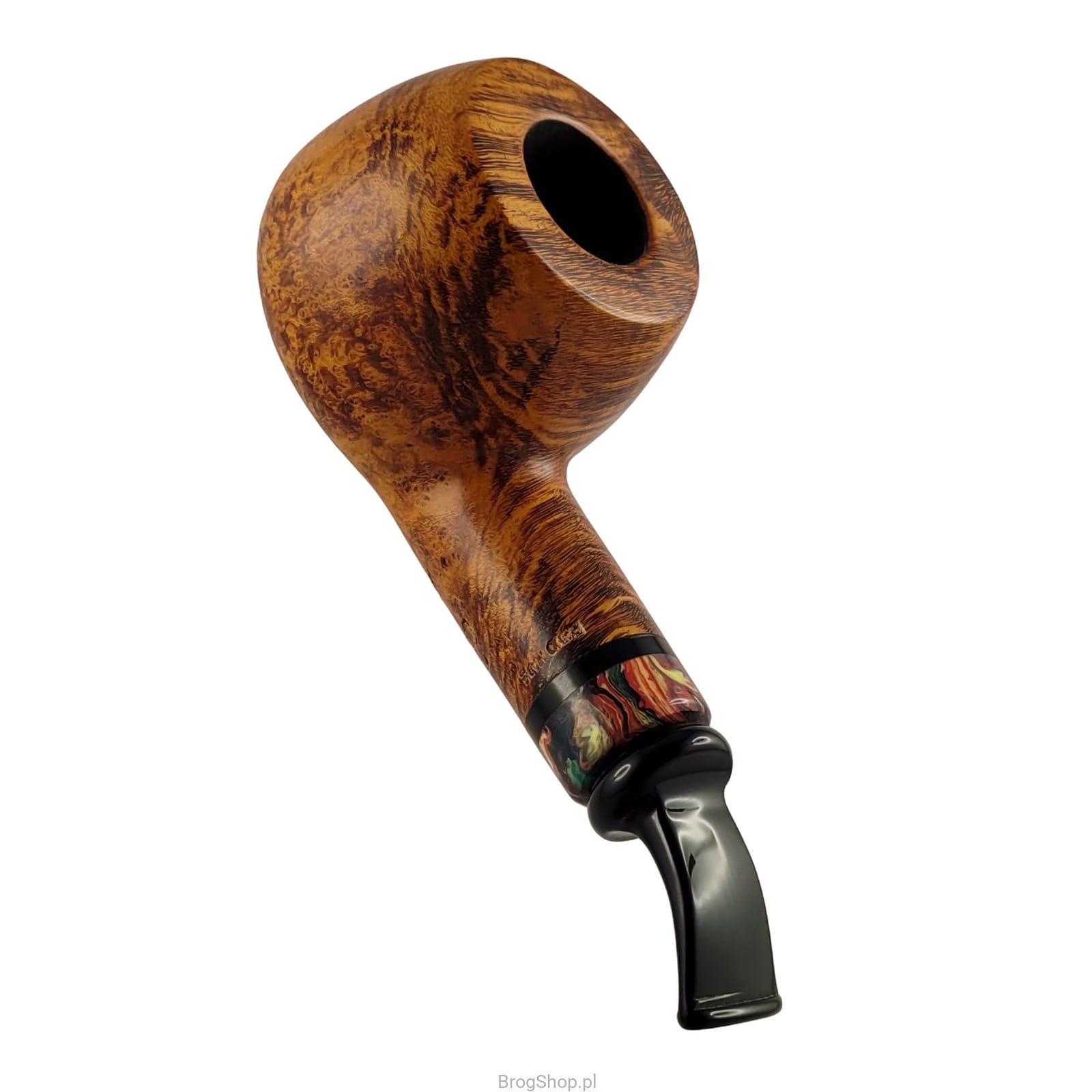 Wyjątkowo piękna fajka wrzoścowa, wykonana ręcznie przez Peder Jeppesena z Danii. Charakterystyczny styl, który przez lata wypracował sobie ten fajkarz, jest widoczny na pierwszy rzut oka. Fajka jest krótka, ale pękata. Posiada krótki ustnik z akrylu oraz wielobarwny pierścień. Selektywne bejcowanie podkreśla piękno wrzoścowej bulwy, nadając fajce wyrazisty wygląd. Palenisko prekarbonizowane, ustnik przystosowany do filtrów 9 mm. W zestawie znajduje się materiałowy pokrowiec. Dostępna jest wyłącznie jedna fajka widoczna na zdjęciach. Zapraszamy do obejrzenia obszernej galerii.
