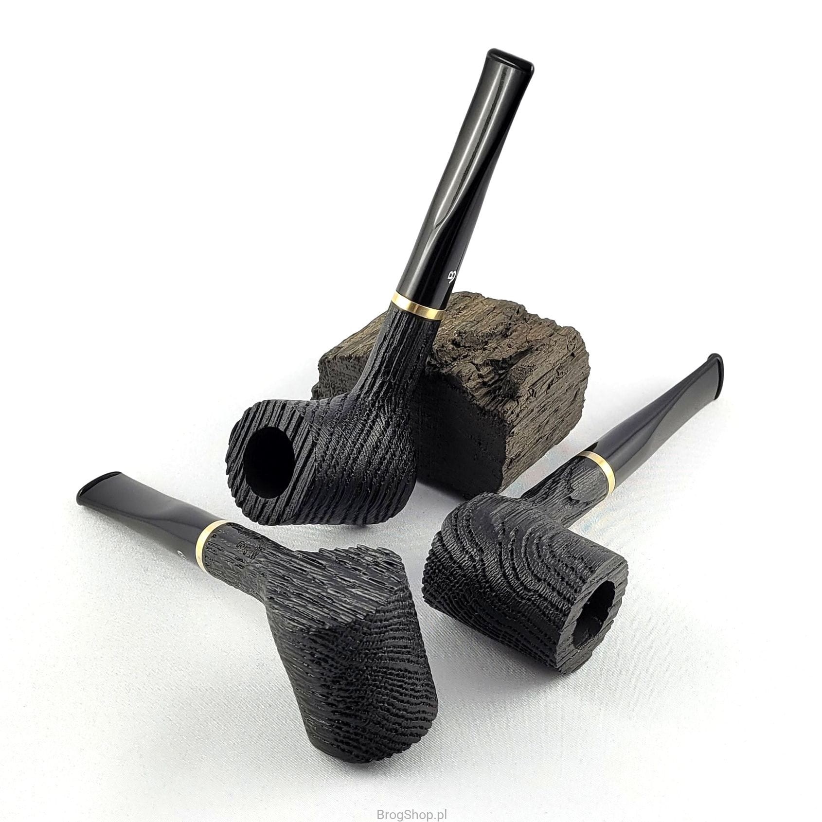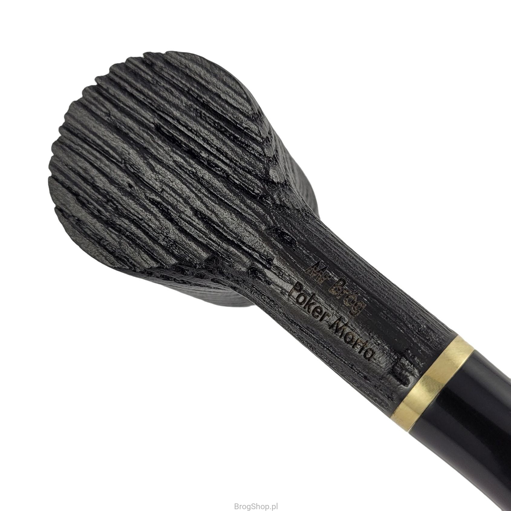 Klasyczny Poker z naszej pracowni, ręcznie wykonany z piaskowanego drewna czarnego dębu. Każdy miłośnik fajek klasycznych, prędzej czy później spotka na swojej drodze fajkę w takim właśnie stylu. Świetnie wyważony o standardowym palenisku pokrytym prekarbonizatem, otrzymał ustnik wykonany z trwałego akrylu na filtry 9 mm. Płaska podstawa pozwoli odstawić fajkę w dowolnym miejscu, bez użycia stojaka. Całość zapakowana jest w materiałowy pokrowiec oraz dedykowane pudełko Mr Bróg. Fajka odpowiednia zarówno dla początkujących jak i zaawansowanych fajczarzy, polecamy!