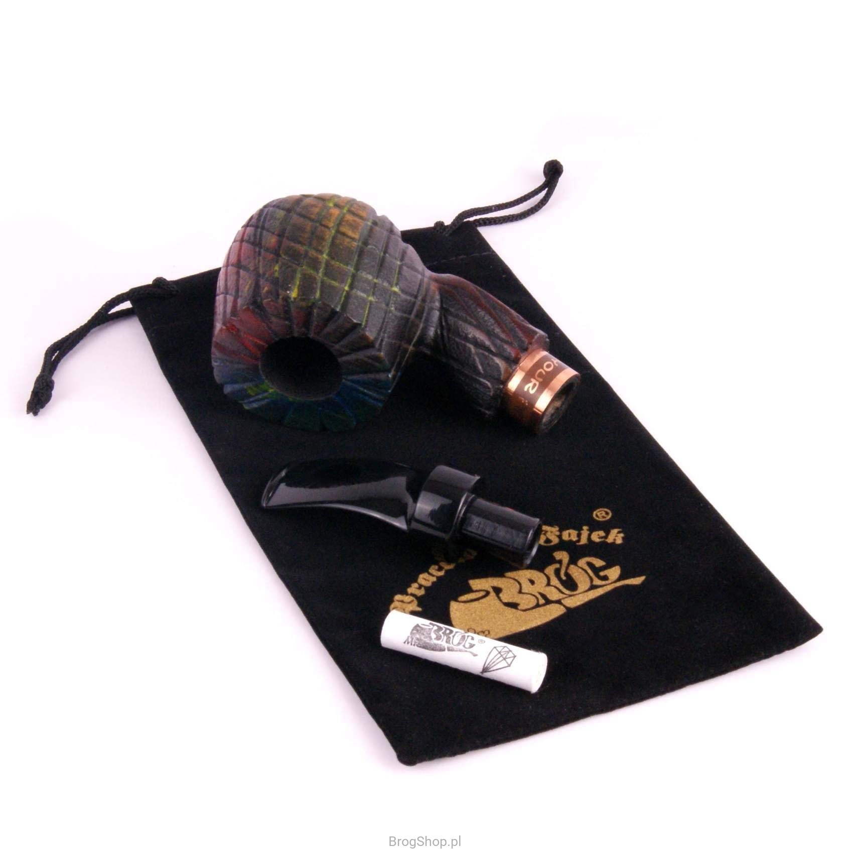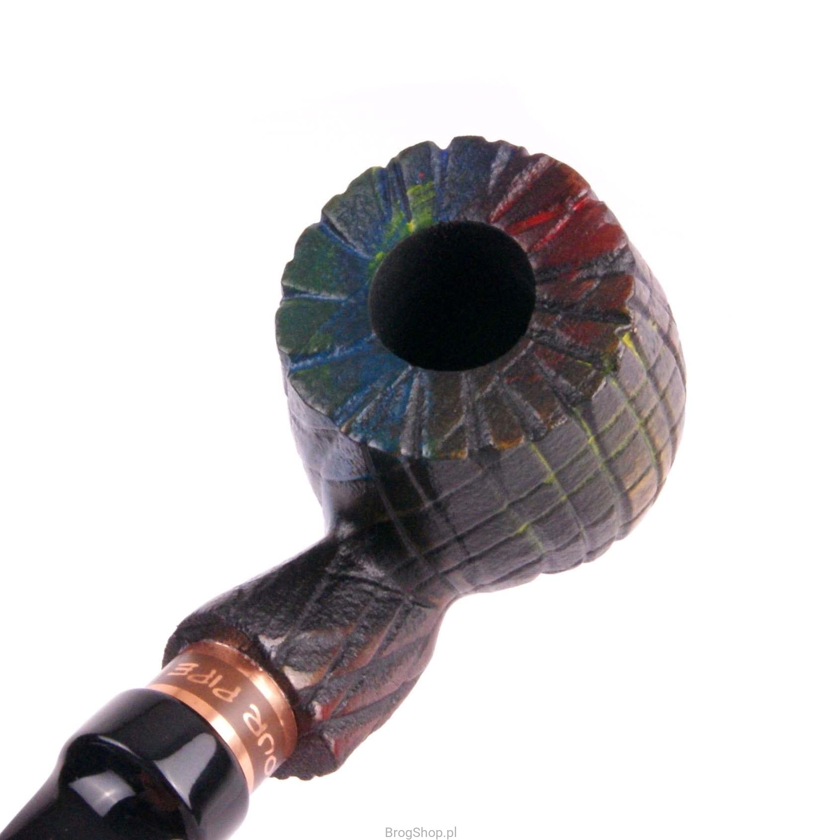 Nieszablonowa, radosna, a jednocześnie odważna fajka o unikalnym wykończeniu, ręcznie wykonana w naszej pracowni z polskiego drewna gruszy. Ryflowana, piaskowana i barwiona w nieregularny, niepowtarzalny wzór, przyciąga uwagę swoim wyjątkowym wyglądem. Każda fajka jest jedyna w swoim rodzaju – nie ma możliwości wyboru konkretnego wariantu, a egzemplarze wysyłane są losowo. Obecnie dostępne fajki widoczne są m.in. na zdjęciu zbiorczym.