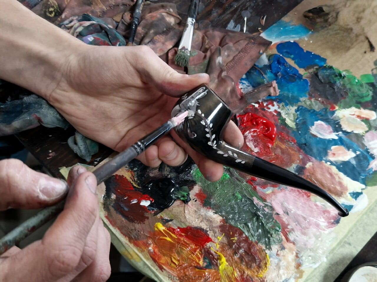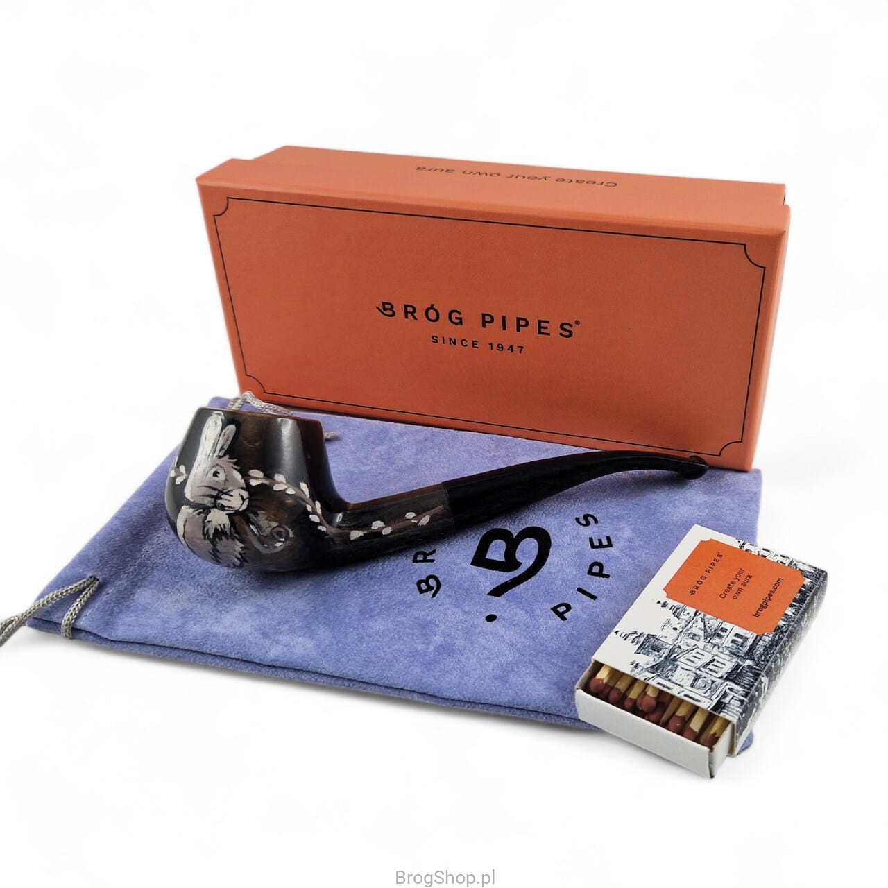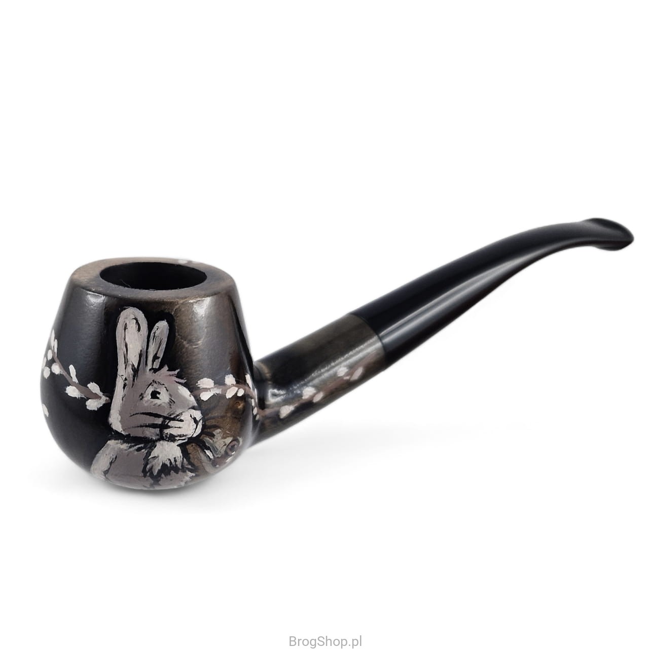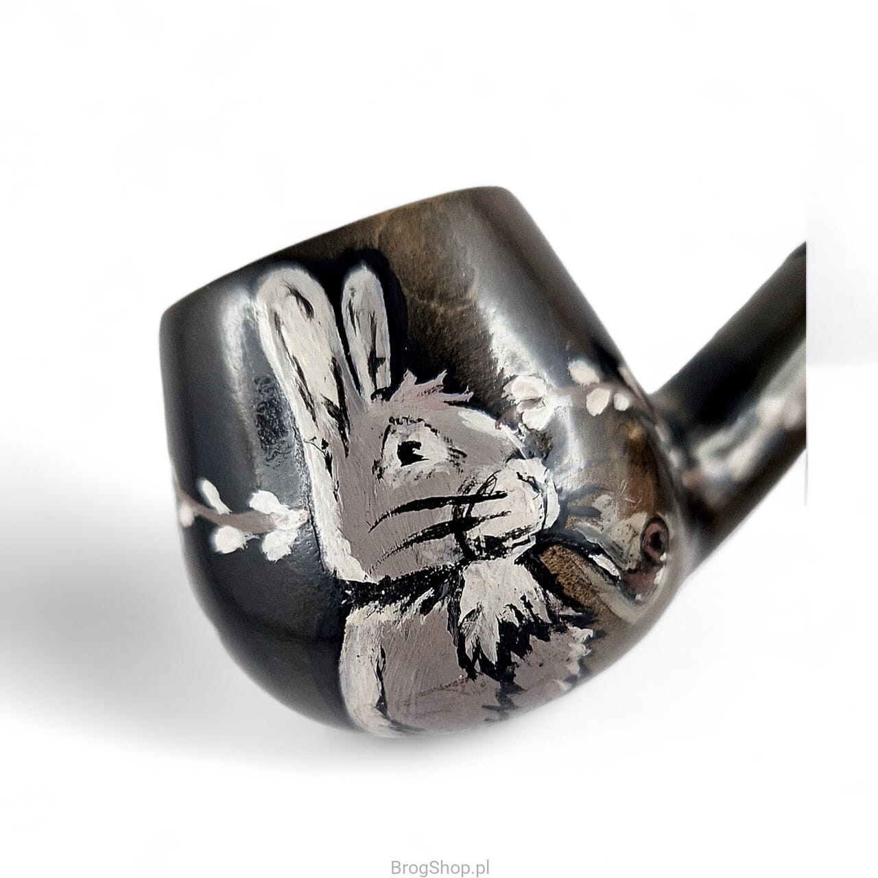 Fajka do tytoniu w świątecznej, wielkanocnej edycji. Wykonana ręcznie z drewna polskiej gruszy, posiada prekarbonizowane palenisko oraz zbieżny ustnik ze skraplaczem. Zdobienia wykonane również ręcznie, przedstawiają zajączka palącego fajkę wśród gałązek wierzby. Zabezpieczone przed przetarciami wodnym lakierem oraz woskiem Carnauba.