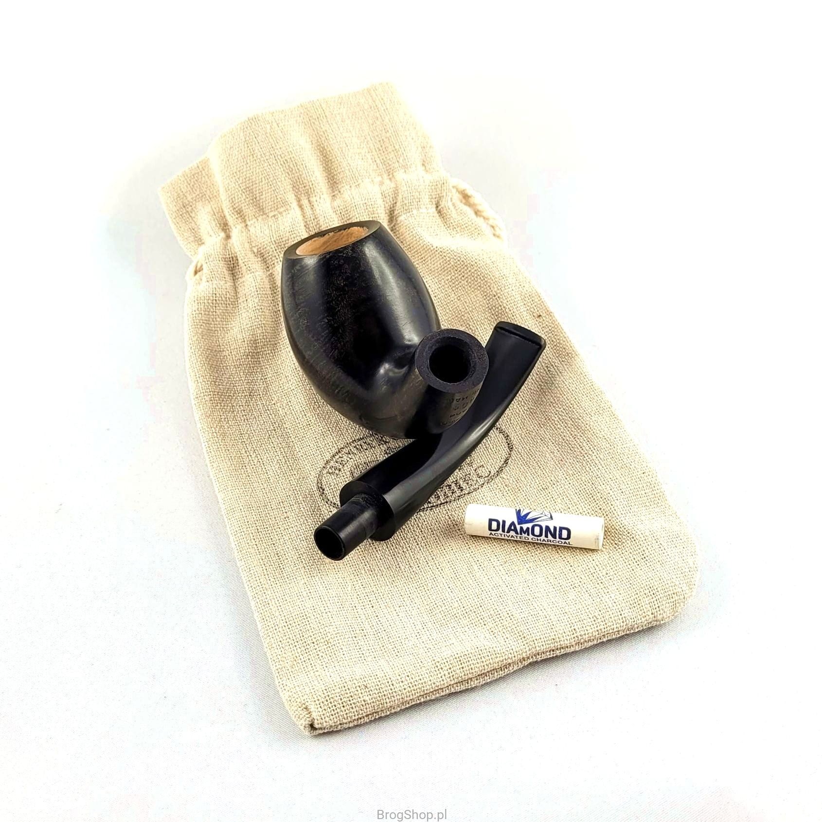 Fajka Worobiec model nr 80 to bardzo klasyczna i estetycznie wykonana fajka do palenia tytoniu, wykonana ręcznie z przyzwoicie usłojonego wrzośca. Fajka posiada przyjemne dla oka i wygodne dla dłoni linie główki, szyjki i ustnika. Bejcowanie w kolorze czarnym, nieprzesłaniające usłojenia, ciekawie kontrastuje z naturalnym paleniskiem. Zbieżny ustnik z logo producenta, wykonany z styliamidu, posiada miejsce na wymienne filtry o średnicy 9 mm. W zestawie materiałowy pokrowiec oraz pudełko wytwórcy.