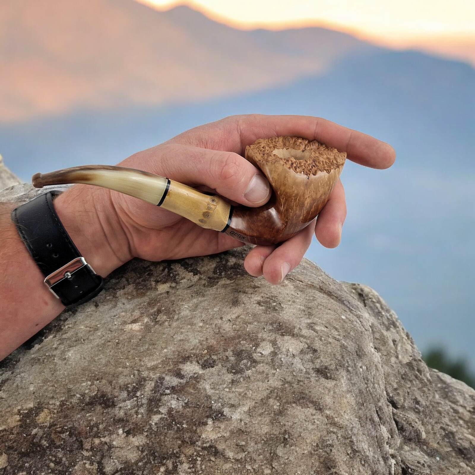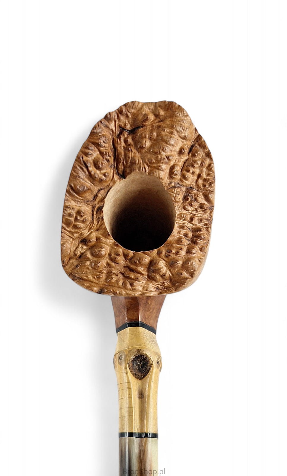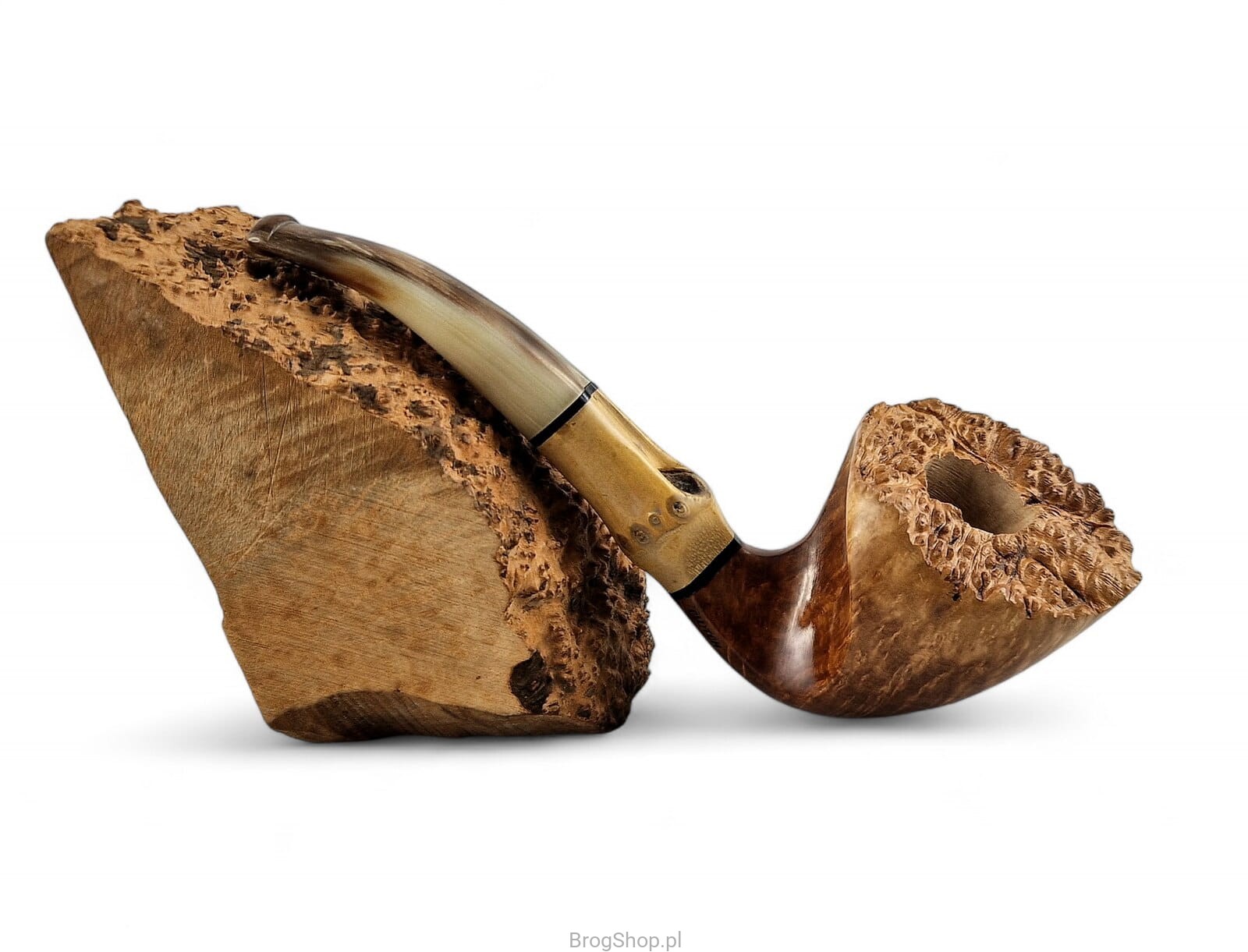 Freehand Zbigniewa Bednarczyka - fajka autorska mistrza fajkarskiego oraz właściciela przemyskiej pracowni Bróg Pipes. Ręcznie wykonana z wyraźnie usłojonego wrzośca Plateau, brak kitowań. Wykończona zewnętrznie olejem duńskim oraz twardym woskiem Carnauba, brak bejcowania oraz prekarbonizacji paleniska. Rim fajki naturalny, z widoczną wrzoścową korą. Szyjka fajki posiada wstawkę z naturalnego bambusa, pierścienie akrylowe. Ustnik powstał z prawdziwego rogu bawolego, czop aluminiowy. W zestawie materiałowy pokrowiec oraz eleganckie, dedykowane pudełko. Nieregularny kształt świetnie odzwierciedla sznyt twórcy, uformowanie główki wygodne dla osoby praworęcznej. Dostępna wyłącznie jedna sztuka widoczna na załączonych zdjęciach.