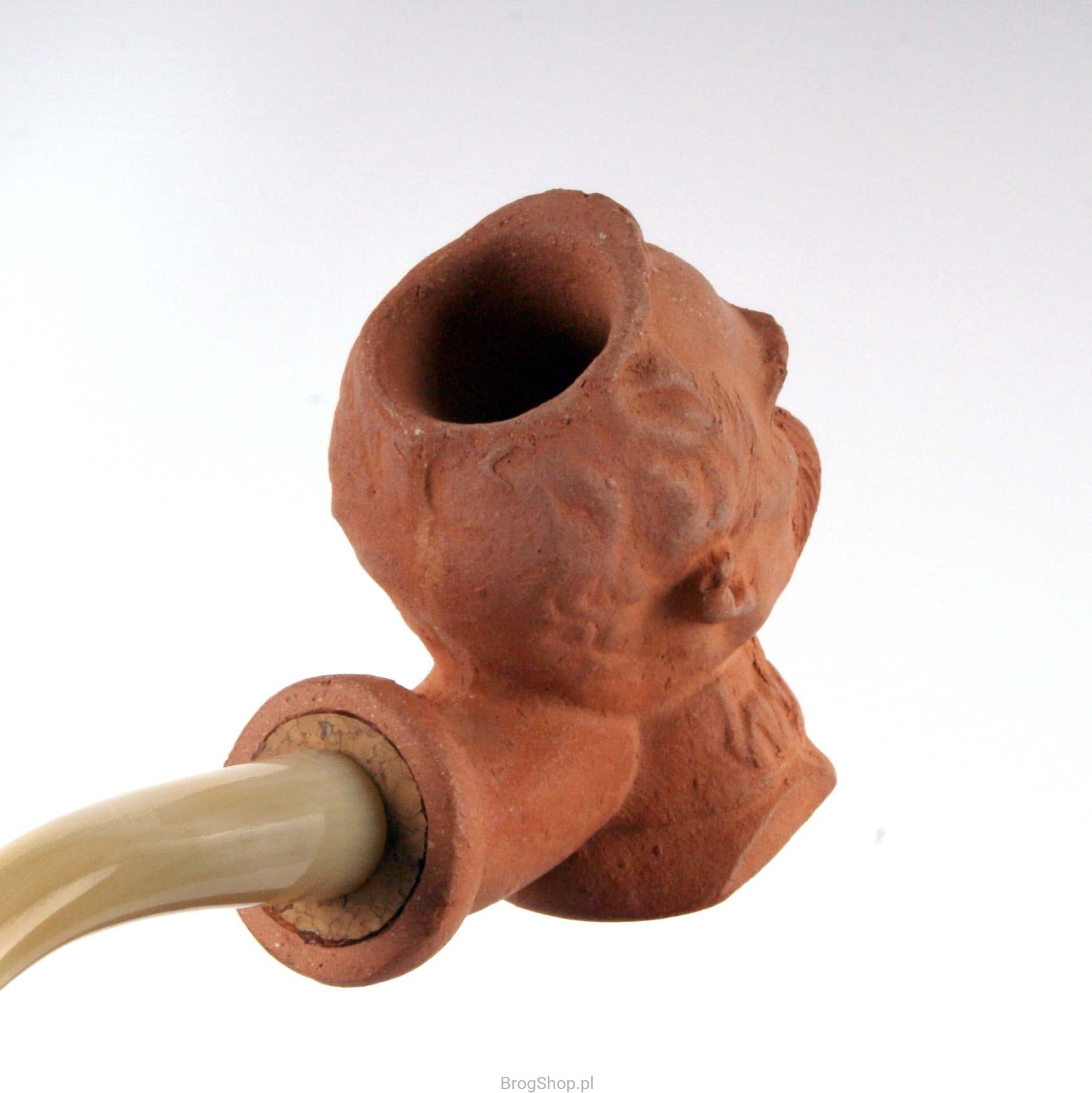 Główka wykonana z gliny o podwójnej ściance, ustnik z bawolego rogu.
