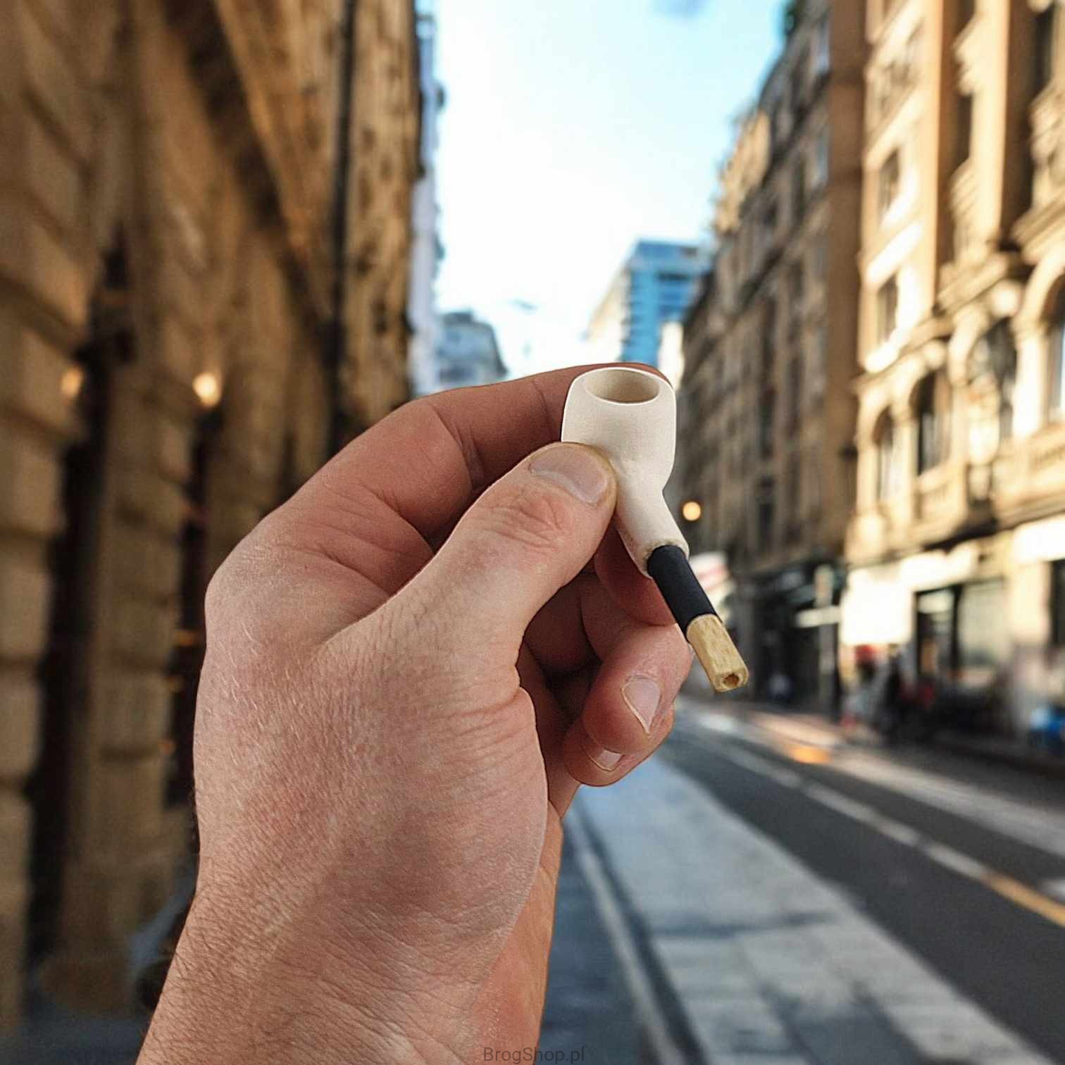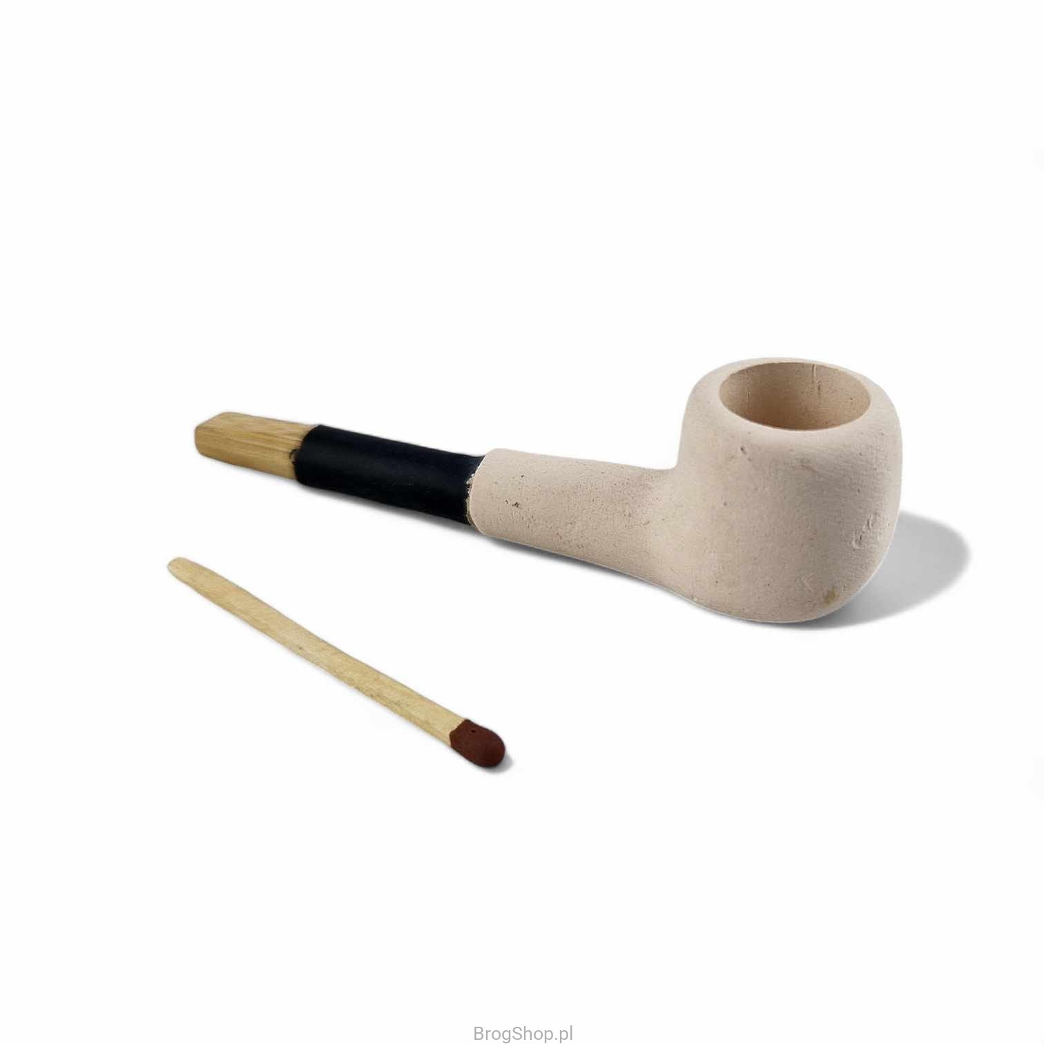 Kolekcjonerska i pamiątkowa fajka gliniana nadająca się do krótkiego palenia. Ustnik bambusowy.