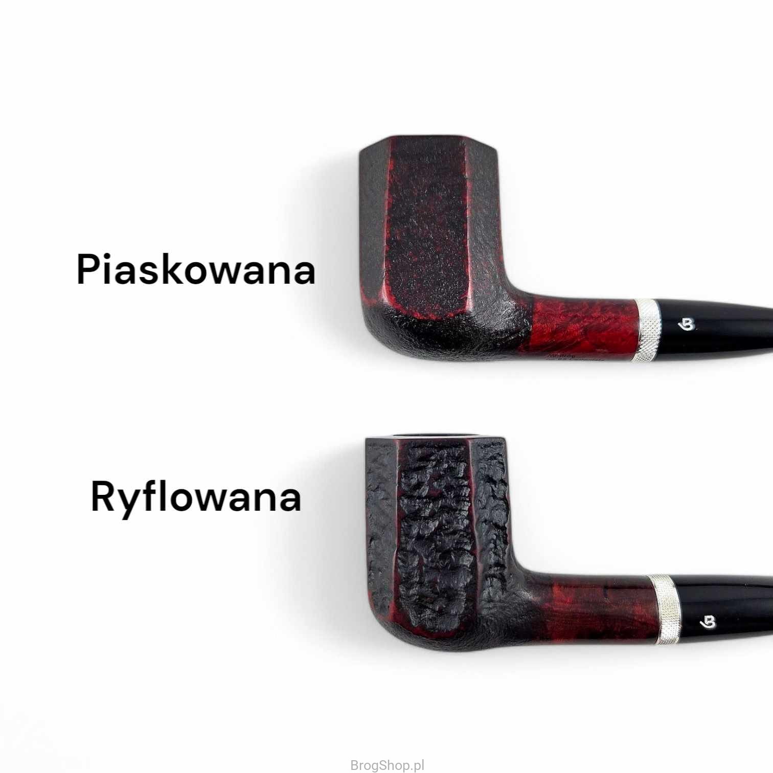 Oba warianty opierają się na połączeniu głębokiej czerni z ciemnoczerwonym kolorem, określanym w naszej palecie jako "wiśnia". Kontrastowym akcentem jest posrebrzany pierścień umieszczony na szyjce fajki.