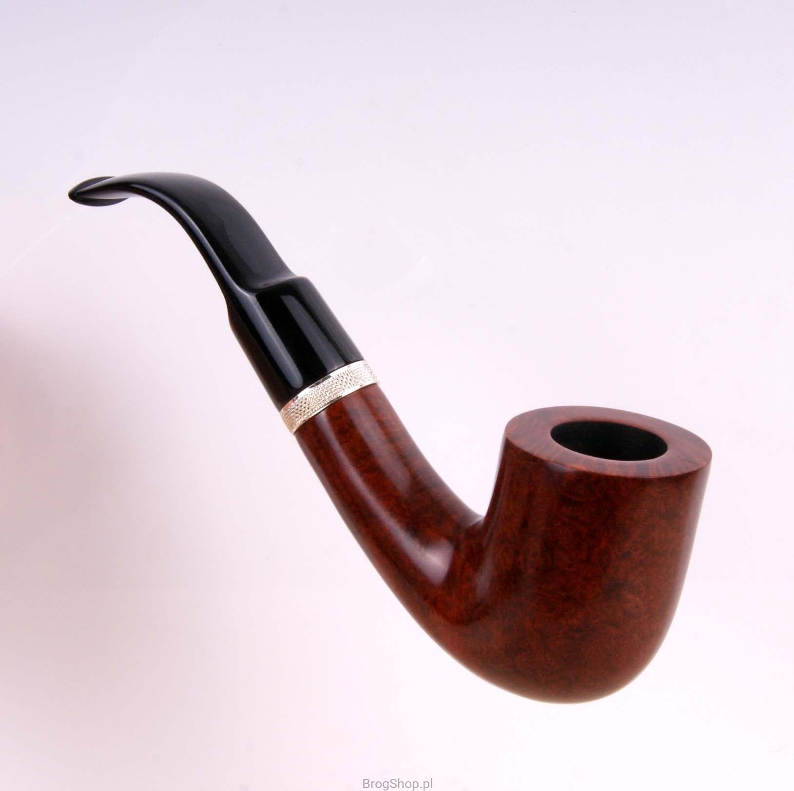 Magnum to model fajki wykonany ręcznie z włoskiego wrzośca w naszej pracowni pod Przemyślem. Ponadczasowy Bent Biliard do palenia tytoniu, to jeden z bardziej klasycznych i rozpoznawalnych kształtów fajek na świecie. Pojemne palenisko zabezpieczone w tym przypadku zostało prekarbonizatem. Fajka wymaga prawidłowego opalenia ścian paleniska. Mocno wygięty, akrylowy ustnik, posiada miejsce na wymienne filtry o średnicy 9 mm. Posrebrzany pierścień ładnie podkreśla bogate usłojenie i nadaje ciekawego charakteru całości. Fajka wygodna, pojemna i ładnie zapakowana w pokrowiec oraz pudełko wraz z podstawką. Wrzosiec - Włochy/Toscania, Briar Cutter - Manno, klasa - Prima.