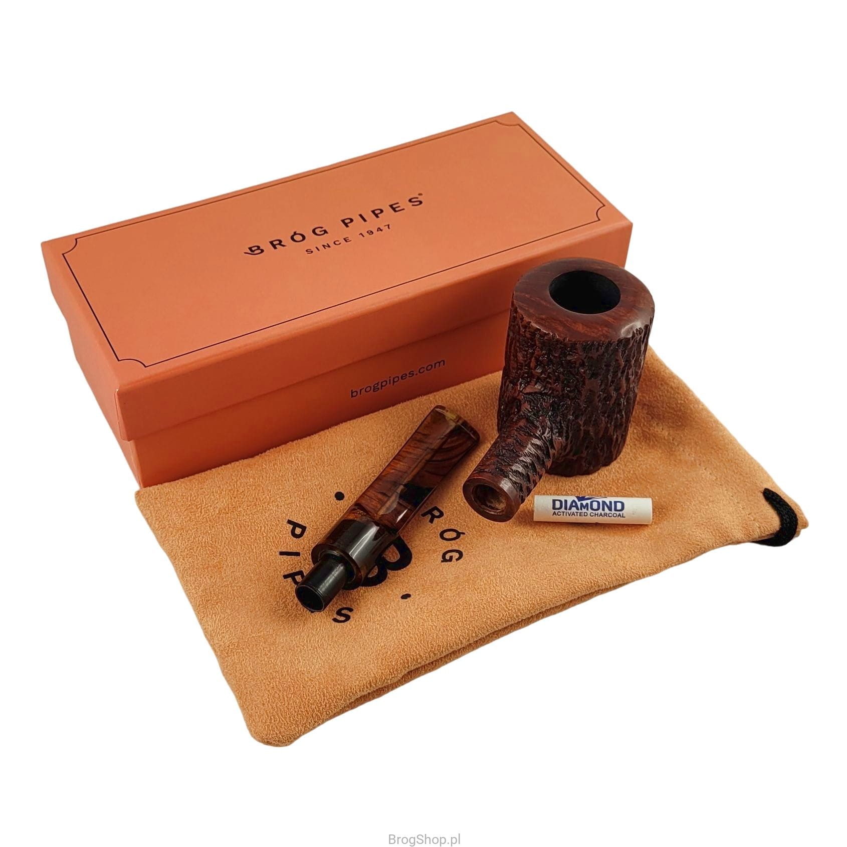 Oryginalna fajka do tytoniu wykonana ręcznie z włoskiego wrzośca w naszej pracowni. Poker, bo tak właśnie nazywany jest jej kształt, cechuje się dużą wygodą użytkowania. Odstawienie fajki nie wymaga podstawek czy stojaków, rozmiar główki sprawia że komfortowo leży w dłoni a prosty kanał dymowy ułatwia czyszczenie. Charakteru fajce nadaje ryflowanie, które nawiązuje do naturalnej i nieregularnej faktury wrzośca. Gładki rim oraz podstawa uwidacznia bogate usłojenie. Ustnik akrylowy z filtrem o średnicy 9 mm - filtry zalecamy wymieniać każdorazowo po paleniu. Palenisko prekarbonizowane. Całość zapakowana w pokrowiec oraz gustowne pudełko. Wrzosiec - Włochy/Toscania, Briar Cutter - Manno, klasa - Extra.
