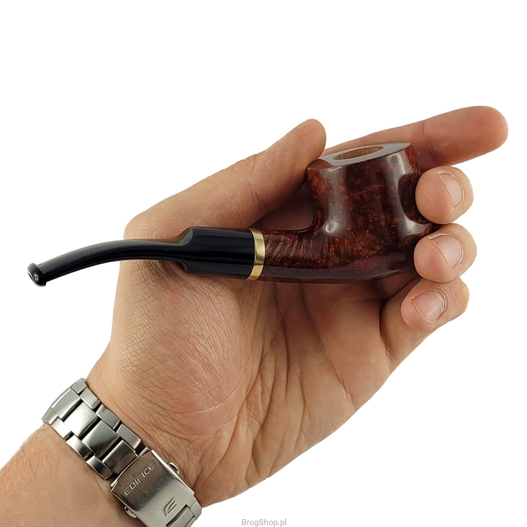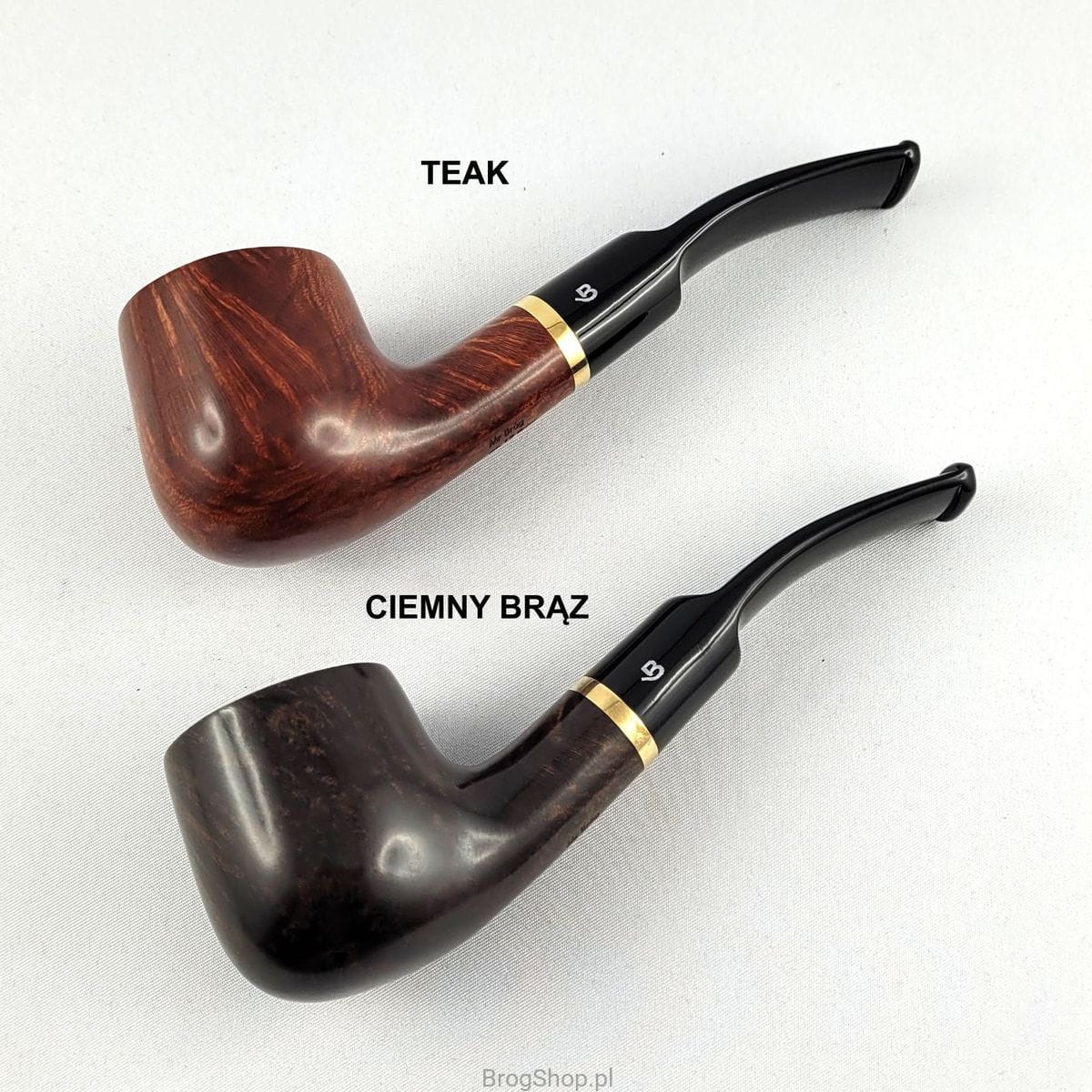 Model oznaczony numerem 12 zarezerwowany był do tej pory wyłącznie dla fajek z czarnego dębu. Wasze zapytania o wariant wrzoścowy, zaowocowały powstaniem krótkiej serii z tego właśnie materiału. Parametry fajki pozostały bez zmian (patrz niżej), bejcowanie teak oraz ciemny brąz, każda z fajek posiada wyraźne i bogate usłojenie, powierzchnia woskowana. Palenisko obecnie posiada warstwę prekarbonizatu, ustnik z miejscem na wymienne filtry chłonne 9 mm powstał z wytrzymałego akrylu, pierścień mosiężny. W zestawie materiałowy pokrowiec oraz dedykowane, prezentowe pudełko Bróg Pipes.