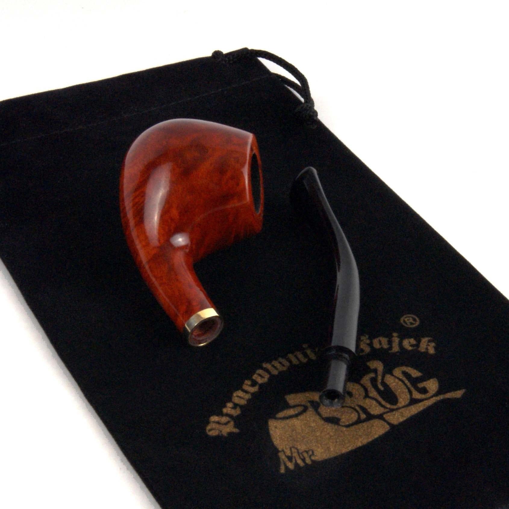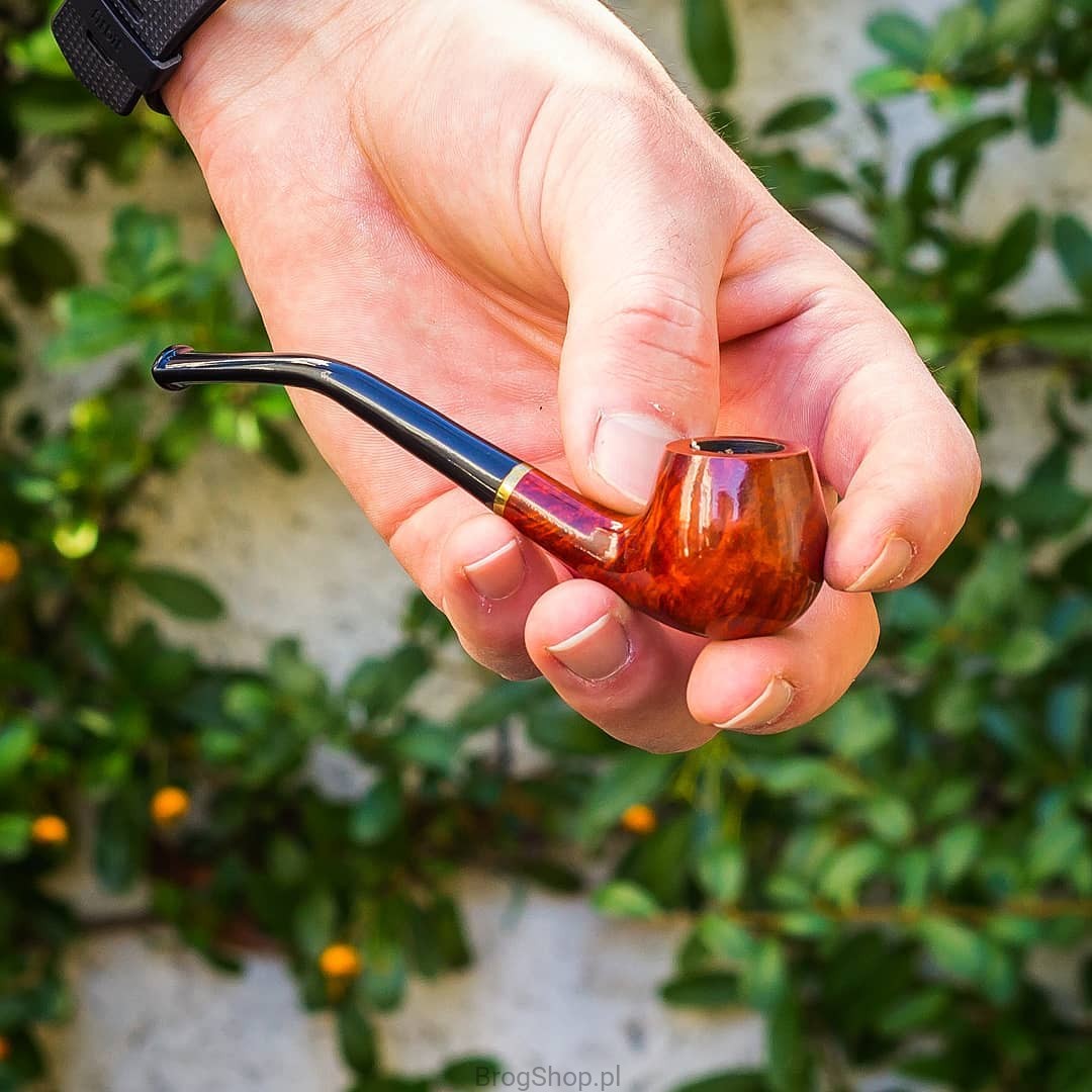 Kompaktowa główka mieści niewielką porcję ulubionej mieszanki tytoniu fajkowego, dzięki czemu fajka doskonale sprawdzi się podczas krótszych sesji palenia. Zbieżny, lekko wygięty ustnik bez miejsca na filtr został precyzyjnie dopasowany do szyjki fajki ozdobionej eleganckim mosiężnym pierścieniem.