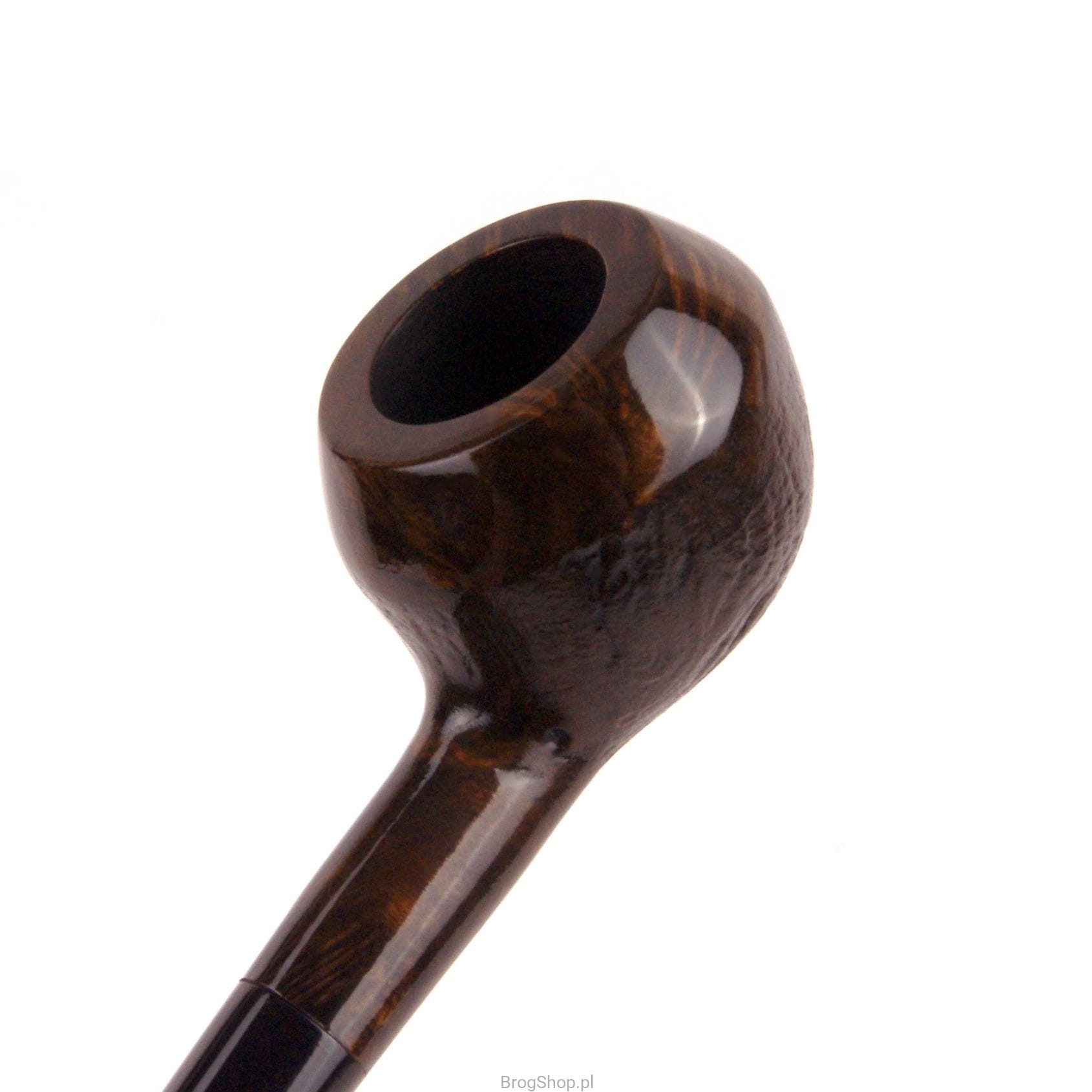 Bardzo elegancka fajka, wykonana ręcznie z włoskiego wrzośca, w angielskim stylu. Prosta i lekka budowa to świetne połączenie dla fajki zabieranej na spacer. Charakterystyczna główka, w każdym egzemplarzu jest częściowo piaskowana. Do wyboru cztery klasyczne odcienie. Palenisko prakarbonizowane, ustnik z miejscem na wyjmowany skraplacz 3mm. Fajka zapakowana w pokrowiec oraz firmowe pudełko.