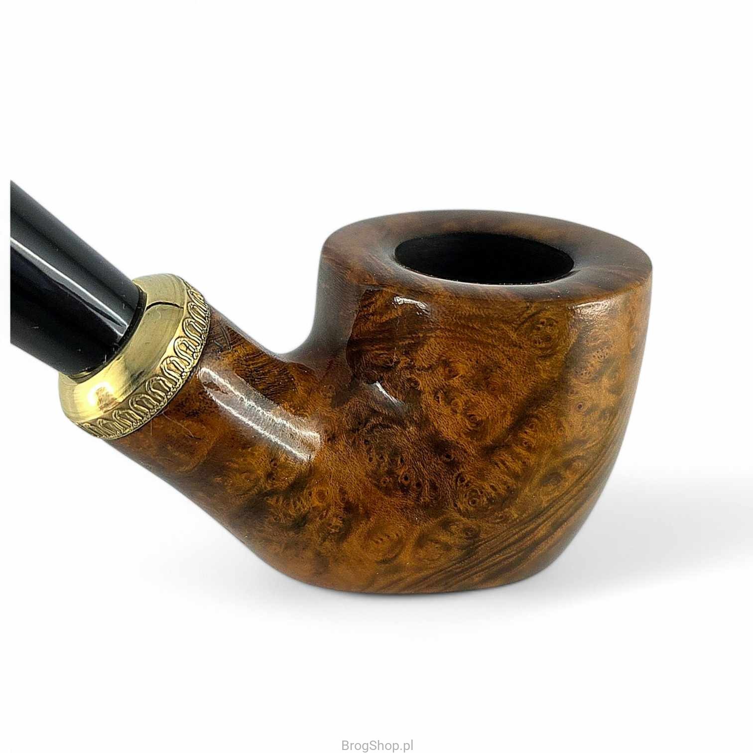 Nietypowy ustnik został wykonany z wytrzymałego akrylu i posiada miejsce na wymienne filtry o średnicy 6 mm. Oczywiście fajkę można również palić bez filtra. Palenisko jest prekarbonizowane, a całość uzupełnia mosiężny pierścień. W zestawie znajduje się również materiałowy pokrowiec oraz pudełko.
