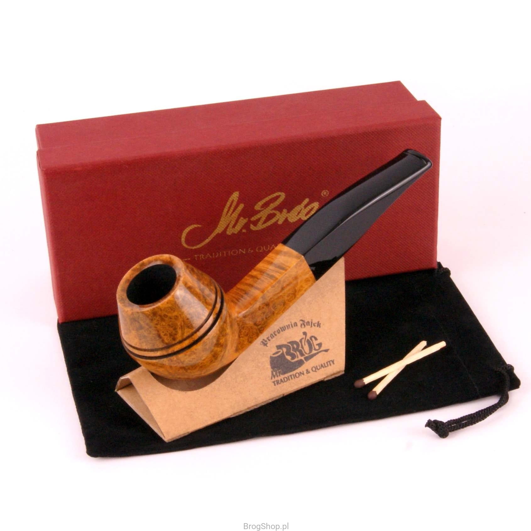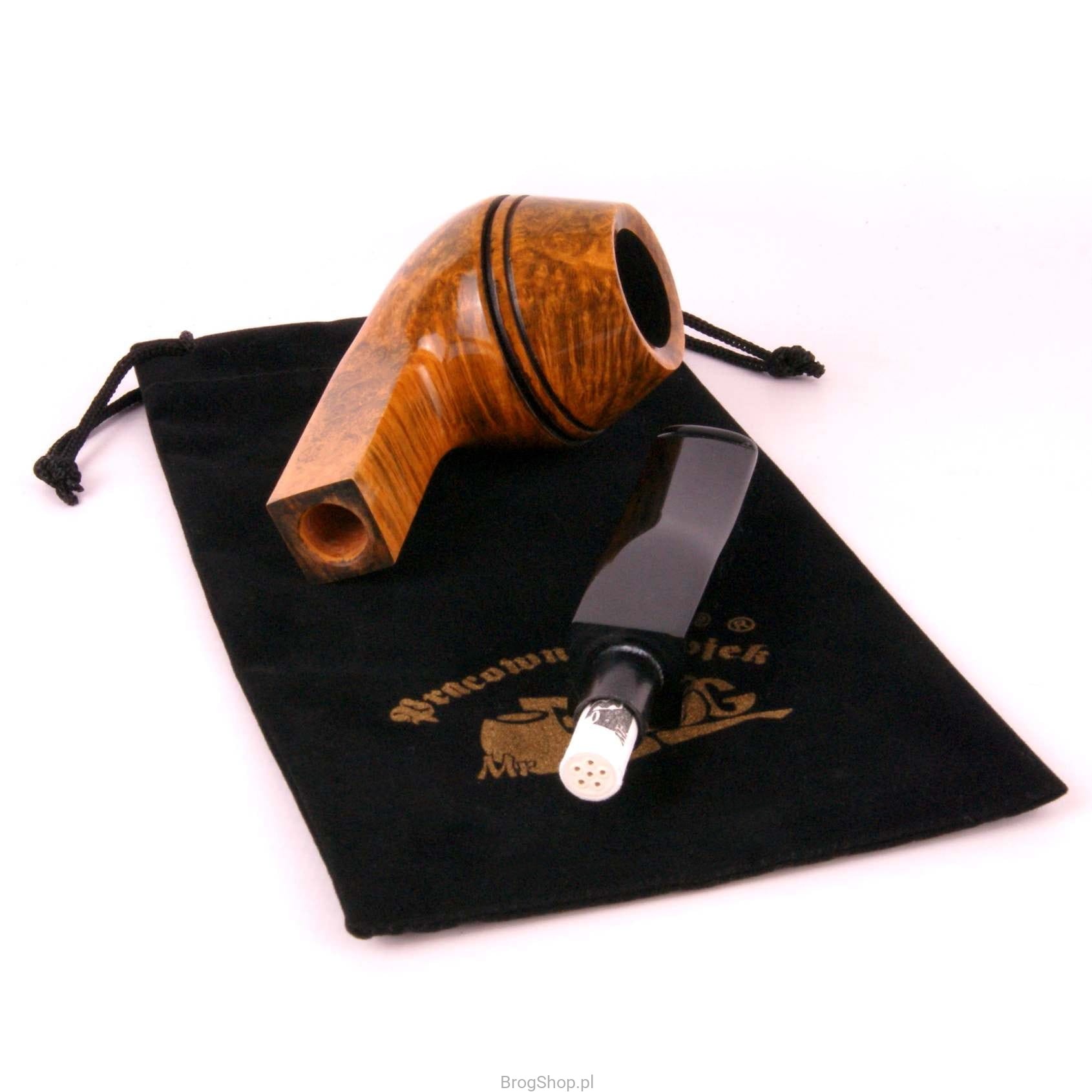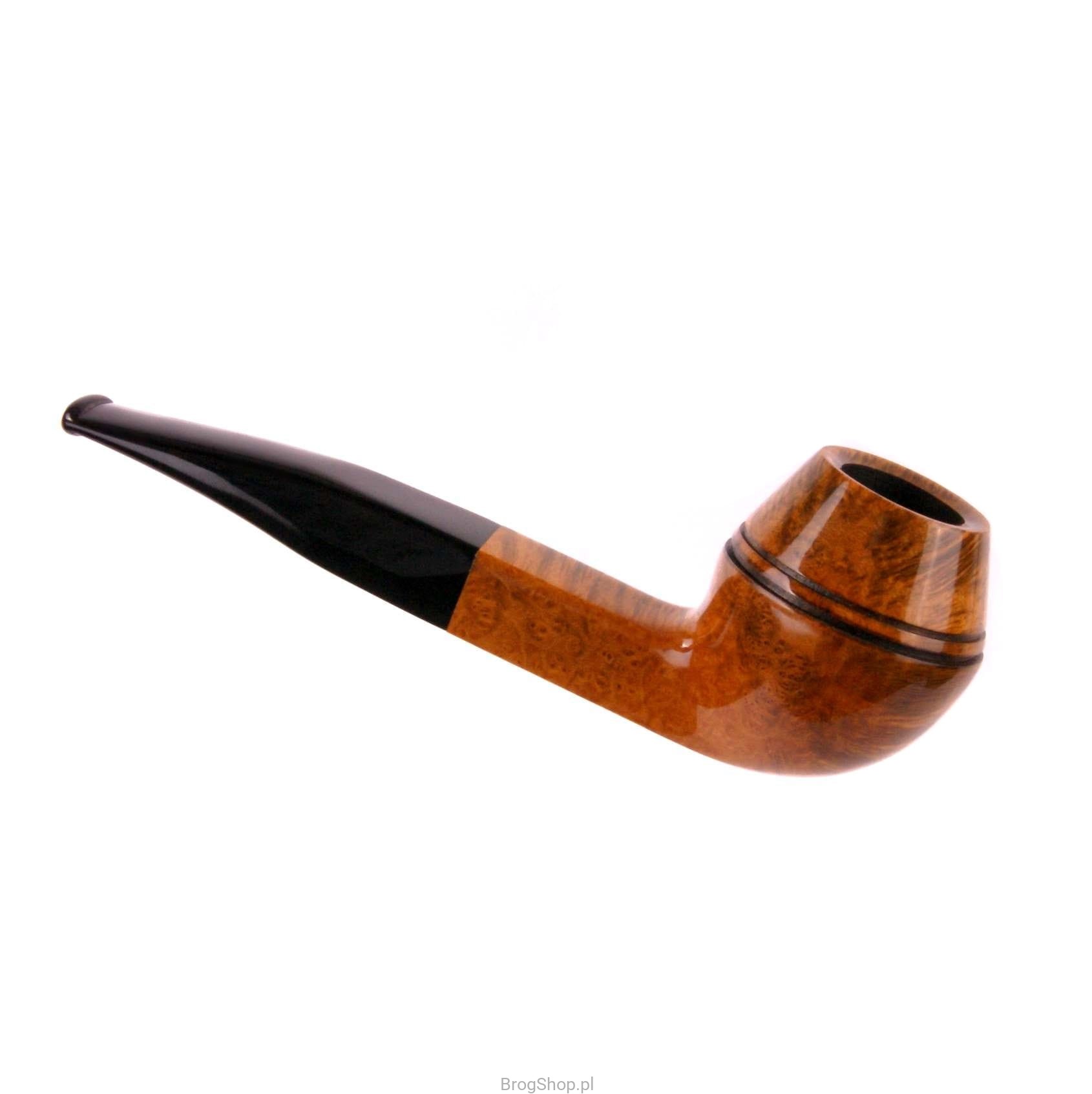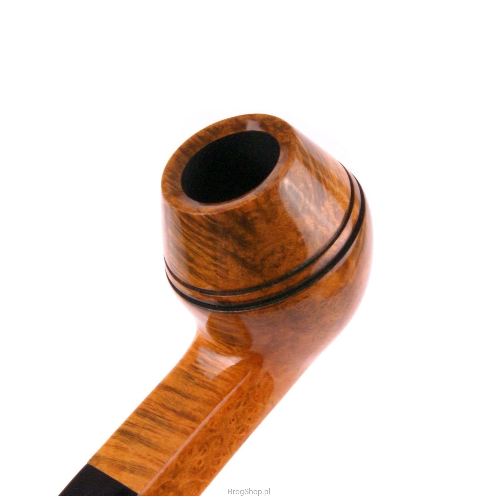 Royal to masywna i pojemna fajka do palenia tytoniu, nawiązująca kształtem do fajek typu Bulldog. Wykonana w całości ręcznie z włoskiego wrzośca (Mimmo) w naszej pracowni pod Przemyślem. Klasyczna dla tego rodzaju fajek budowa główki, w przekroju bocznym przypomina kształtem diament. Dwie linie dodatkowo podkreślają ten efekt. Szyjka oraz akrylowy ustnik panelowe. Palenisko pojemne o standardowej średnicy, pokryte prekarbonizatem. Fajka zapakowana w pokrowiec oraz eleganckie pudełko.