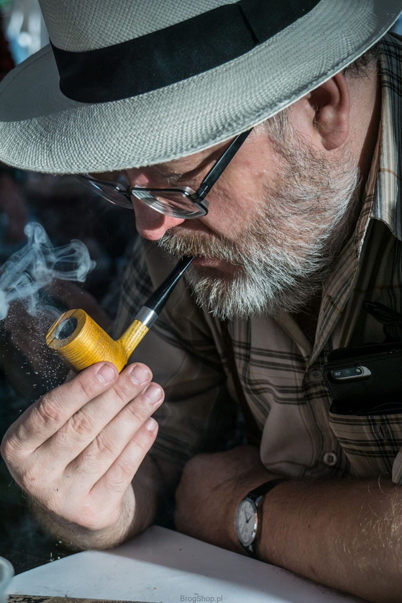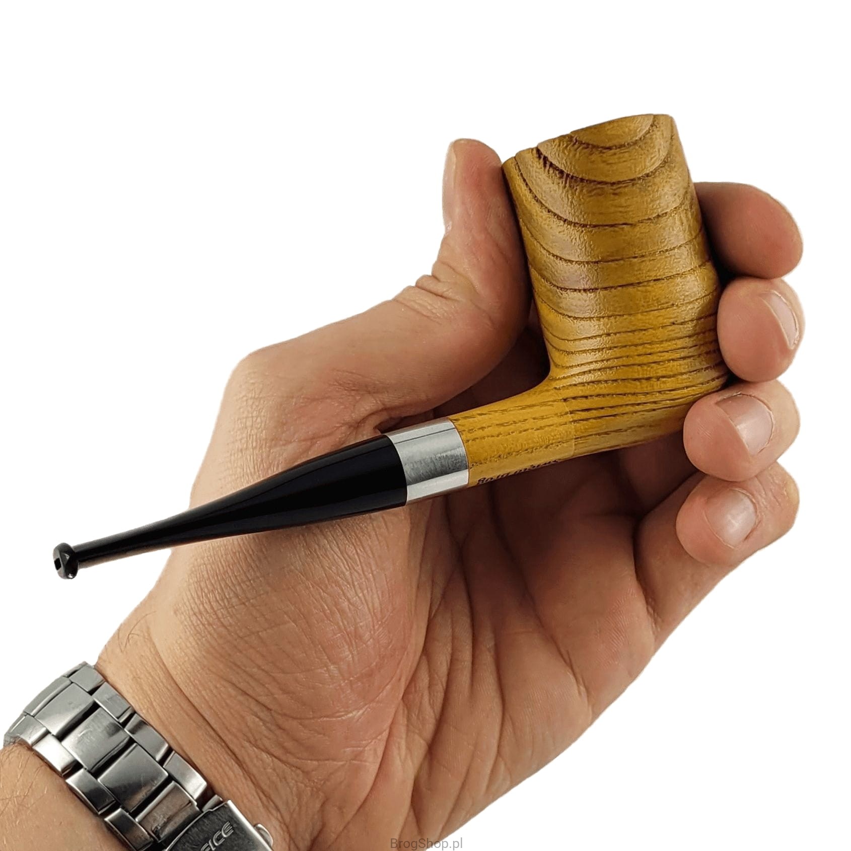 Ciekawa fajka z drewna akacji, wykonana na potrzeby turnieju w wolnym paleniu, który odbył się w trakcie 20 tego Fajowego Święta Bróg. Podczas wydarzenia przy budynku naszej pracowni, oprócz zabawy, wesołych rozmów i charytatywnych licytacji, organizujemy turniej wolnego palenia. Zebrane w ten sposób środki przekazujemy w całości na szczytny cel. Fajka jest dość nietypowa, pomimo dość klasycznego kształtu posiada bardzo wysoką główkę. Fajki tego typu nazywane są często "Skyscraper", nawiązanie do wieżowca zdaje się być sensowne. Palenisko prekarbonizowane, powierzchnia główki piaskowana, ustnik bez filtra, kołeczek, pokrowiec i dwie regulaminowe zapałki w zestawie. Podczas publikacji dostępne są wyłącznie 3 zestawy, fajka nie będzie więcej produkowana.