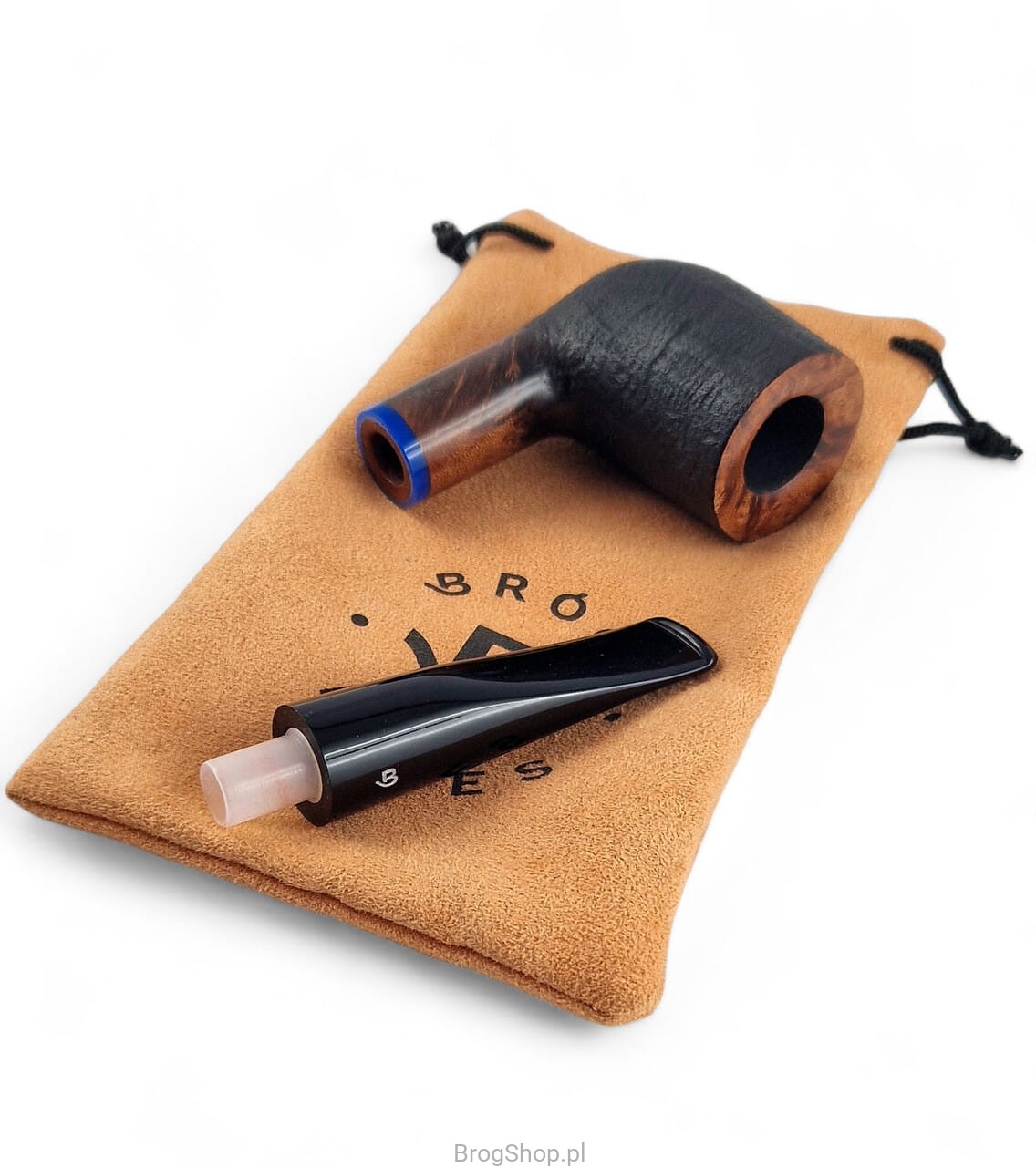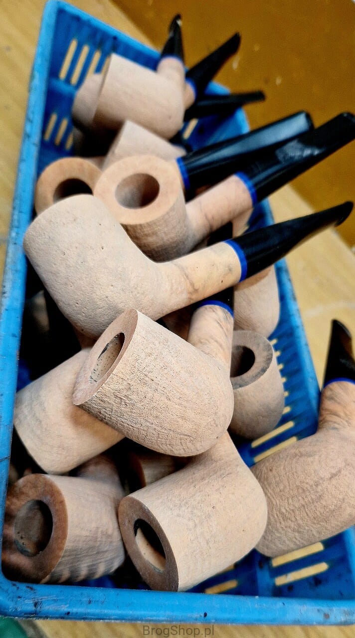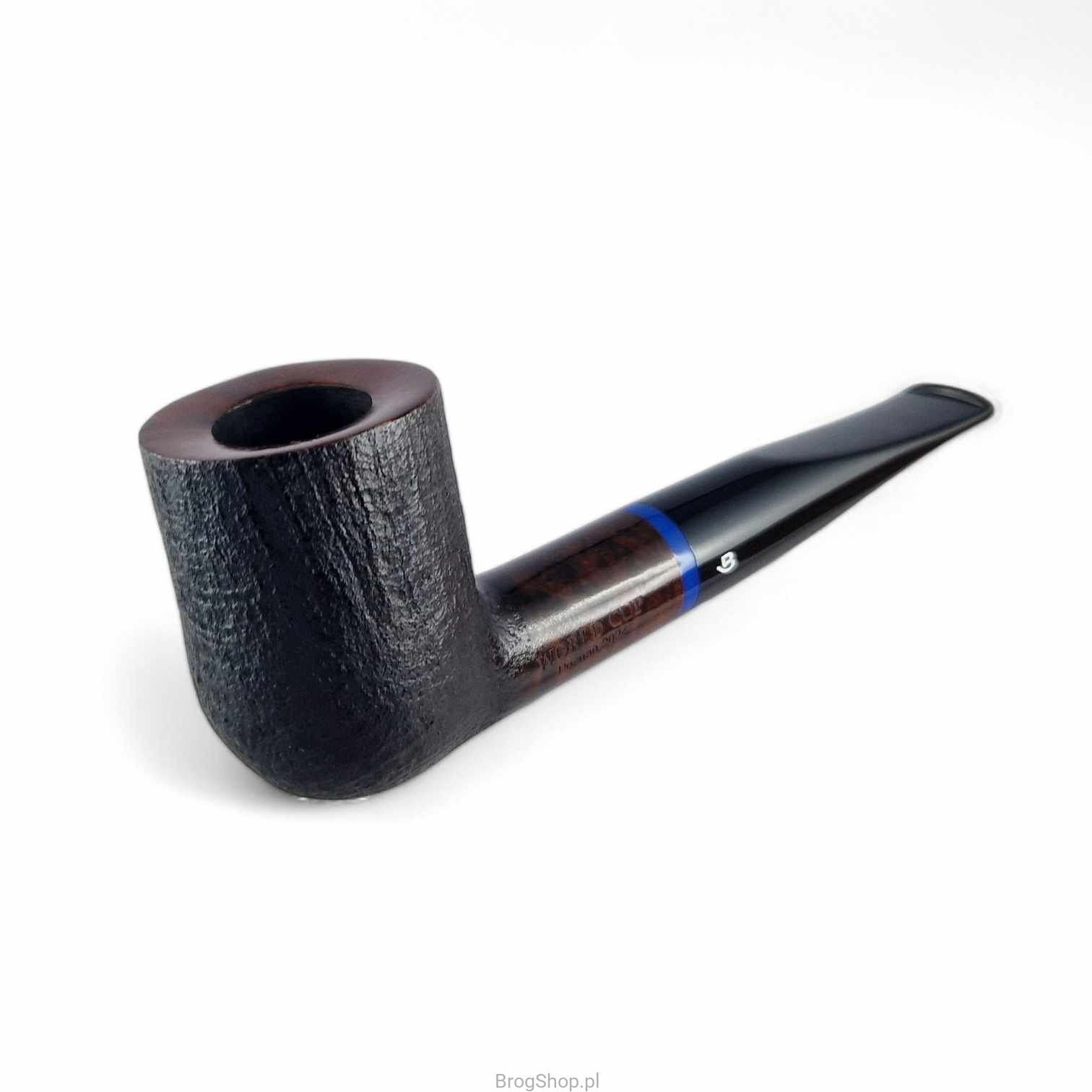 Fajka turniejowa, wykonana ręcznie z włoskiego wrzośca (Mimmo - Liguria). Klasyczny kształt fajki typu Billiard, stworzony zgodnie z projektem zatwierdzonym przez organizatorów specjalnie na tę okazję. Główkę fajki wypiaskowaliśmy, natomiast rim oraz szyjkę pozostawiliśmy gładkie. Pierścień w kolorze niebieskim wykonaliśmy z akrylu, podobnie jak wytrzymały ustnik. Czop z teflonu przystosowany do filtra 9 mm wyposażony jest w reduktor 3 mm. Palenisko prekarbonizowane. Fajka zapakowana jest w materiałowy pokrowiec oraz eleganckie pudełko prezentowe. Zachęcamy do zapoznania się z obszerną galerią zdjęć zarówno fajki, jak i samego wydarzenia. Polecamy—liczba egzemplarzy jest mocno ograniczona.