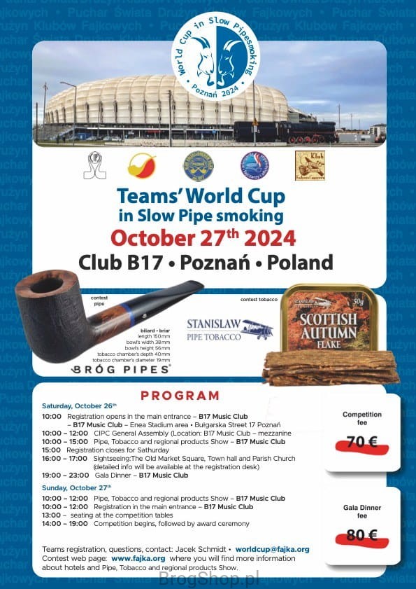 Mistrzostwa świata w wolnym paleniu fajki to niezwykle intrygujące wydarzenie, podczas którego uczestnicy konkurują o jak najdłuższy czas palenia ustalonej porcji tytoniu bez przerw. W niedzielę 27 października 2024 roku, w Poznaniu, odbyła się kolejna edycja mistrzostw, w której wzięło udział 291 uczestników z 22 różnych krajów. Mieliśmy zaszczyt przygotować specjalną fajkę na tę okazję. Liczne grono doświadczonych fajczarzy, obecnych na wydarzeniu o międzynarodowej randze, doceniło jakość naszego wykonania, co z dumą możemy zaprezentować również Tobie.