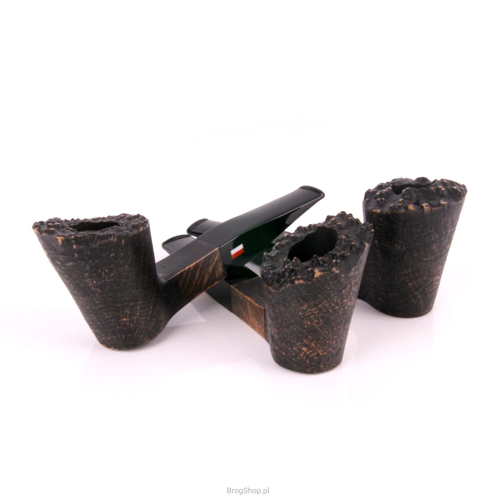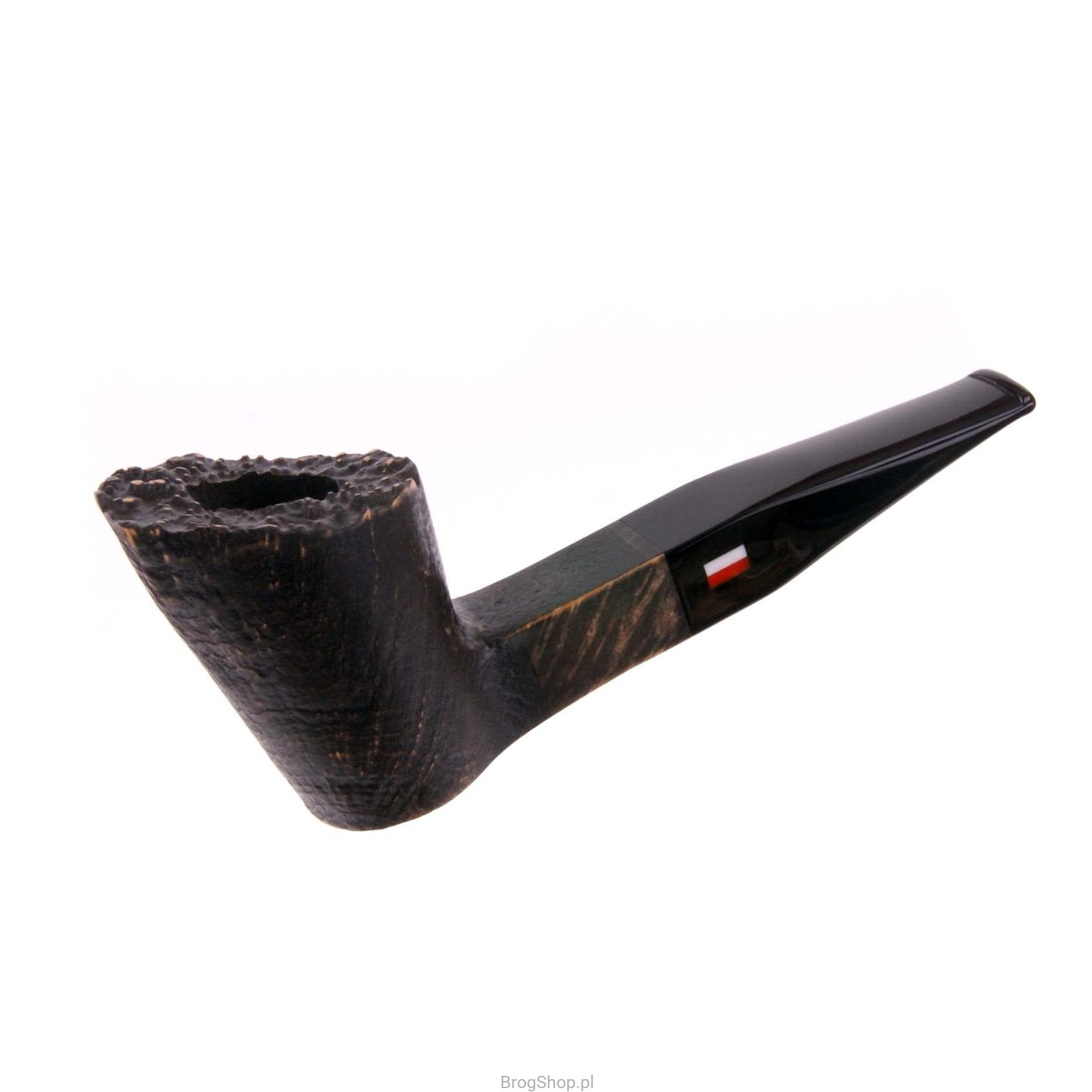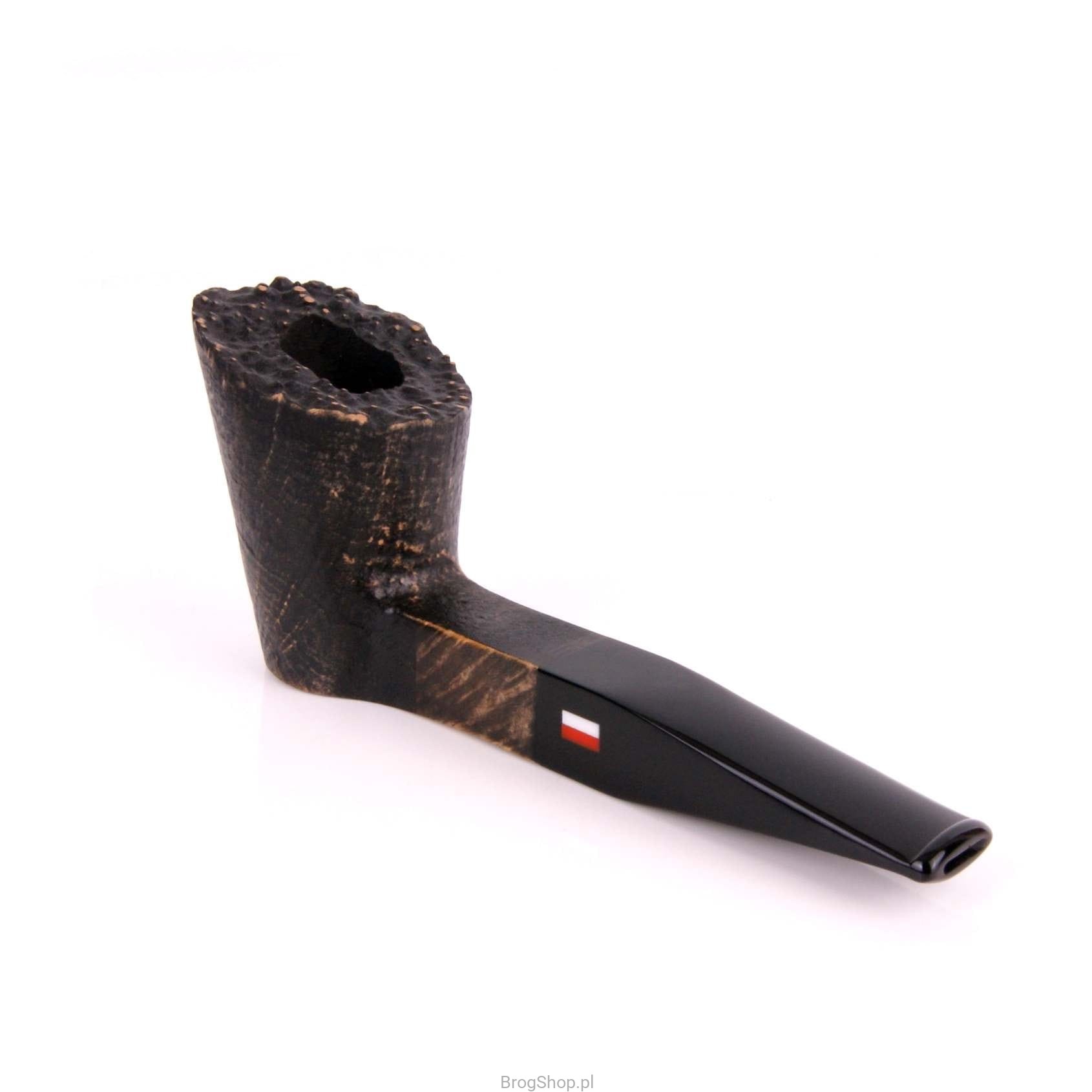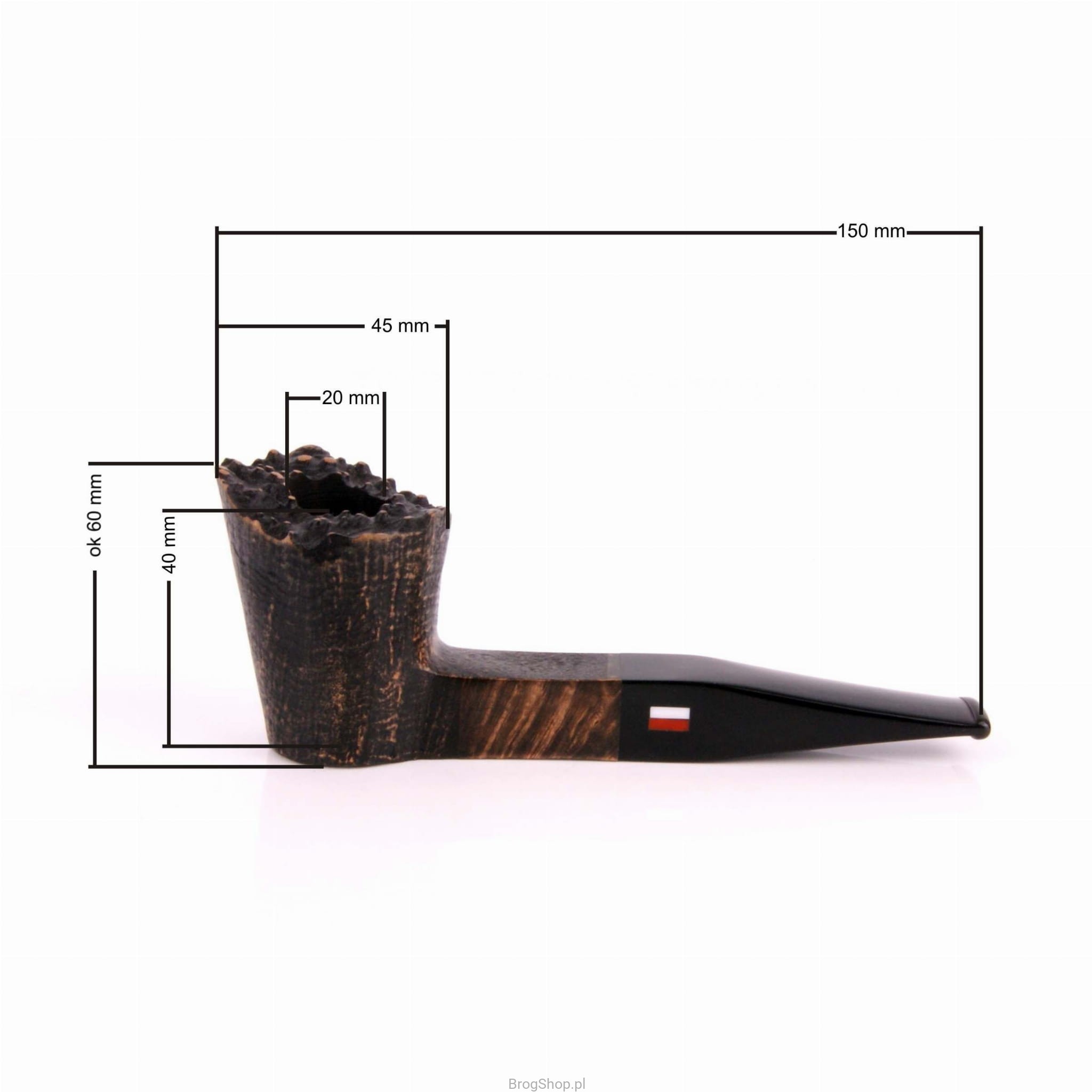 rimem, posiada ściętą podstawę oraz prekarbonizowane palenisko. Piaskowana w całości, za wyjątkiem