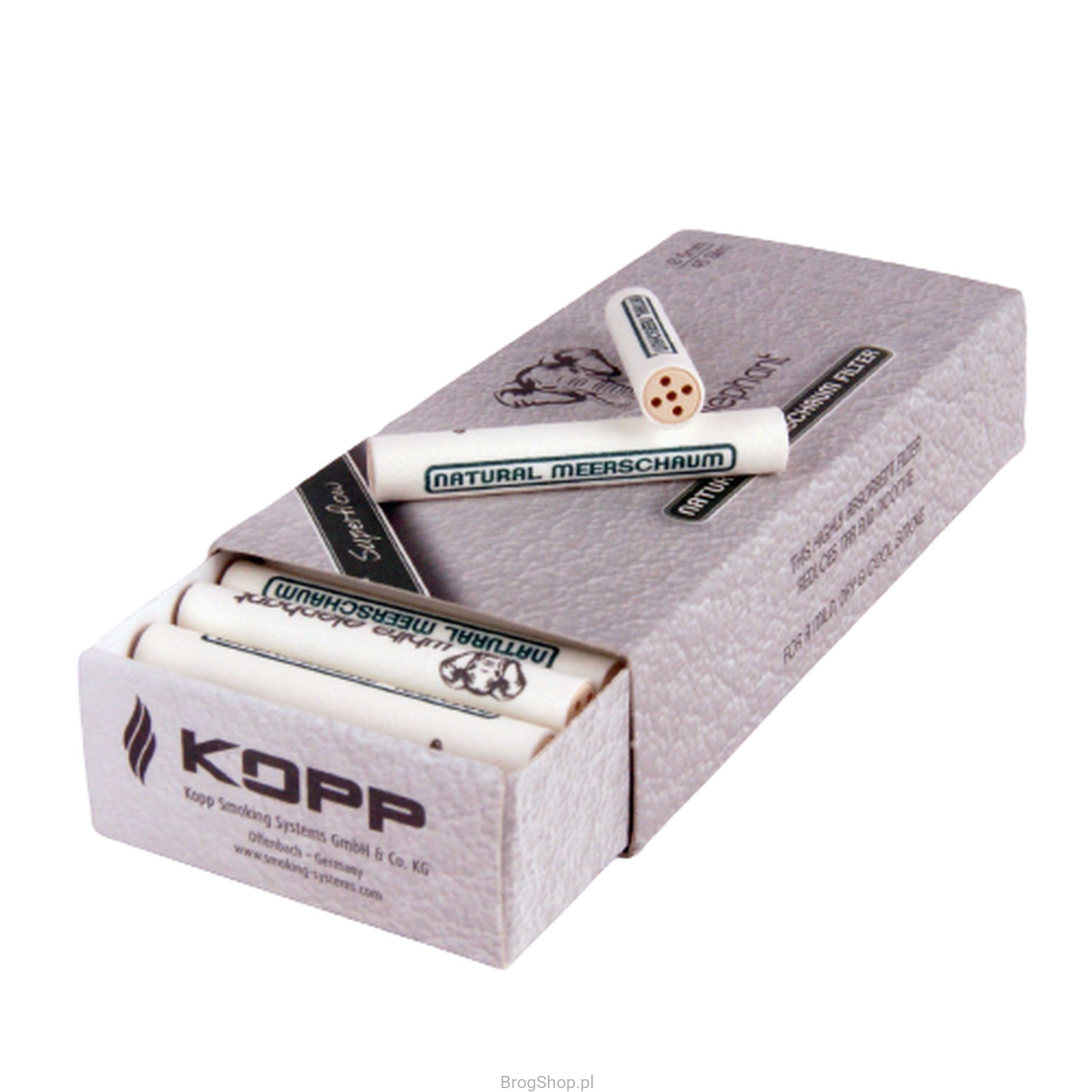Wysokiej jakości filtry chłonne, niemieckiej firmy Kopp Smoking System. Filtry zawierają wkład z sepiolitu, pianki morskiej, dzięki której doskonale filtrują dym, redukując nikotynę oraz zanieczyszczenia. Dodatkowo wchłaniają nadmiar wilgoci powstającej podczas palenia tytoniu fajkowego. Filtry obustronnie zakończone ceramiką odporną na temperaturę. Opakowanie zawiera 45 sztuk. Długość pojedynczego filtra - 40 mm.