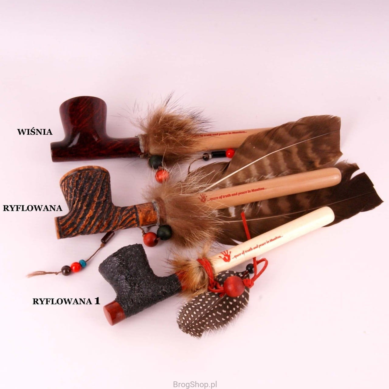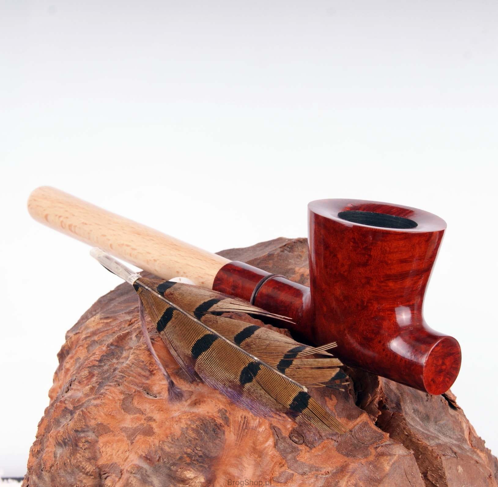 Kalumet to fajka wykonywana ręcznie z włoskiego wrzośca w naszej pracowni pod Przemyślem. Zdobiona prawdziwym piórem oraz koralikami na sznurku obwiązanym na szyjce fajki. Palenisko o standardowej pojemności pokryte prekarbonizatem. Długi ustnik w całości wykonany został z twardego drewna. Fajki zapakowane w pokrowiec oraz pudełko ze znakiem naszej marki. Fajka kolekcjonerska i w pełni funkcjonalna, stanowić może wyszukany prezent. Wrzosiec - Włochy/Toscania, Briar Cutter - Manno, klasa - Extra.