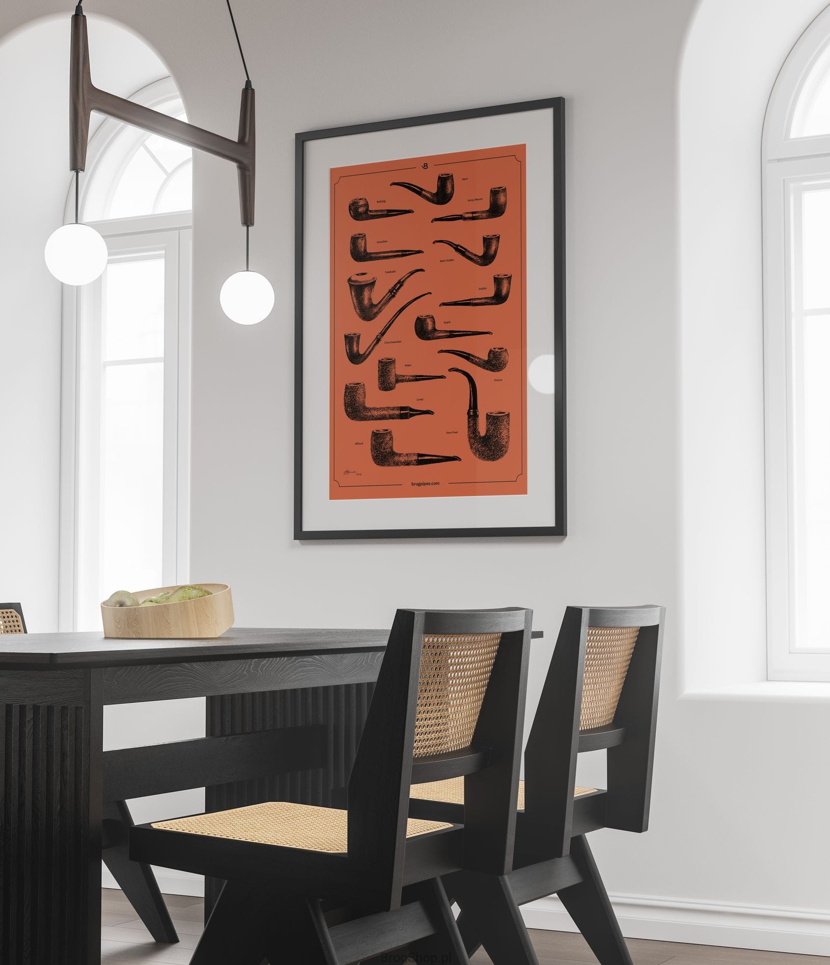 Autorski plakat, który idealnie pasuje do wnętrz z duszą, jak i nowoczesnych minimalistycznych przestrzeni. Świetnie sprawdzi się jako prezent dla każdego sympatyka fajek klasycznych.